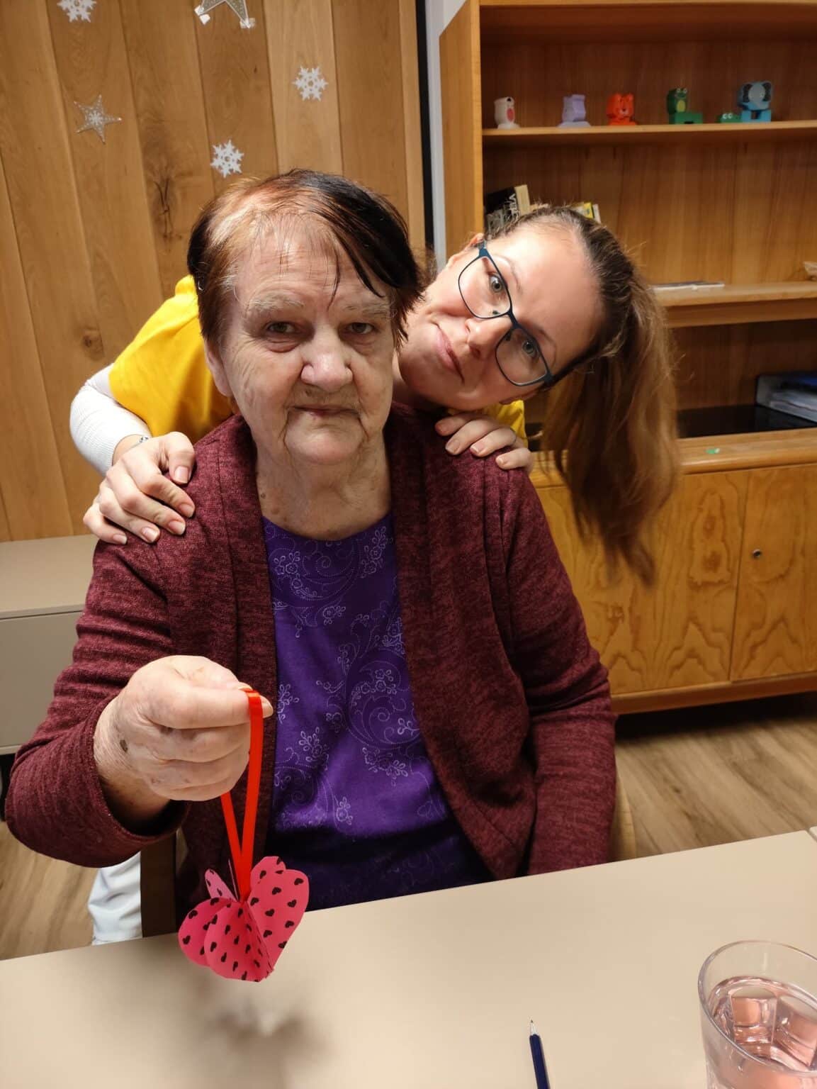 V rámci kreativních dílen se klienti našeho domova zaměřili na oslavu svatého Valentýna. Vyrobili papírová skládací srdce, která nyní zdobí větvičky na domácnostech a sesternách. Dále vytvořili velké srdce z vystřižených otisků svých rukou, v modro-bílé barvě, která symbolizuje barvy našeho domova SeneCura.