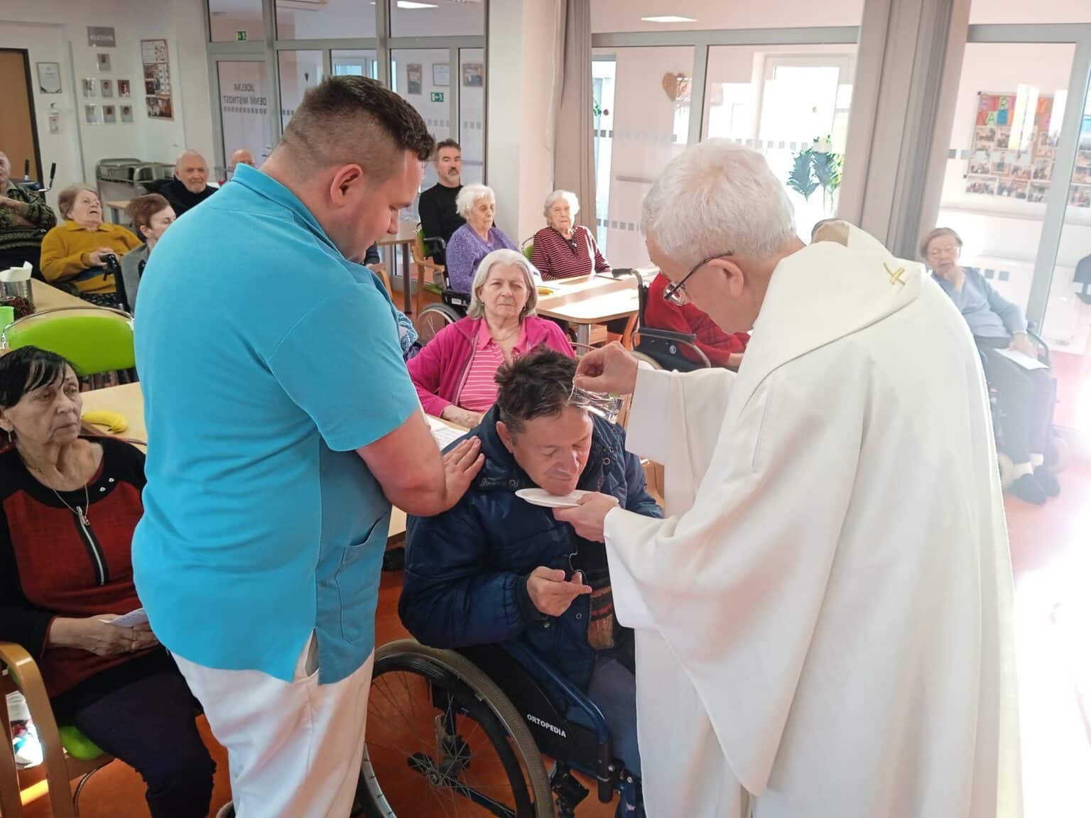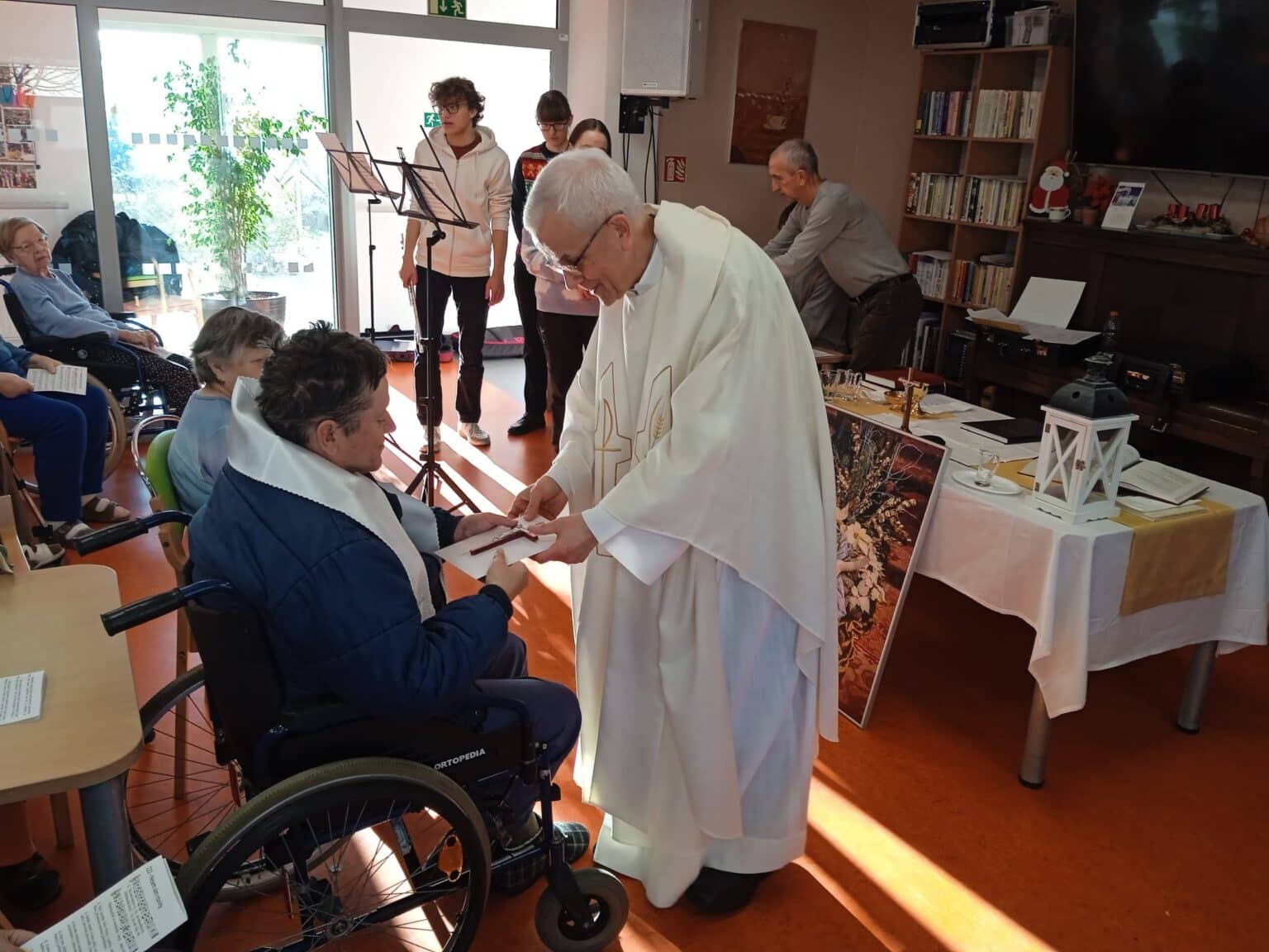 Ve vánočním čase u nás proběhla slavnostnější mše svatá. Nejenom tím, že byla vánočně laděná, ale také proto, že byla spojena se křtem klienta pana Ivo Matějky, který již delší dobu toužil po křtu.