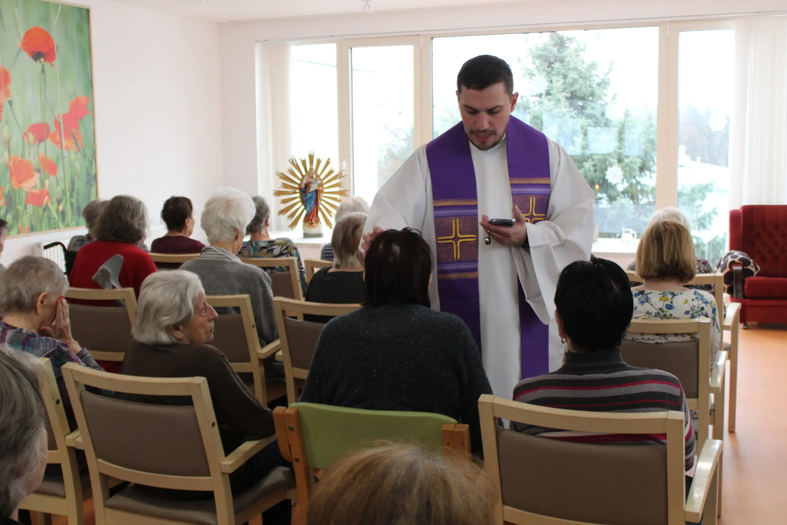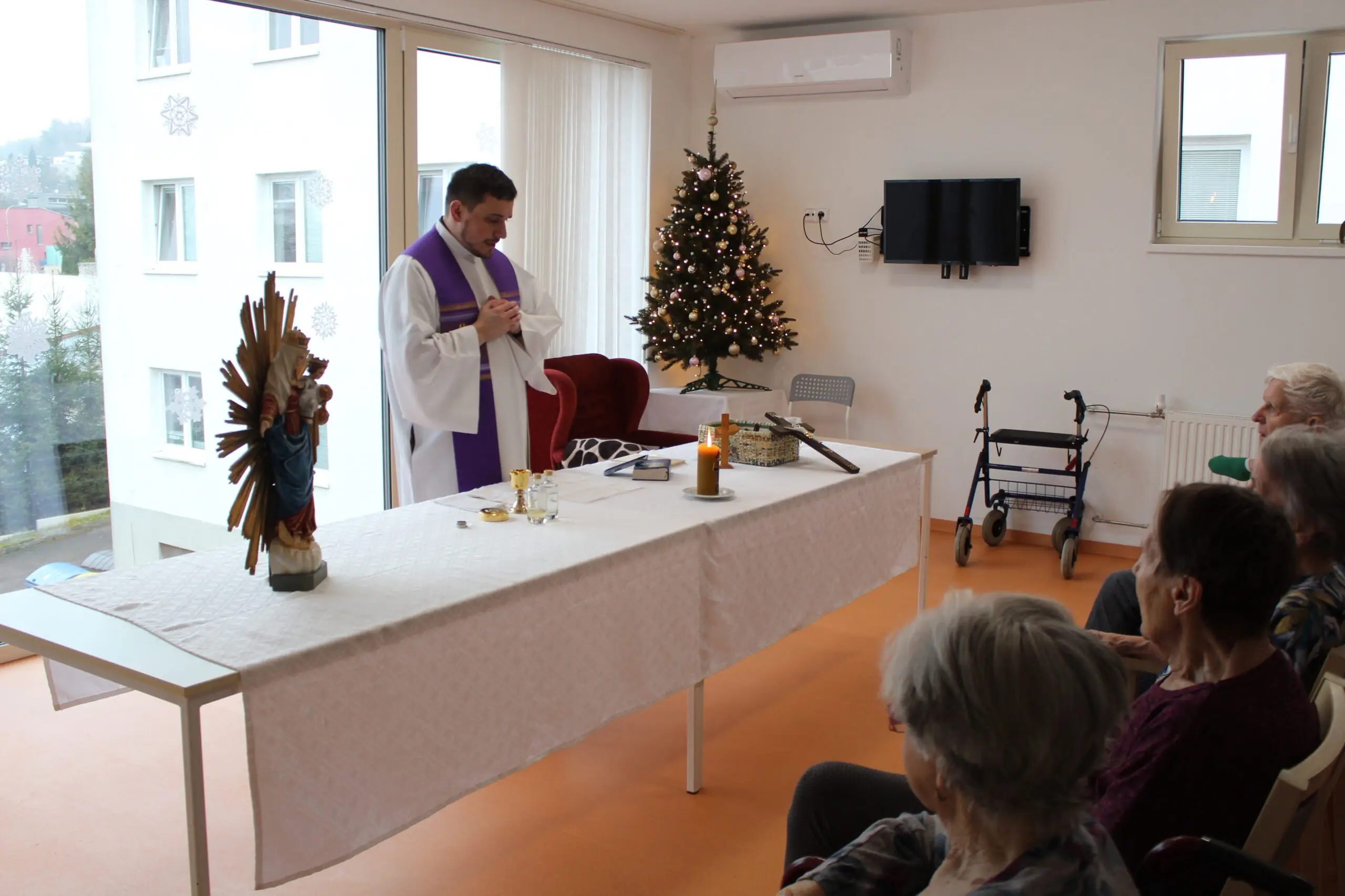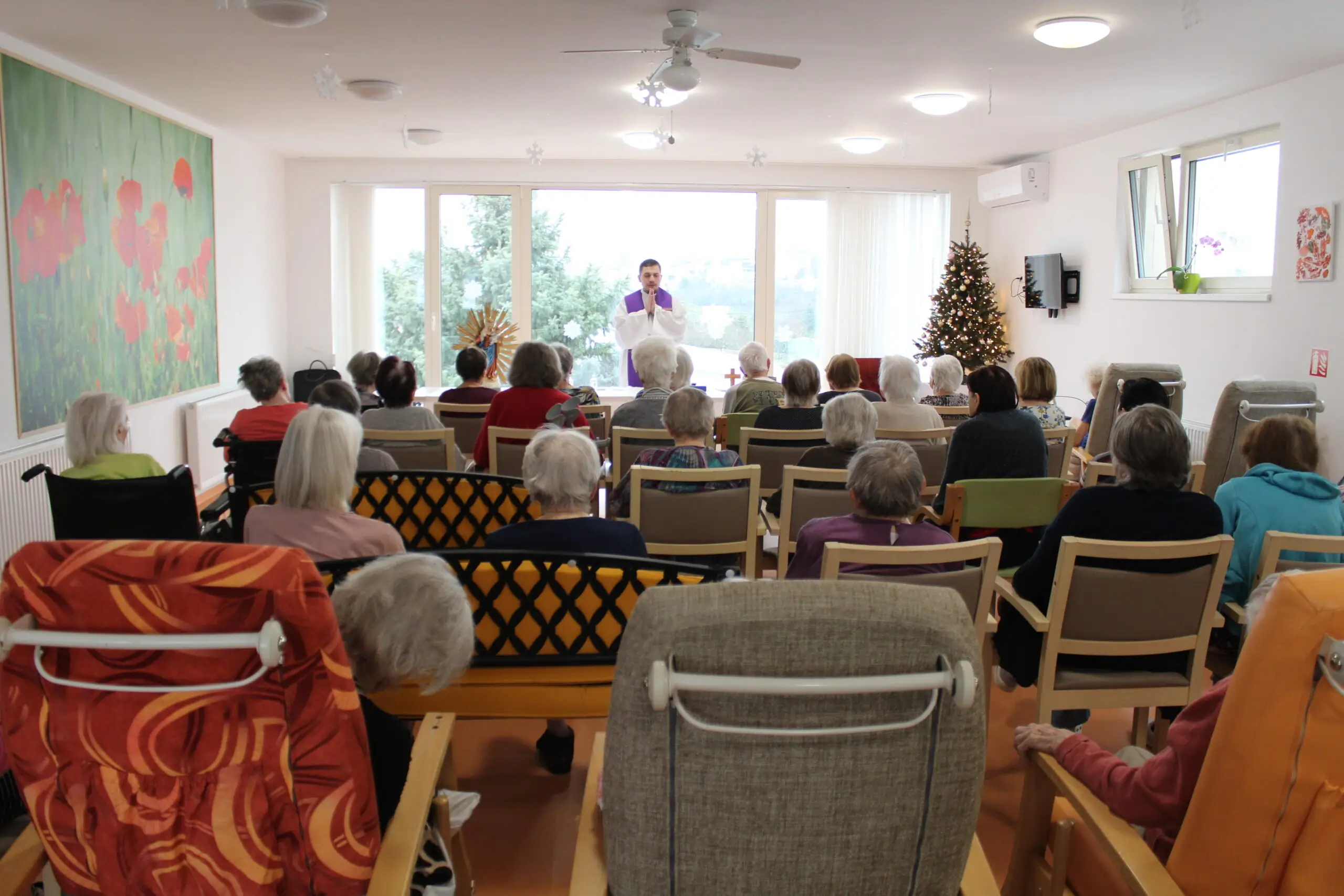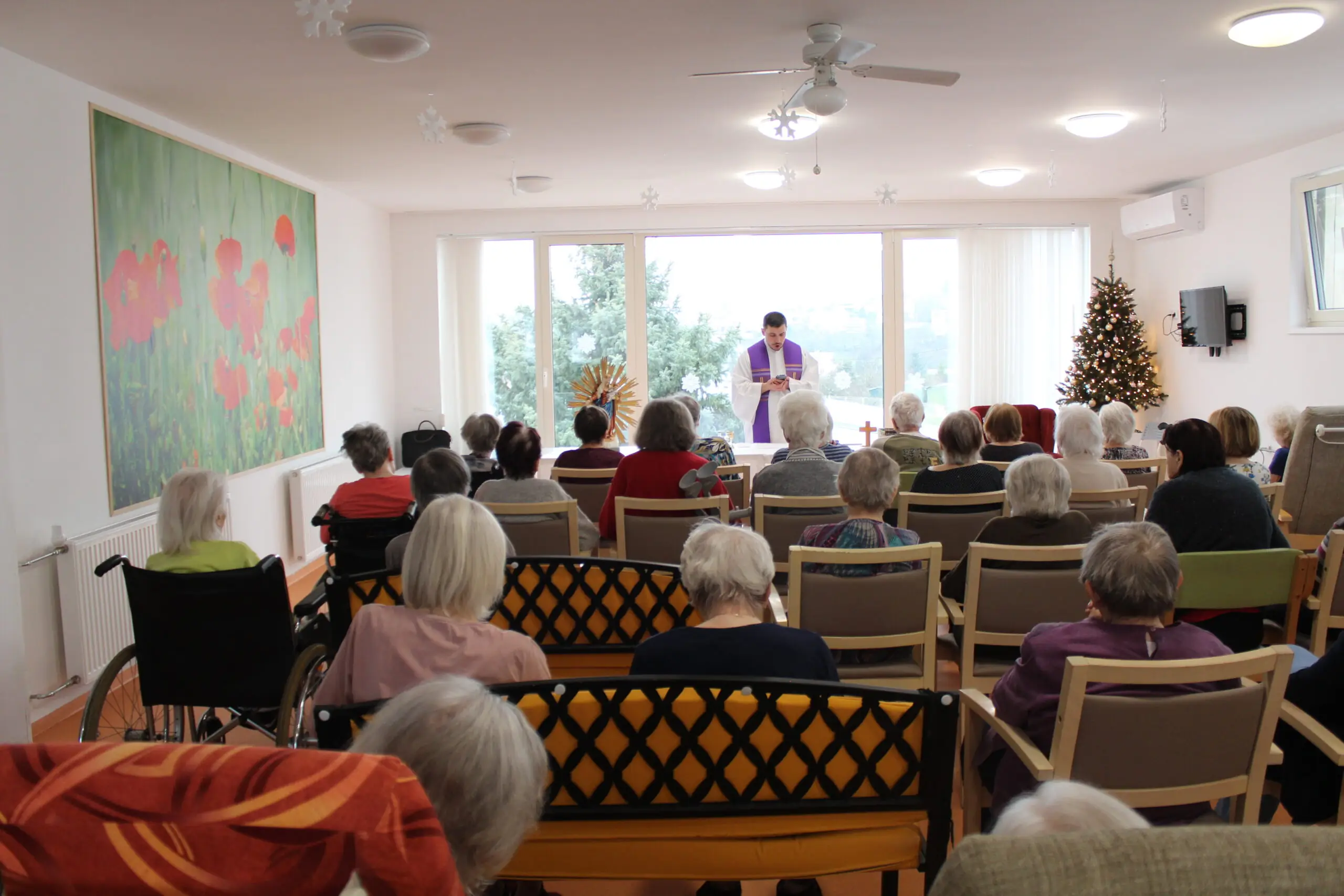 V Senevida Zlín se uskutečnila slavnostní vánoční mše, která přinesla klientům i zaměstnancům chvíle ztišení, naděje a duchovní posily. Bohoslužbu vedl otec Blažej, jenž svým laskavým a srozumitelným slovem oslovil přítomné a vytvořil atmosféru klidu a blízkosti. ✝️ Součástí mše bylo také pomazání nemocných, které je pro mnohé významným zdrojem útěchy, posílení a povzbuzení v těžkých životních situacích.