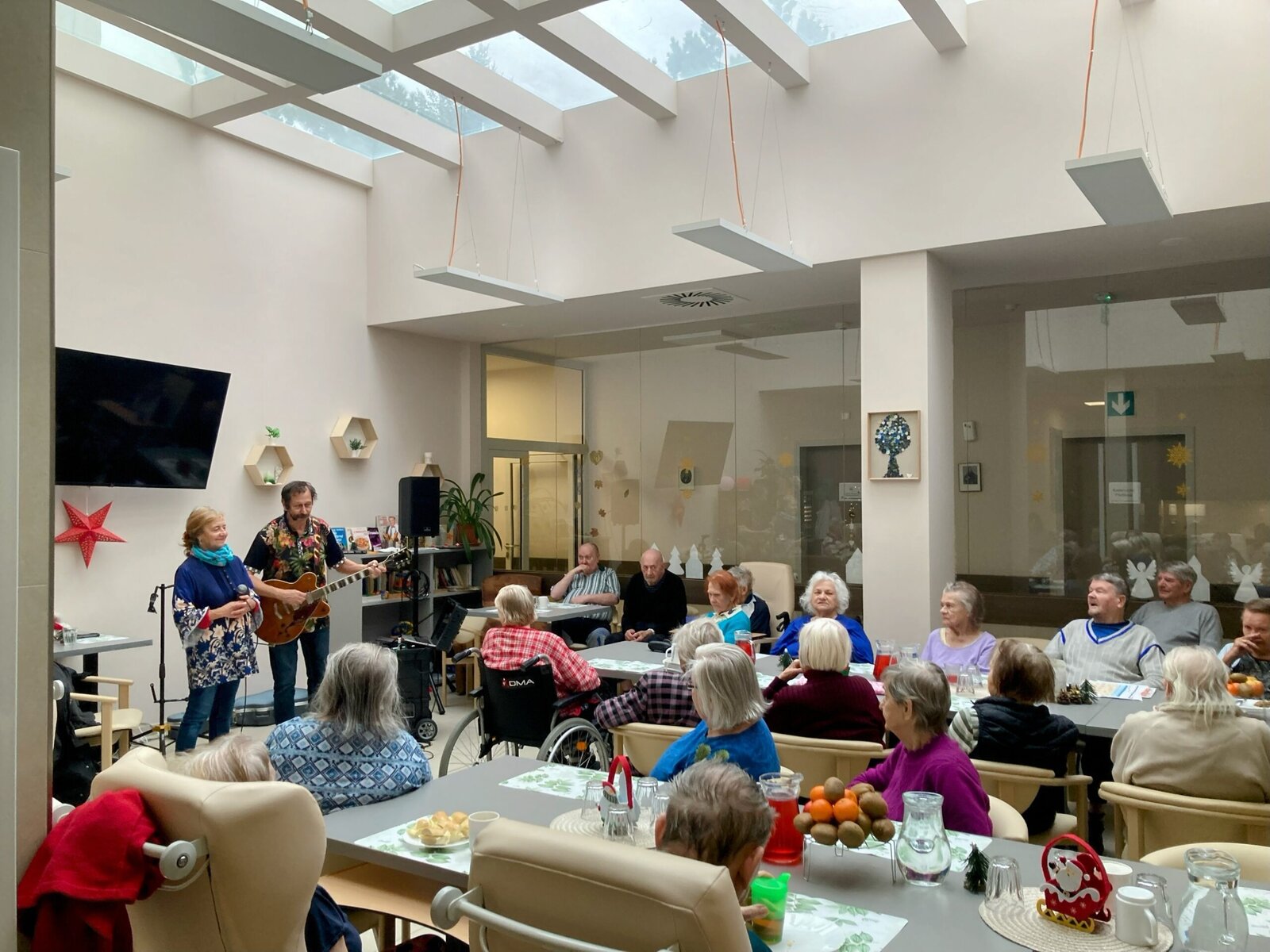 Dne 11. 12. 2024 jsme u nás v Senevida Lázně Bohdaneč měli vánoční koncert Dr. Klaun (pan Justich). Známé vánoční písně a koledy si rádi zazpívali všichni klienti. Děkujeme za pěkné představení a budeme se těšit na další spolupráci v dalším roce. 🎶🎤🎄😊😊✨