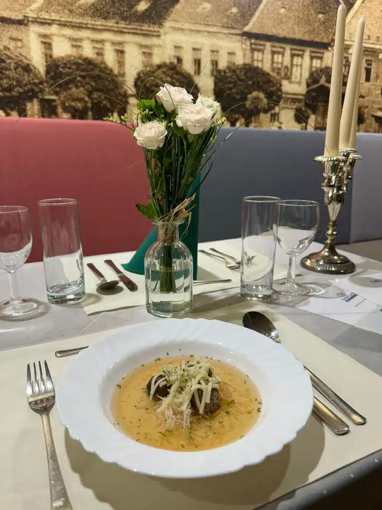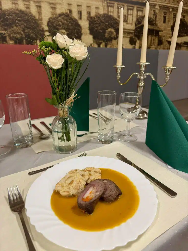 Klienti mají možnost jednou za rok pozvat své blízké na večeři. Naše jídelna se změní na prostor připomínající luxusní restauraci. Menu bylo tradiční české: nechyběla šunková rolka s křenem, jelení hřbet s knedlíkem či jablečný závin.