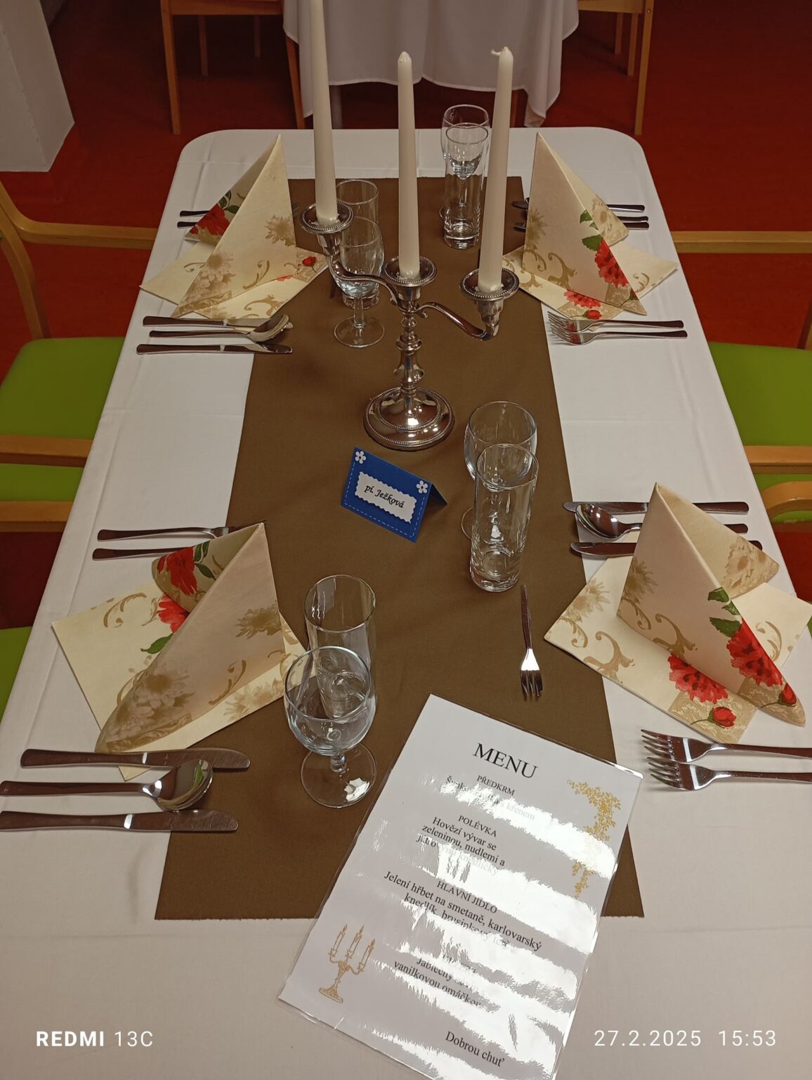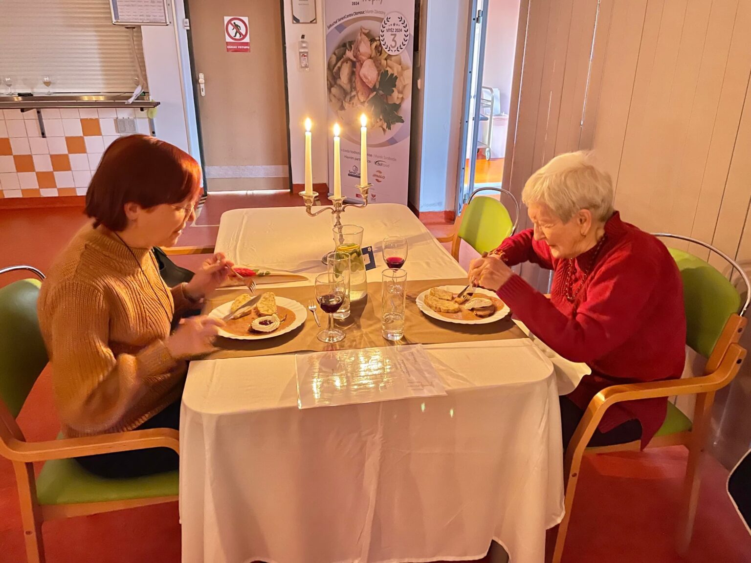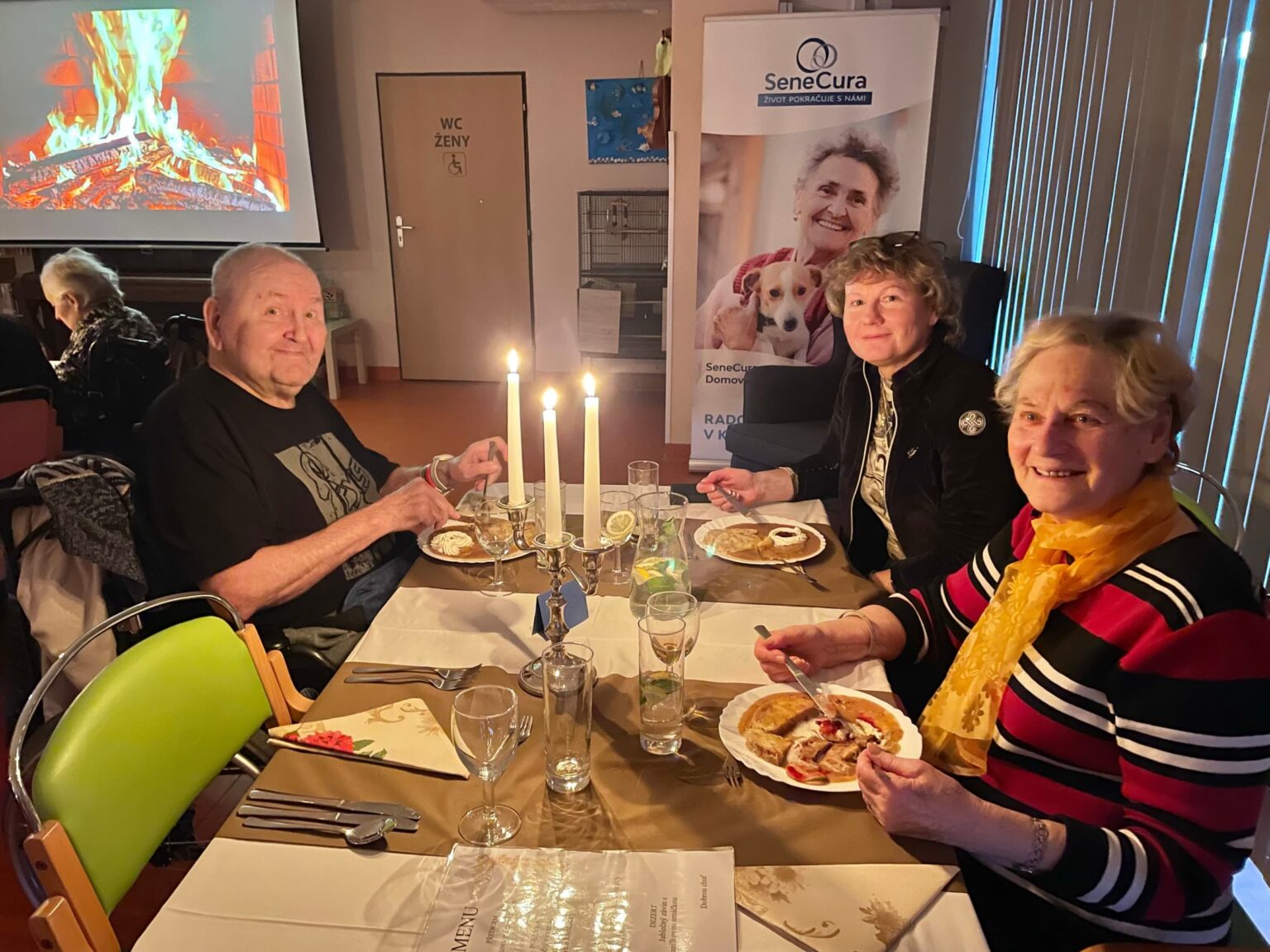 V uplynulých týdnech se u nás v domově konaly tradiční „Večeře při svíčkách“. Klienti spolu se svými rodinami a známými měli možnost společně povečeřet jako v luxusní restauraci. Naši kuchaři připravili vynikající čtyřchodové menu, které si získalo velký ohlas.