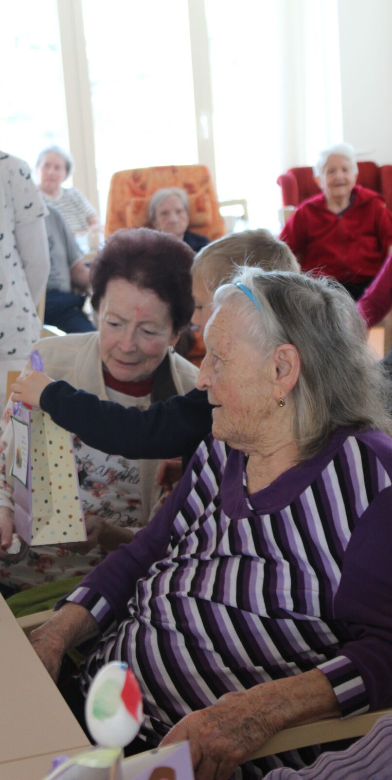 Blíží se Velikonoční svátky a za klientkami v Senevida Zlín přišly děti z Univerzitní mateřské školy Qočna. Přednesly básničku, zazpívaly písničku a vymrskáním omladily klientky. Svojí návštěvou všem udělaly velkou radost.
