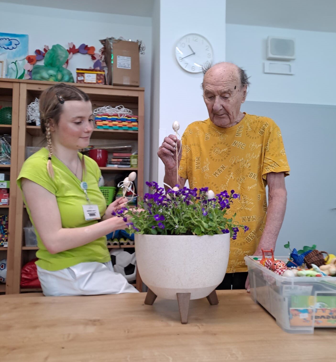 S našimi klienty Senevida Ostrov jsme si společně užili příjemné poledne plné jarní atmosféry. Zdobily se velikonoční truhlíky – sázeli jsme květiny a přidávali tematickou výzdobu, která krásně doladila celkový dojem. Nechyběla ani veselá nálada, smích a povídání. A protože se blíží Velikonoce, nechali jsme se unést tradicí a „nanečisto“ jsme si vyzkoušeli i pomlázku. 😀🐣