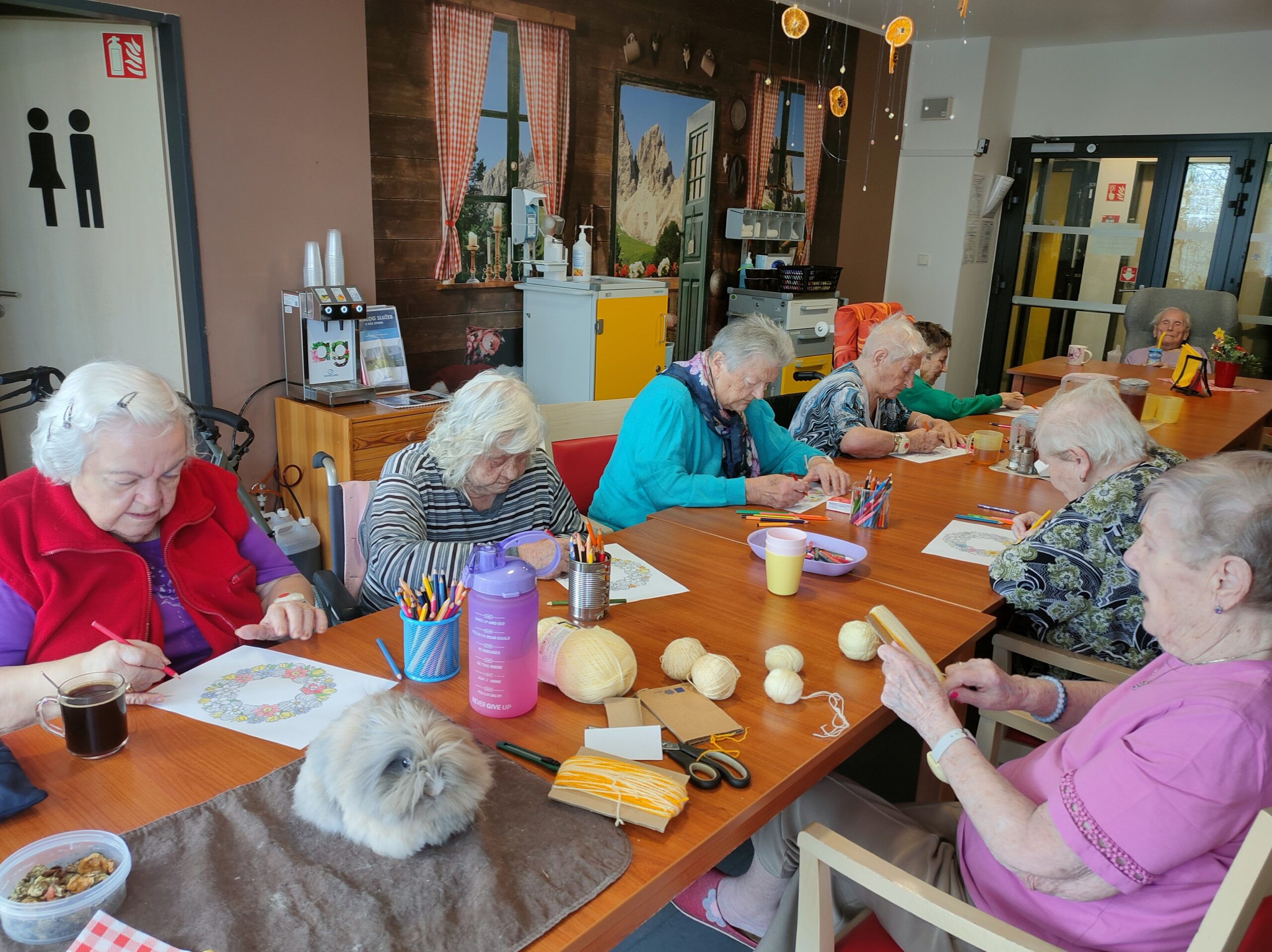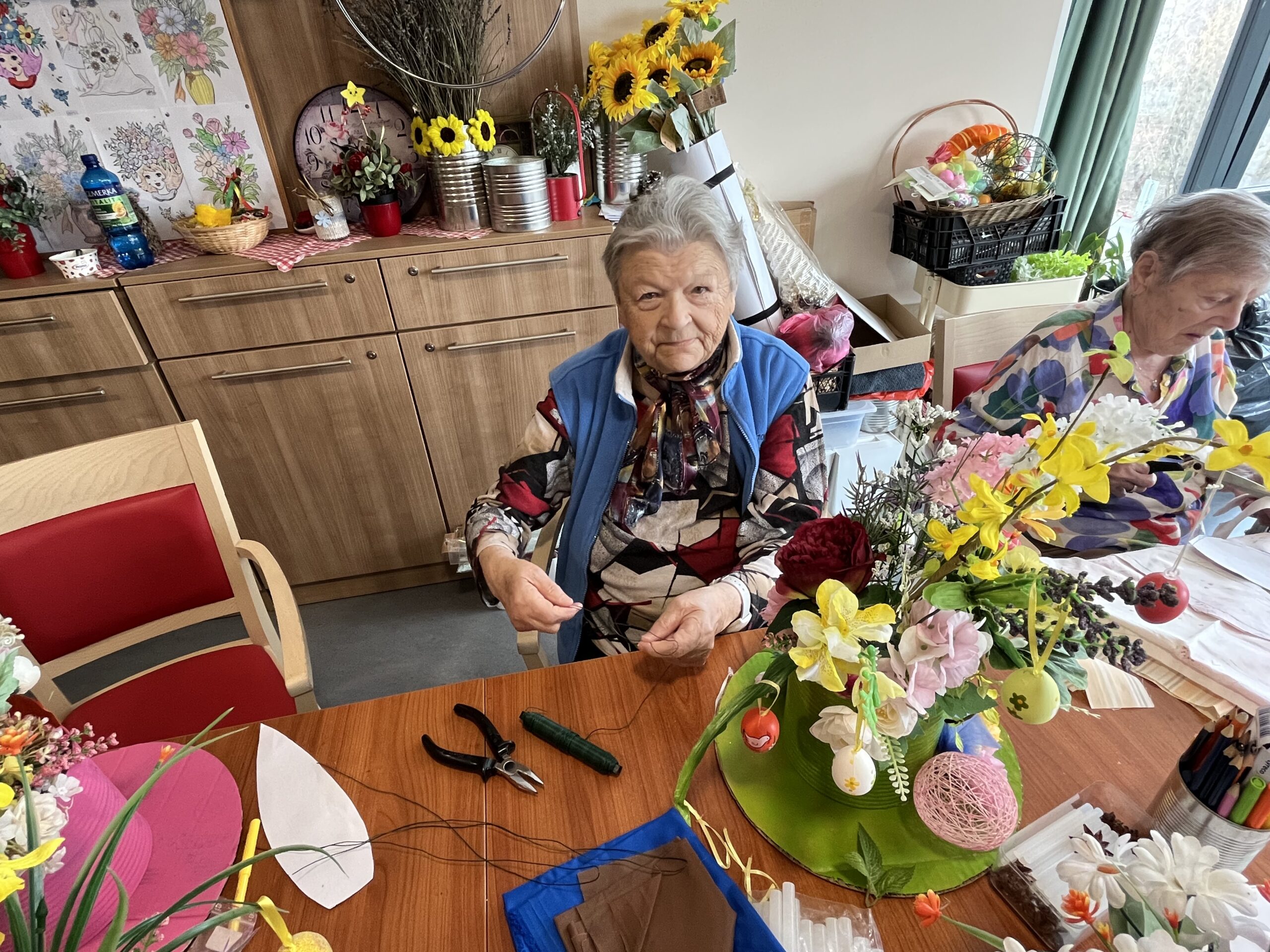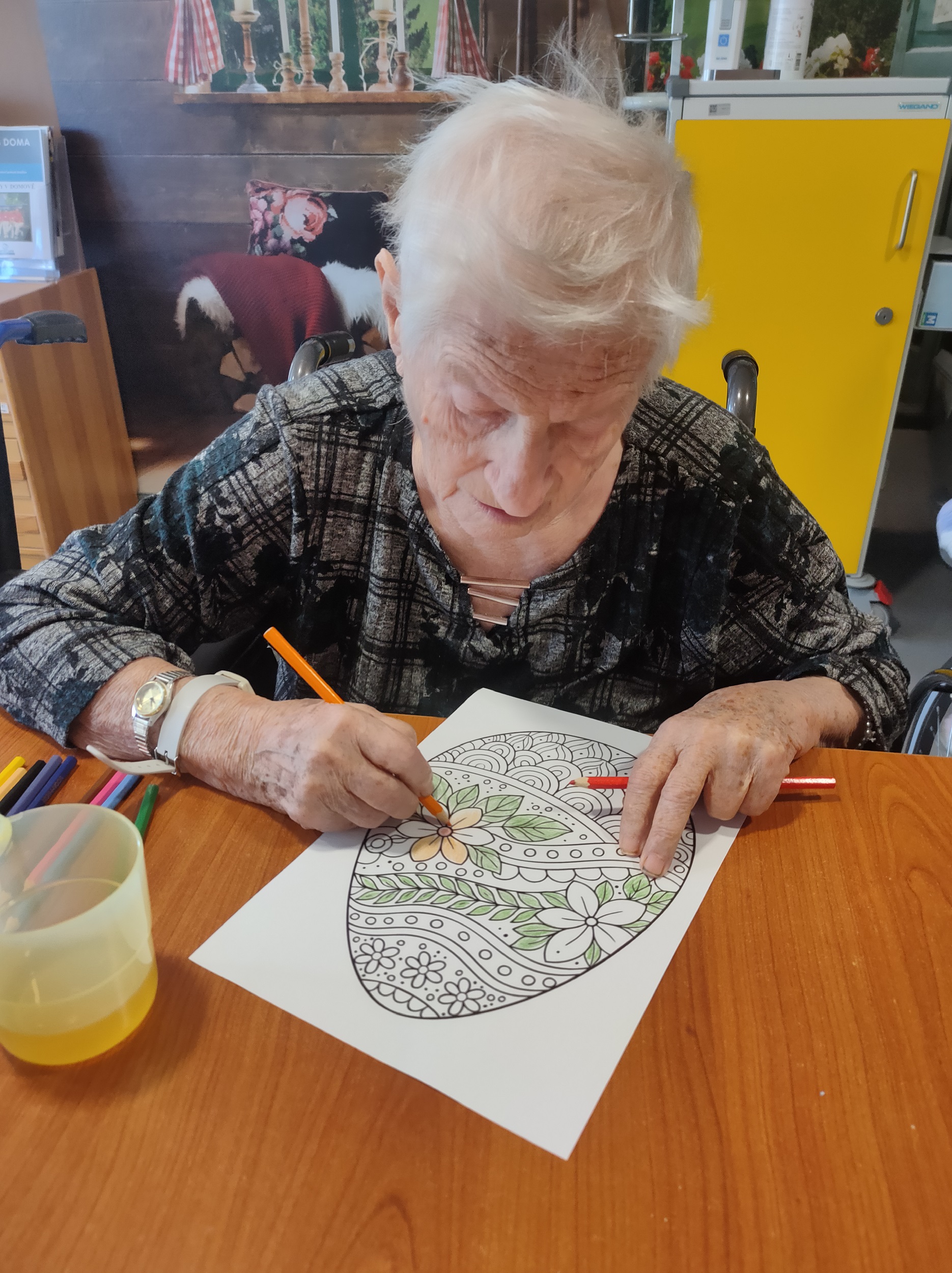 Každý přispěl dle svých možností. Pro zkrácení dlouhé chvíle jsme pro naše klienty připravili i množství nejrůznějších omalovánek, samozřejmě opět s motivem květin, jara a Velikonoc. Při výzdobě domova jsme nezapomněli ani na tradiční kočičky či zlatý déšť. Všichni jsme se tak postupně ladili na přicházející jaro a sváteční čas.