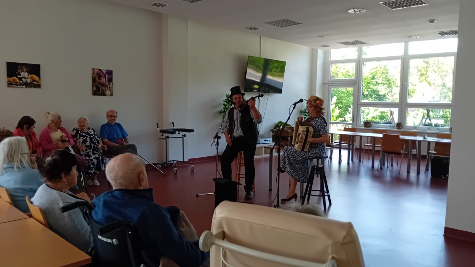 Odpoledne v Senevida Nepomuk, které se neslo v rytmu veselých dechových melodií díky panu Karpíškovi! 🎺 Jeho energické vystoupení s harmonikou a dalšími nástroji našim klientům přineslo spoustu radosti a rozproudilo příjemnou atmosféru. Klienti se zaposlouchali do písní, které dobře znají, zazpívali si a někteří si i zatančili. 😊💃