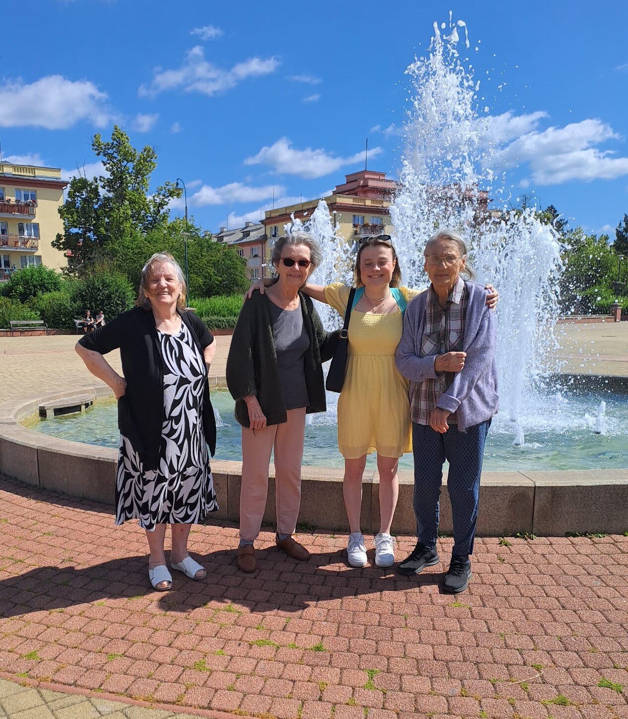 Na náměstí jsme obdivovali krásný kulturní dům, fontány hrály svou vodní symfonii a slunce nás šimralo po tvářích. Smáli jsme se, povídali si, vzpomínali – zkrátka den, který pohladil po duši. Už teď se těšíme, kam vyrazíme příště! 🌞❤️😀👫