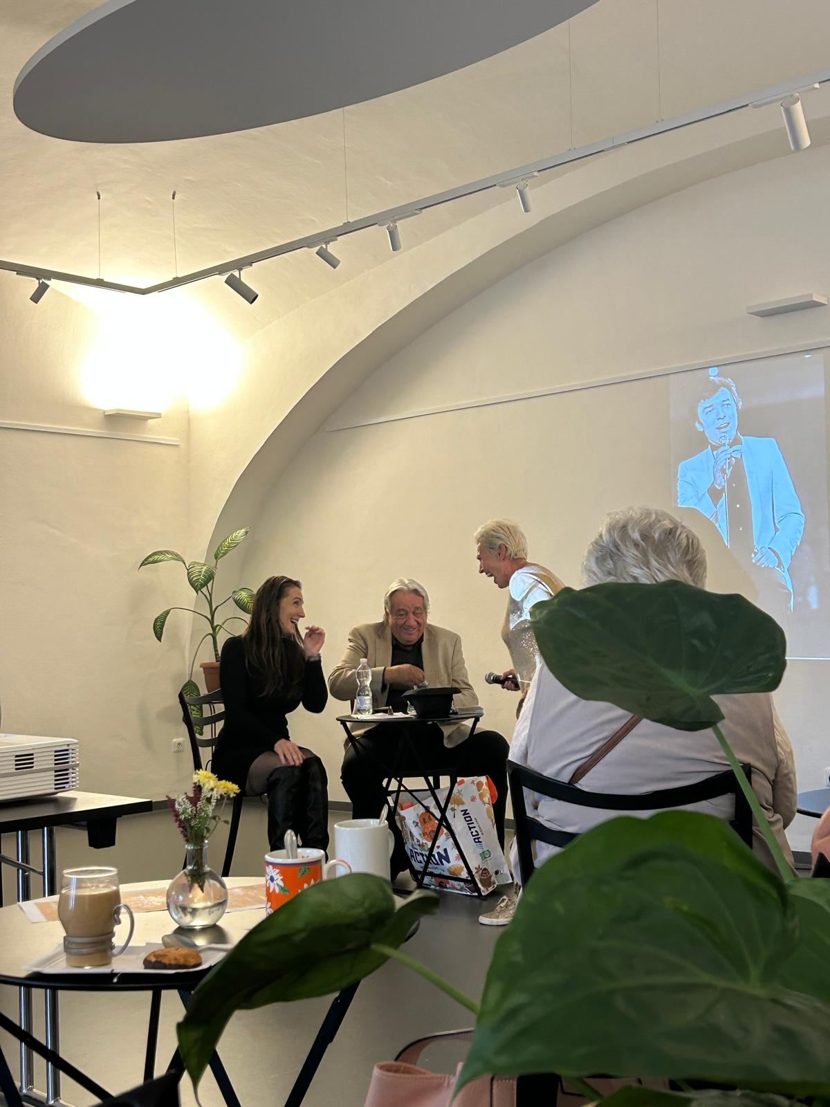 Tentokrát jsme měli jedinečnou příležitost navštívit výstavu „Byl jsem vrchní fotograf Karla Gotta“, kterou nás provedl sám autor pan František Jirásek, dvorní fotograf legendárního „Zlatého slavíka“.