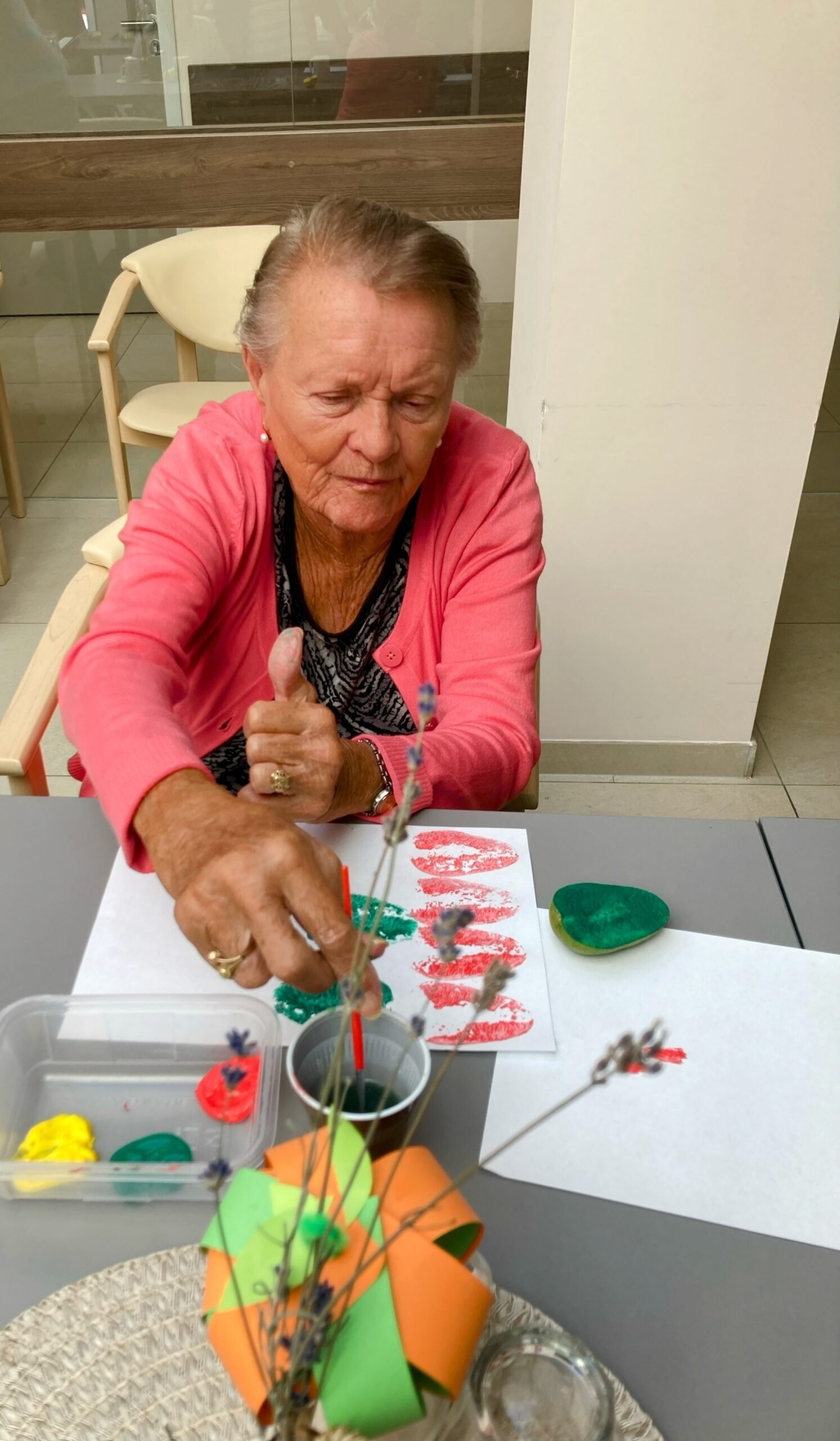 V Senevida Lázně Bohdaneč jsme si zpříjemnili deštivé dopoledne procvičením jemné motoriky. Vznikla pěkná výzdoba. Klientky tisknutí ovocných razítek a listů moc bavila.👍🙂