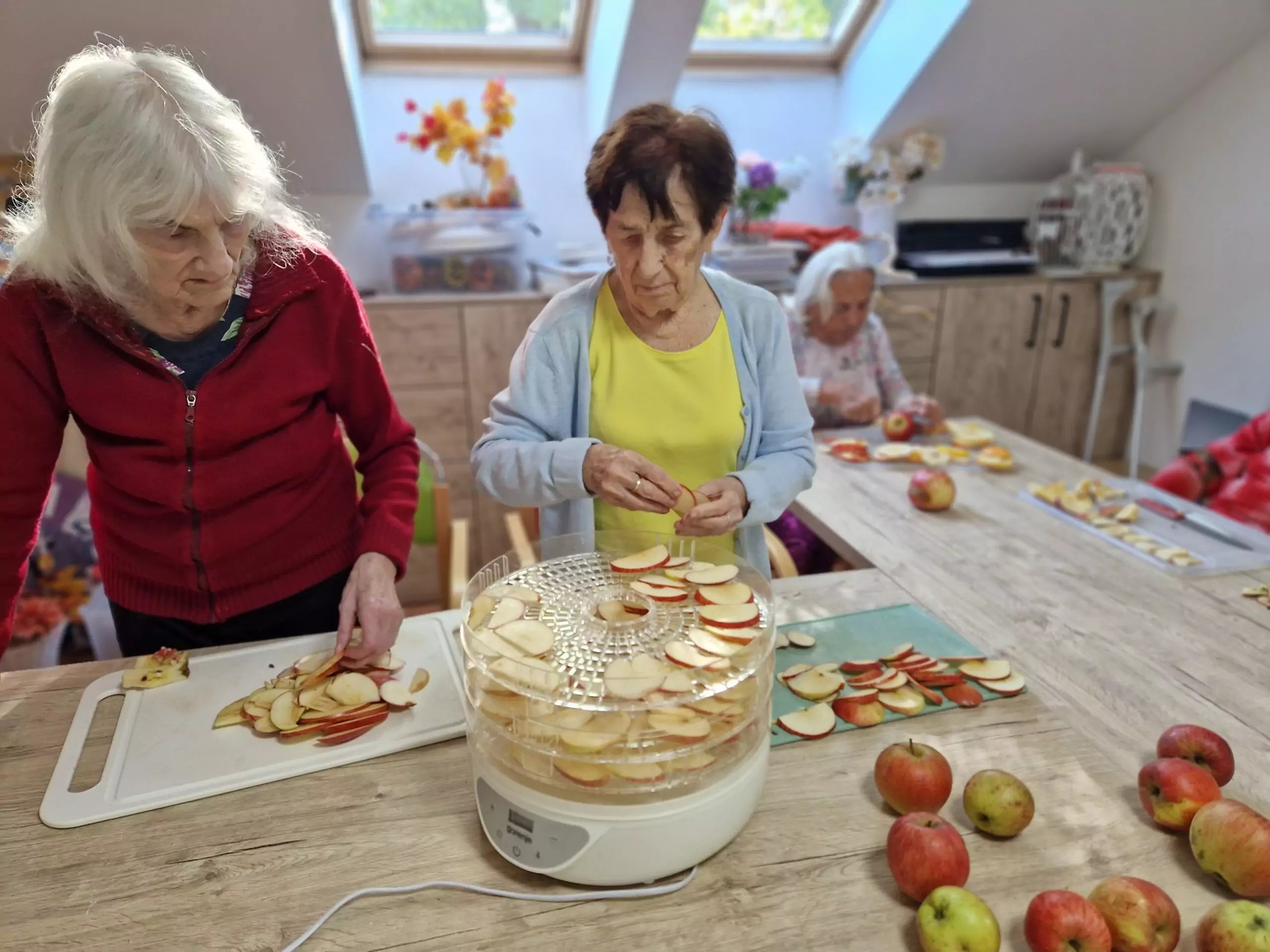 Klienti Senevida Frýdek-Místek si v rámci dopolední aktivizace procvičili jemnou motoriku v krájení jablek 🍎, která jsme poté nechali usušit a teď už se těšíme, až si pochutnáme na křížalách.