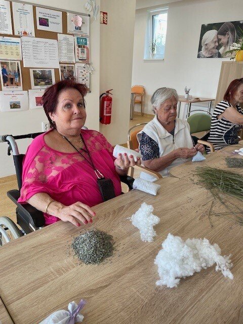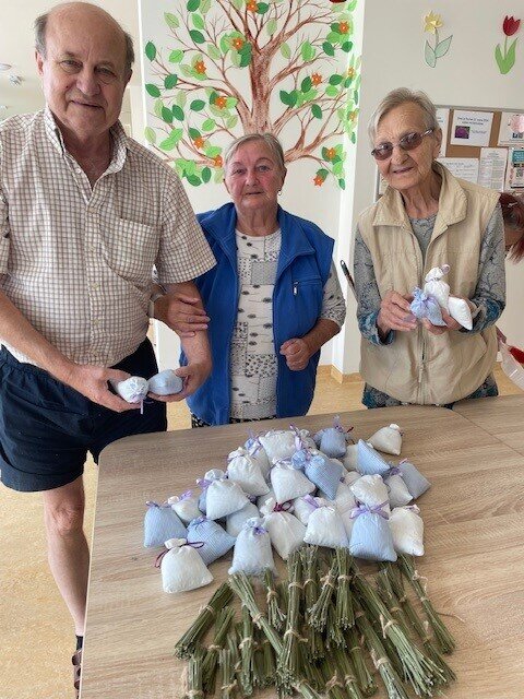 Dnes jsme si s klienty Senevida Boskovice vyráběli levandulové pytlíčky, které nám krásně provoní pokoje a potěší na duši. Klienti si nejdříve ušili textilní pytlíčky, které následně plnili sušenou levandulí z naší zahrady. Levandule má relaxační a uklidňující účinky, využívá se v kuchyni, kosmetice, vůně levandule také odpudí všelijaký hmyz.