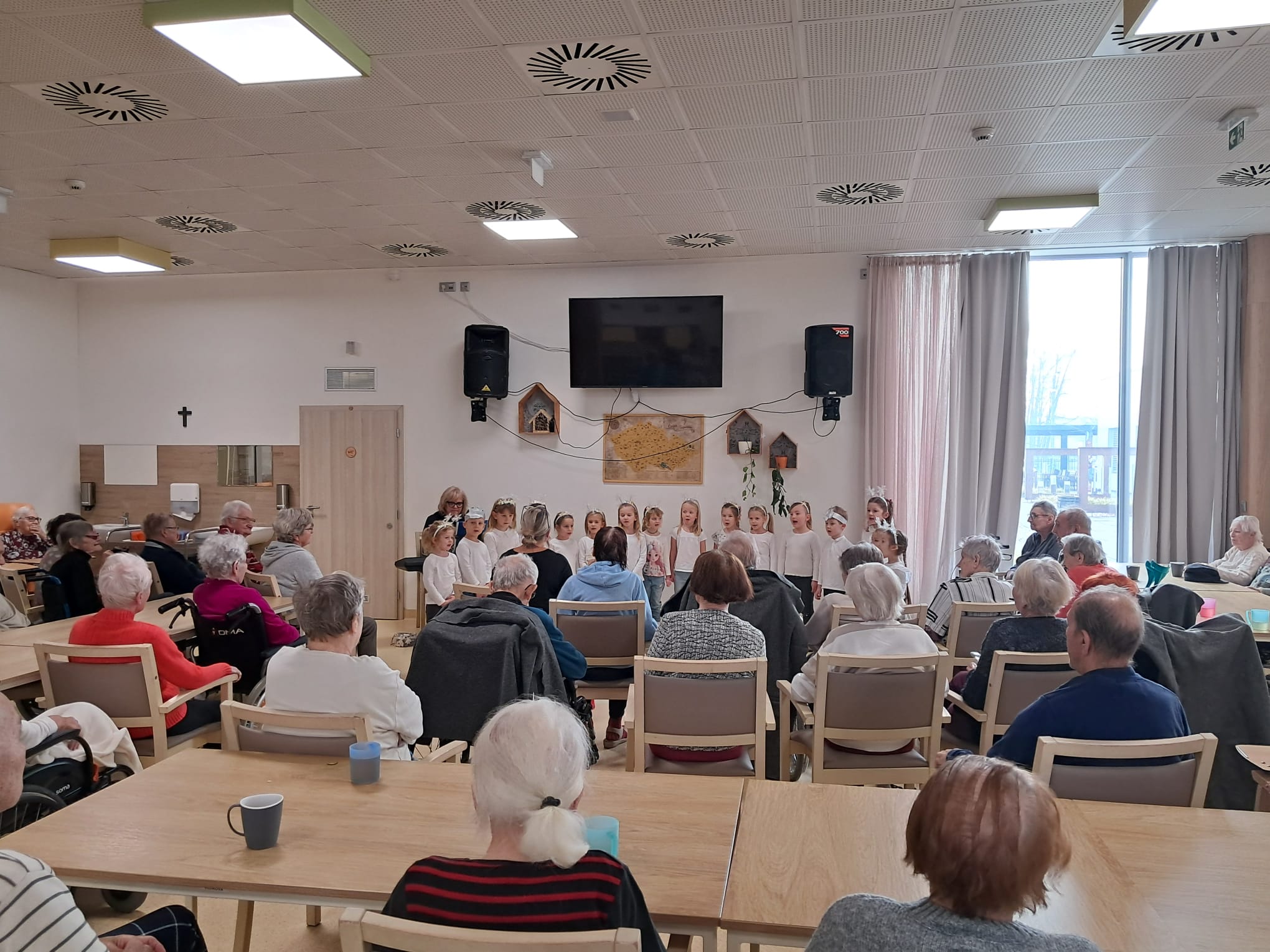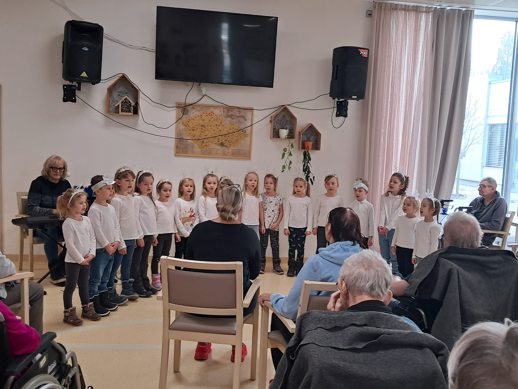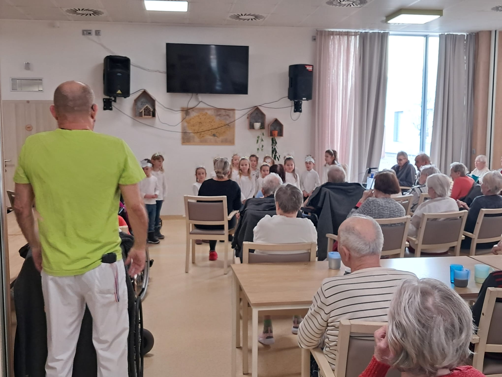 Minulý týden u nás v Senevida Ostrava proběhlo první vánoční vystoupení dětí pro klienty v rámci mezigeneračního setkávání. Malí zpěváčci byli z mateřské školy Mitušova a společně si připravili pásmo krásných vánočních písní, které nám za doprovodu klavíru zazpívali. Poté rozdali našim klientům drobné dárečky, které si pro ně rovněž připravili.