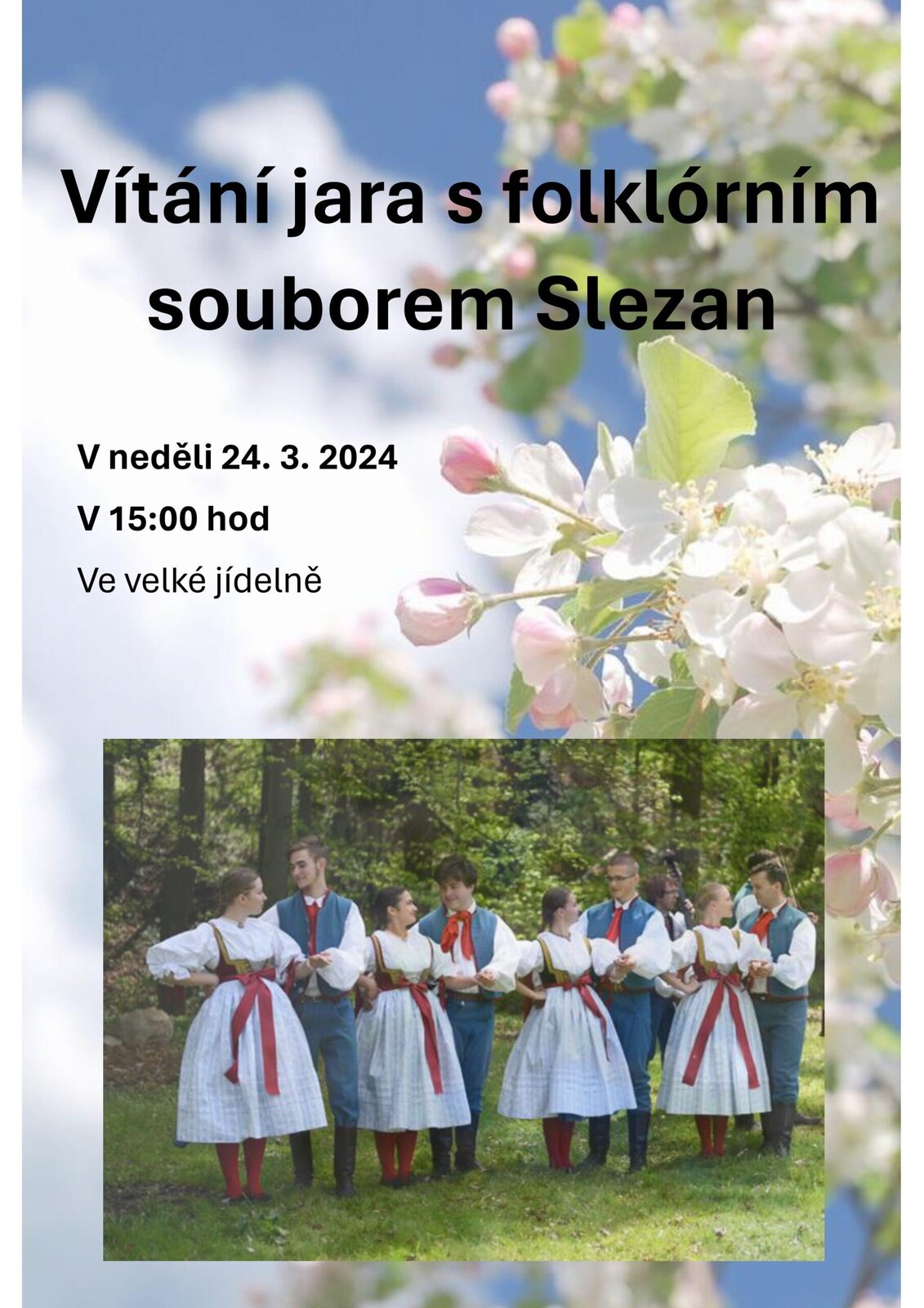 srdečně vás zveme na vystoupení folklórního souboru Slezan, které se uskuteční v zařízení Senevida Ostrava v neděli 24.3.2024 od 15:00. 😊