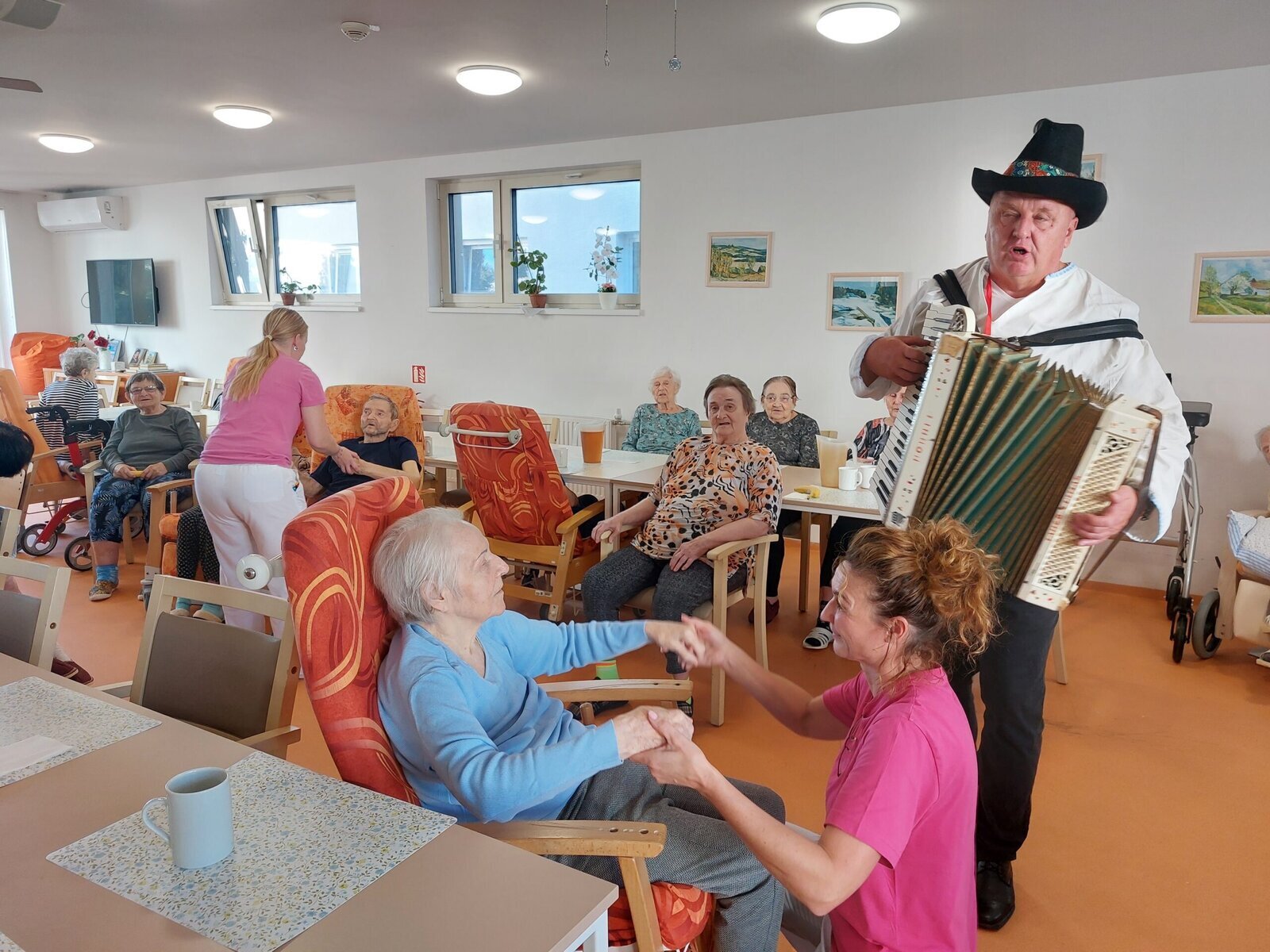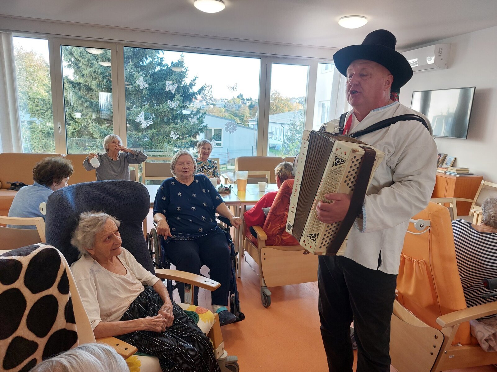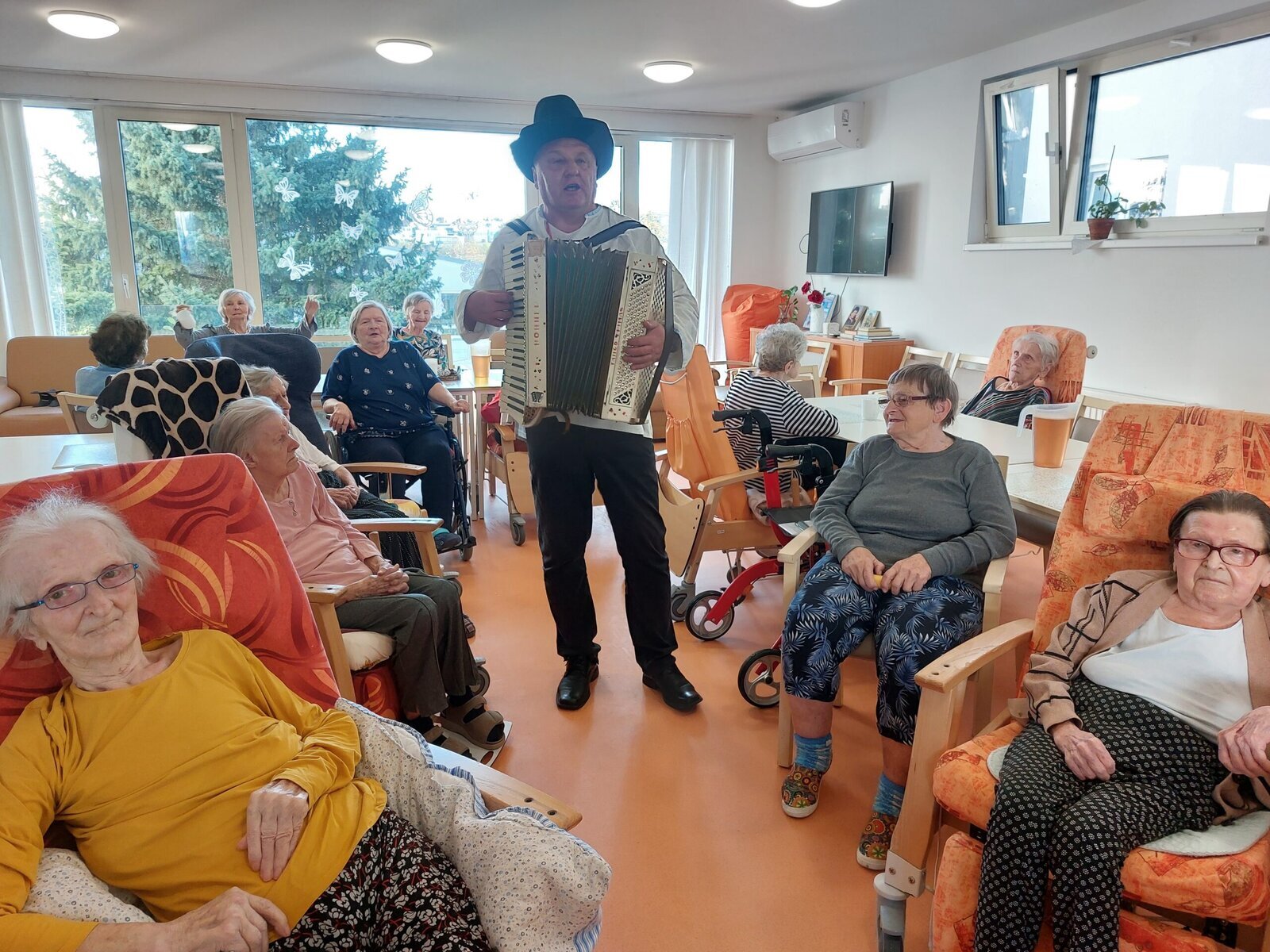 V rámci Týdnu sociálních služeb proběhl v Senevida Zlín Den otevřených dveří. Mohli jste vidět vystoupení pana harmonikáře. Navštívil klienty na celém zařízení, klienti si s ním zahráli, zazpívali a někteří i zatančili.