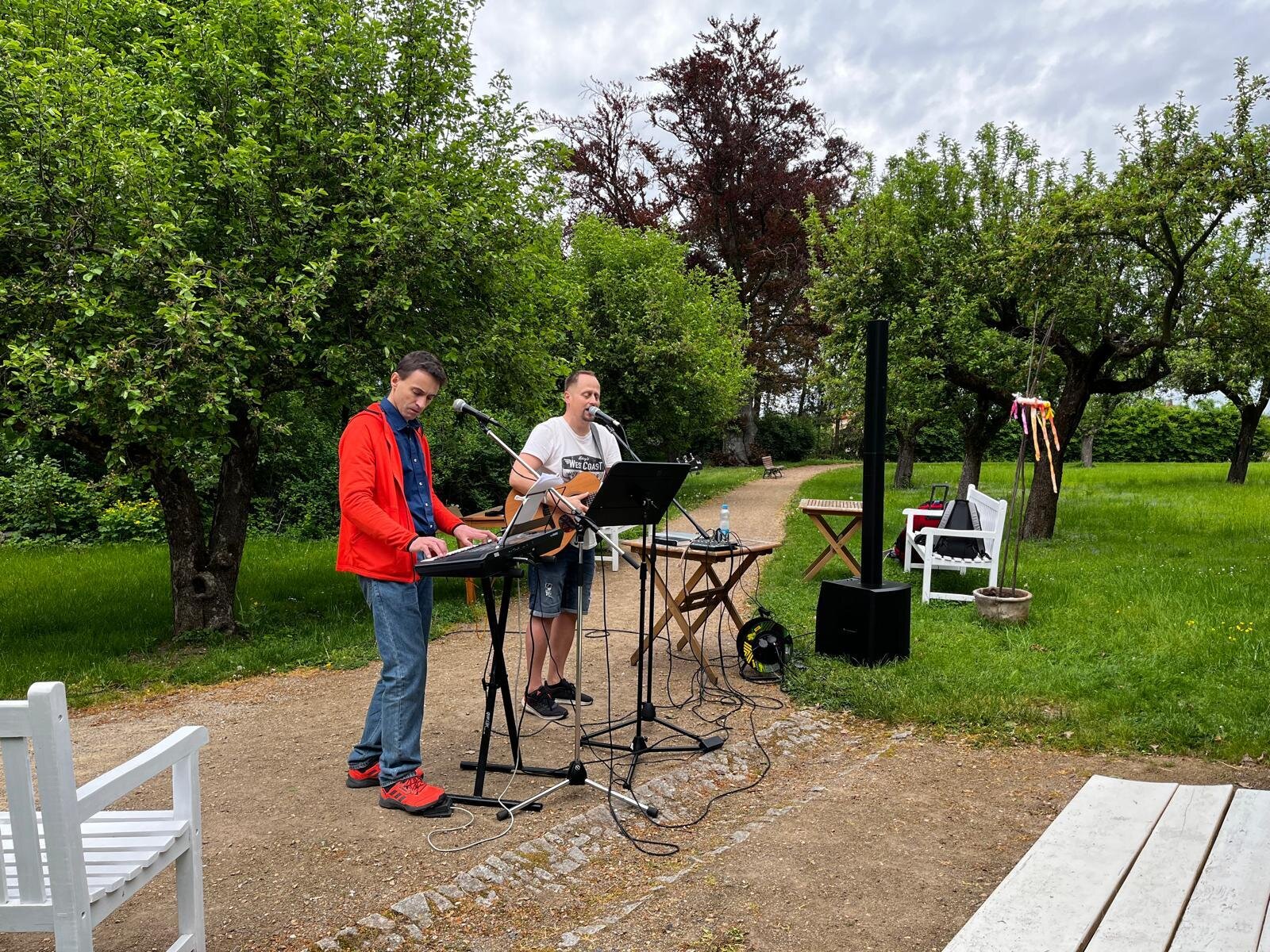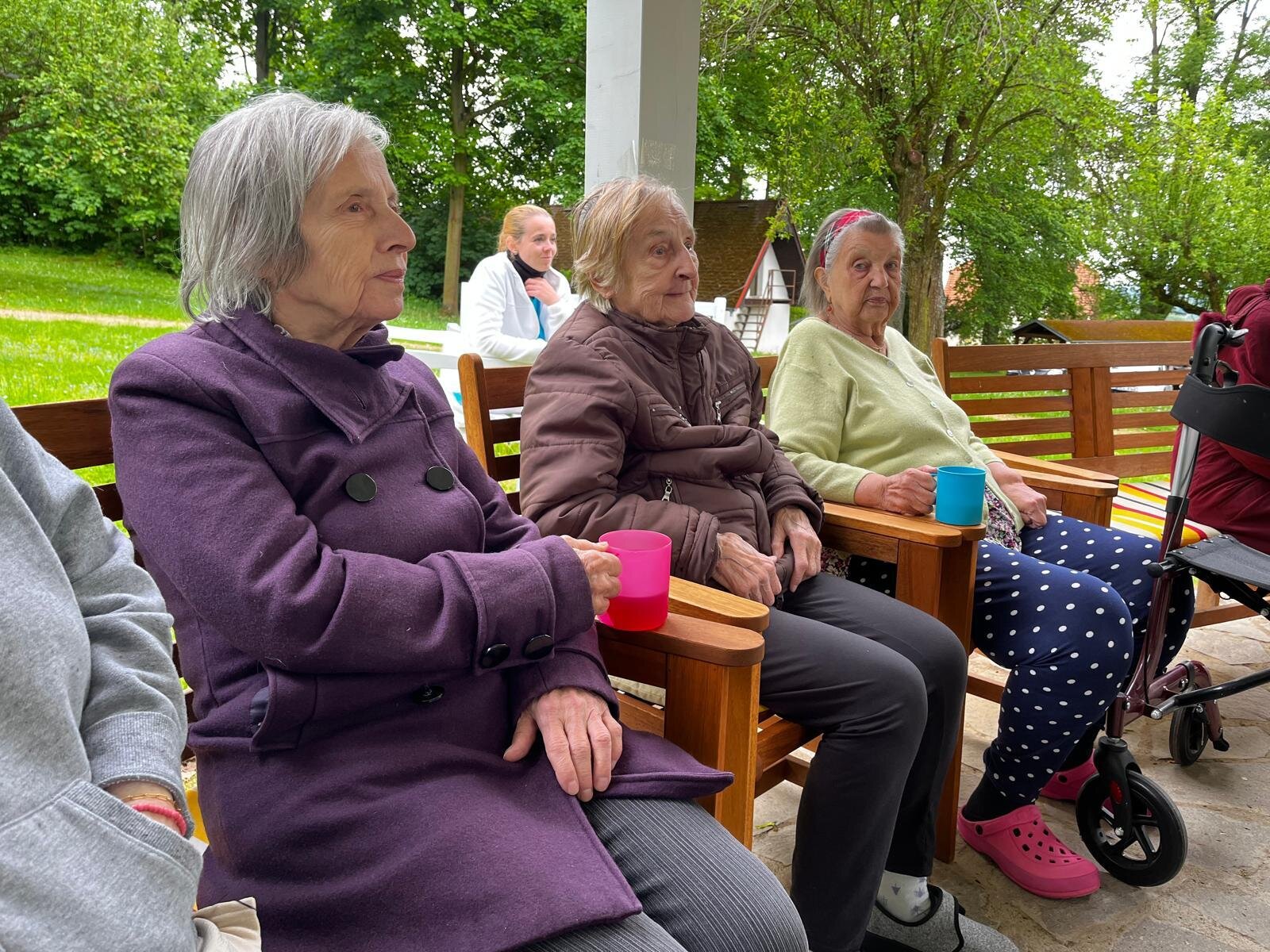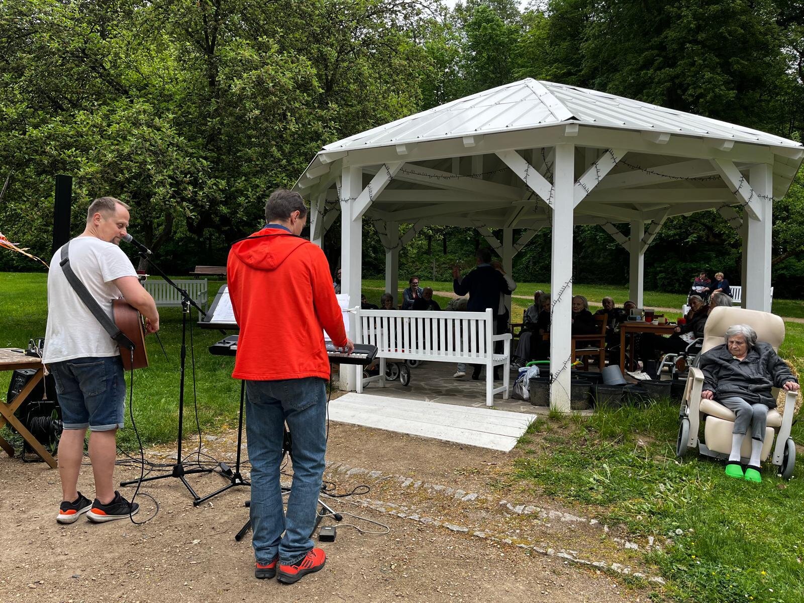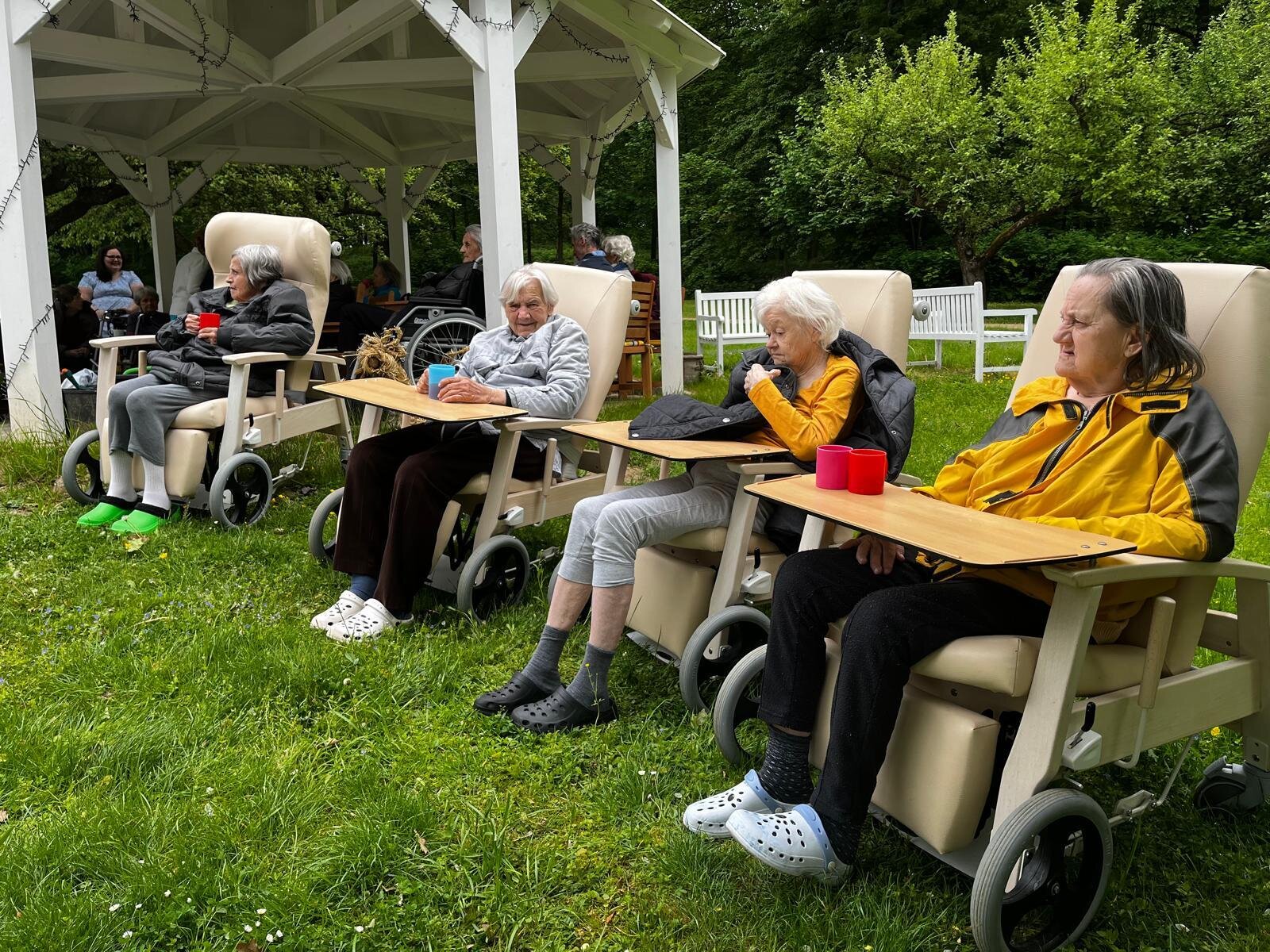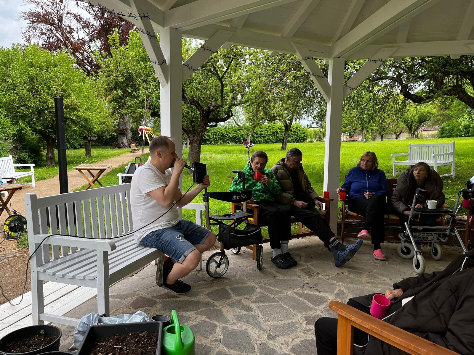 Vystoupení kapely G - SUS v Alzheimer Home Pyšely bylo krásné. Klienti si zazpívali, zatancovali, poslechli milá slova, a to celé venku na čerstvém vzduchu v našem altánku s teplým čajem v ruce.