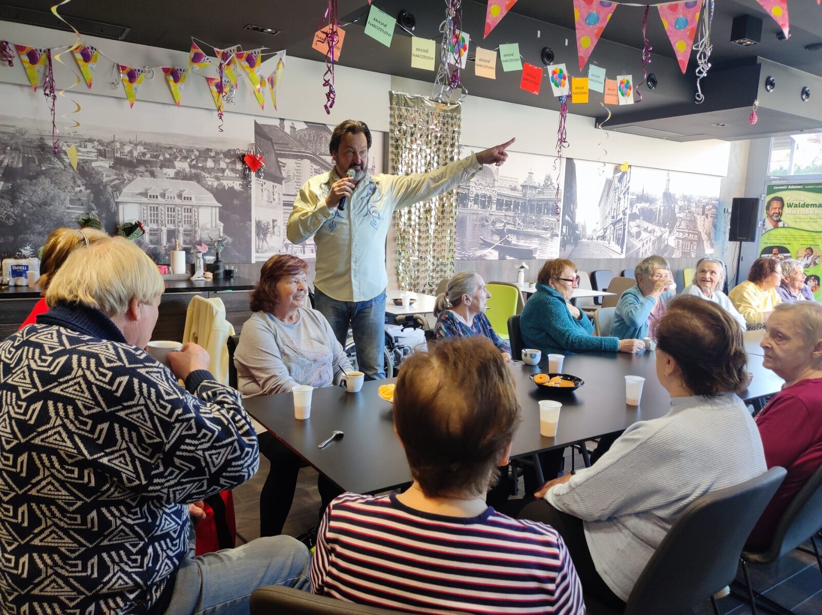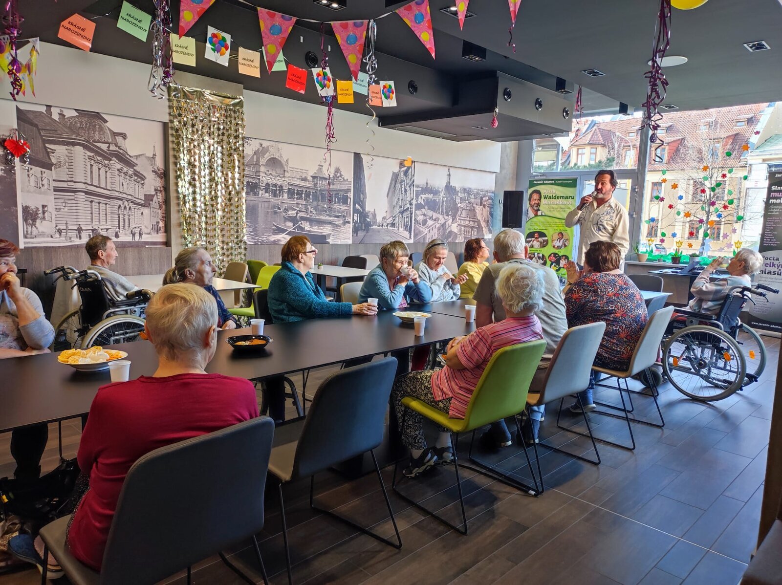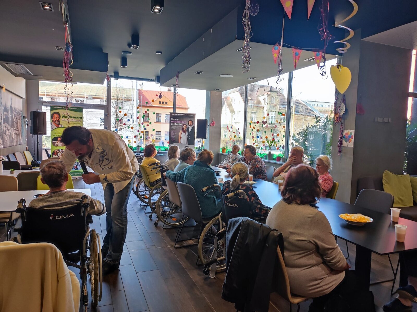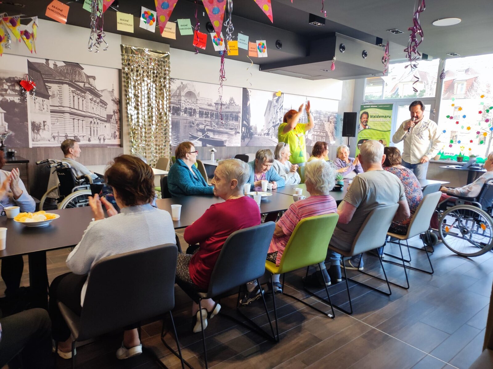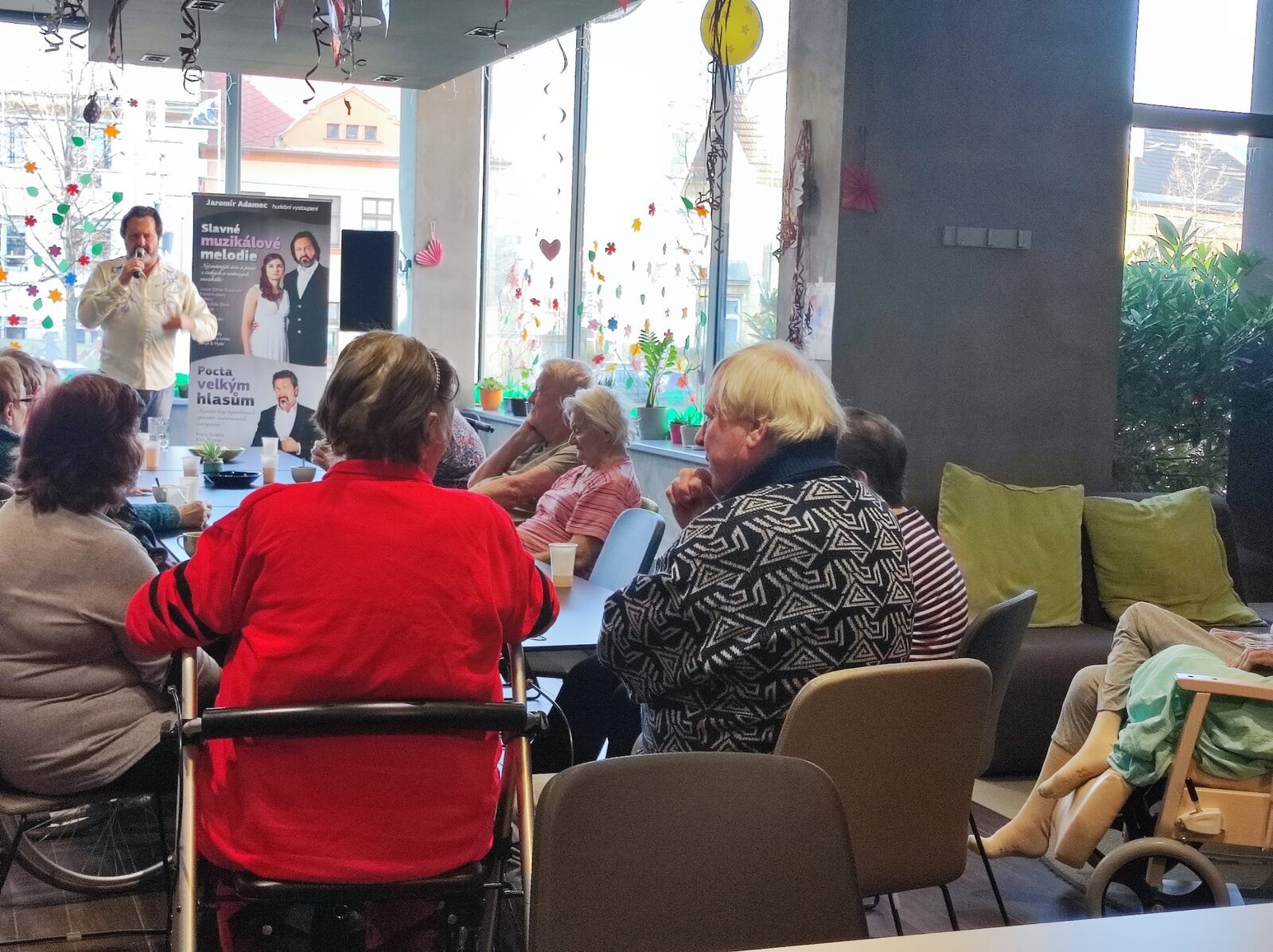 Navštívil nás úžasný pan Adamec, který nám zazpíval nejslavnější písně Waldemara Matušky. Odpoledne bylo nádherné, plné zpěvu, zábavy a nadšených tváří