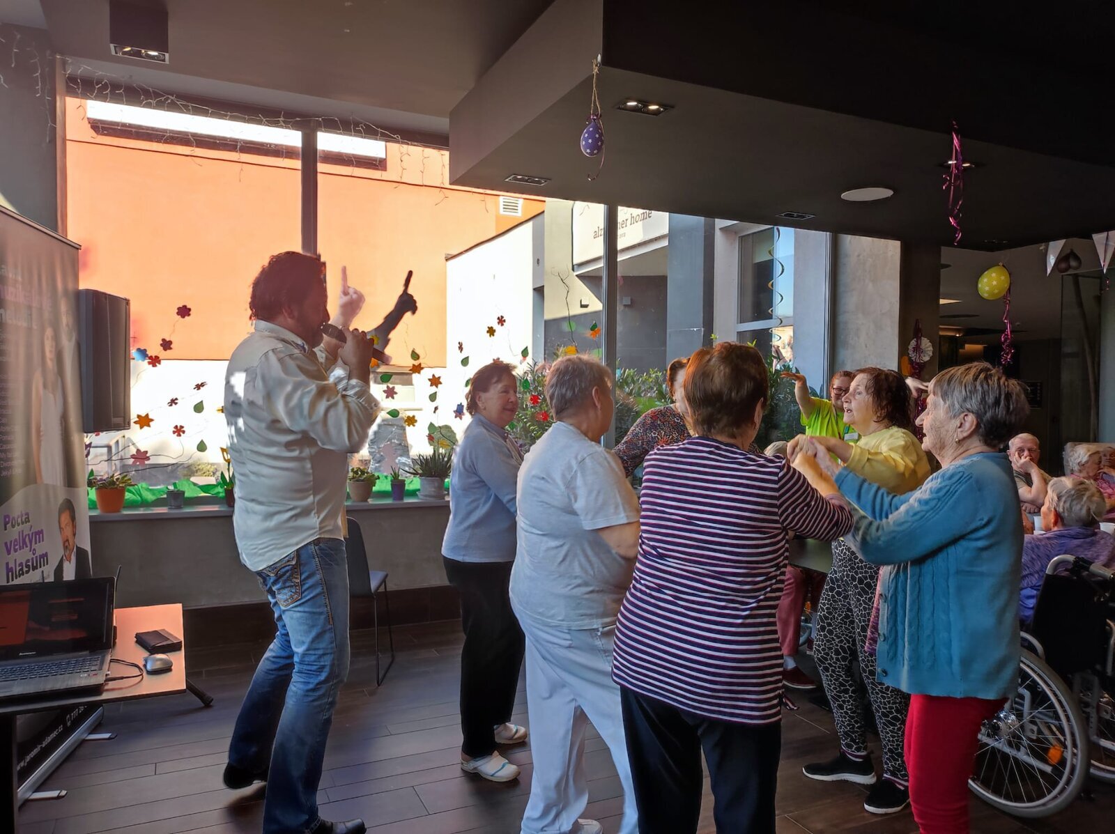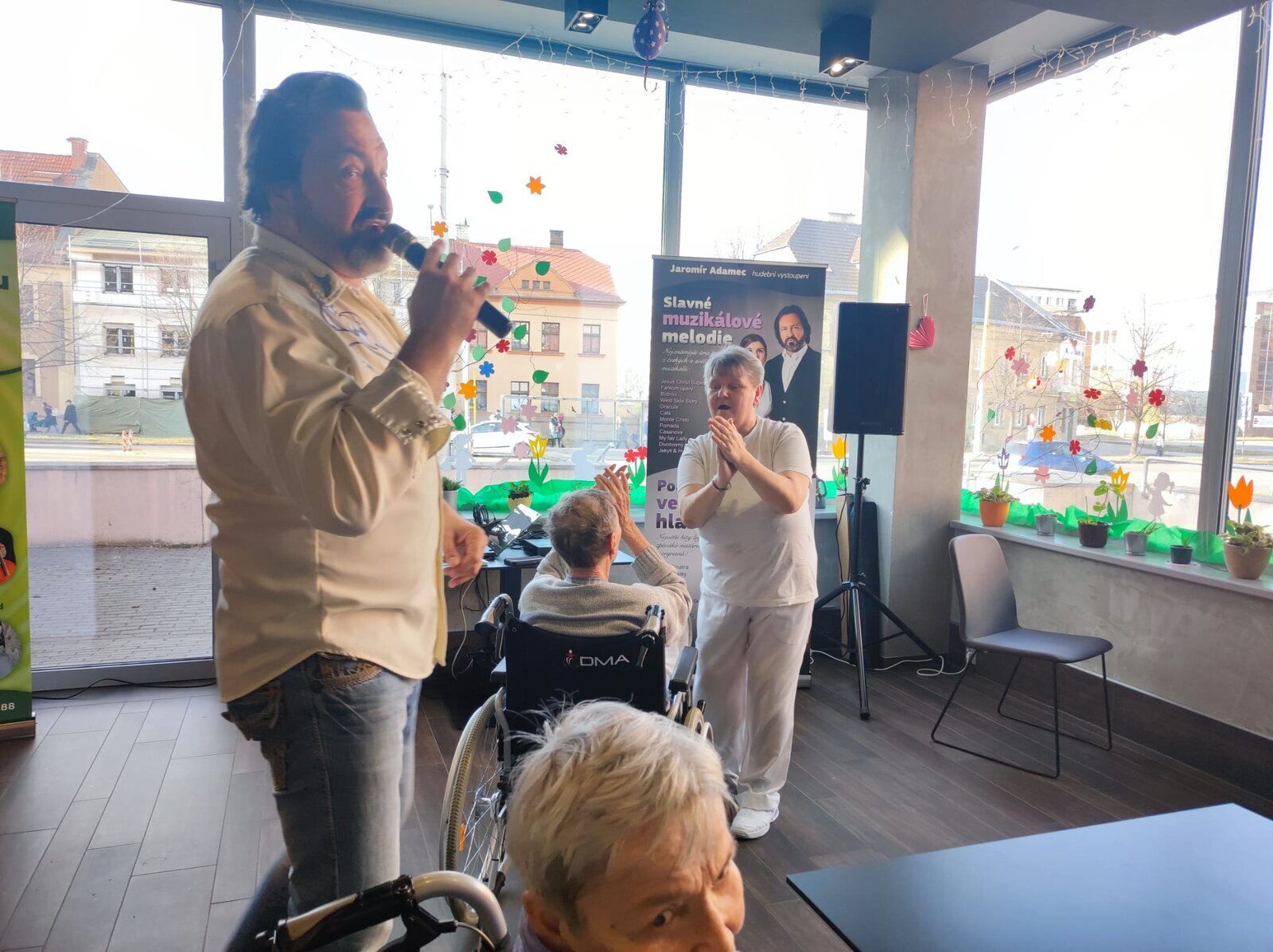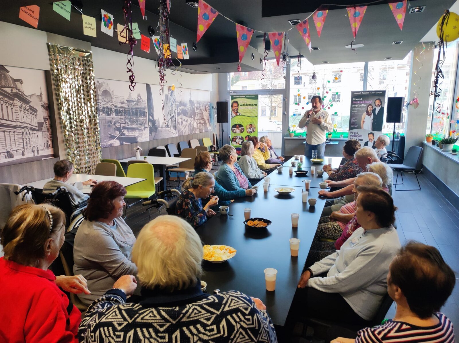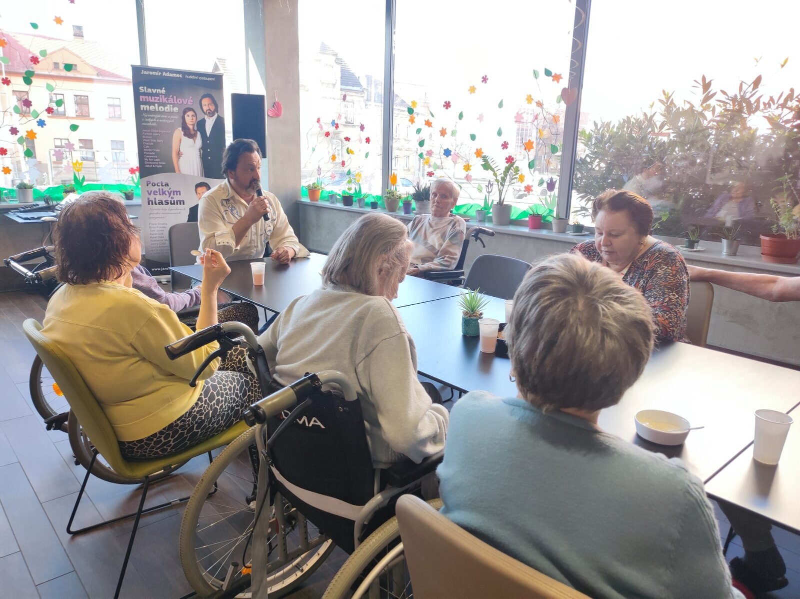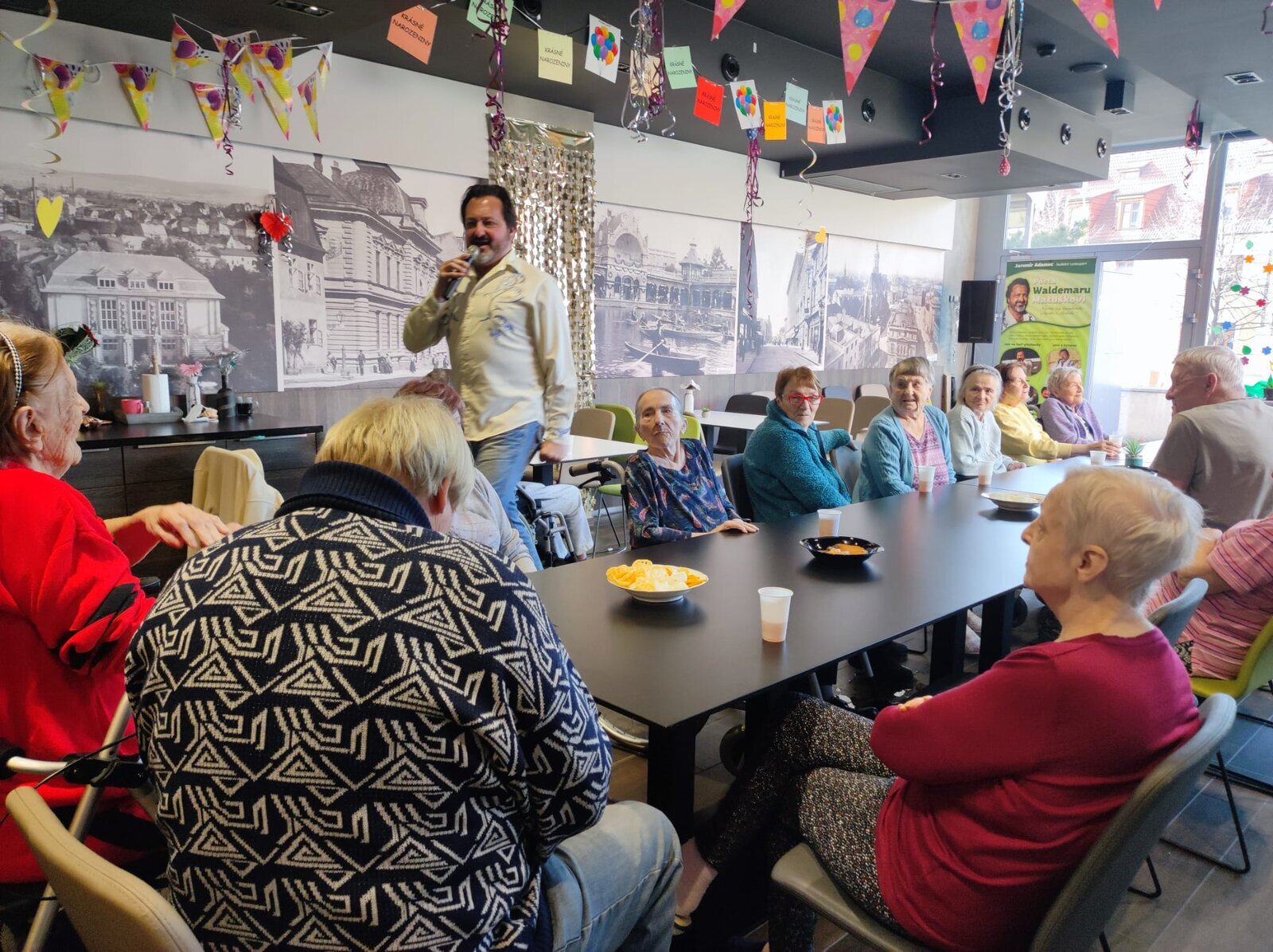 Navštívil nás úžasný pan Adamec, který nám zazpíval nejslavnější písně Waldemara Matušky. Odpoledne bylo nádherné, plné zpěvu, zábavy a nadšených tváří