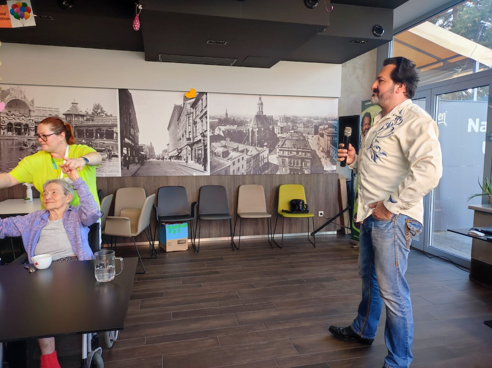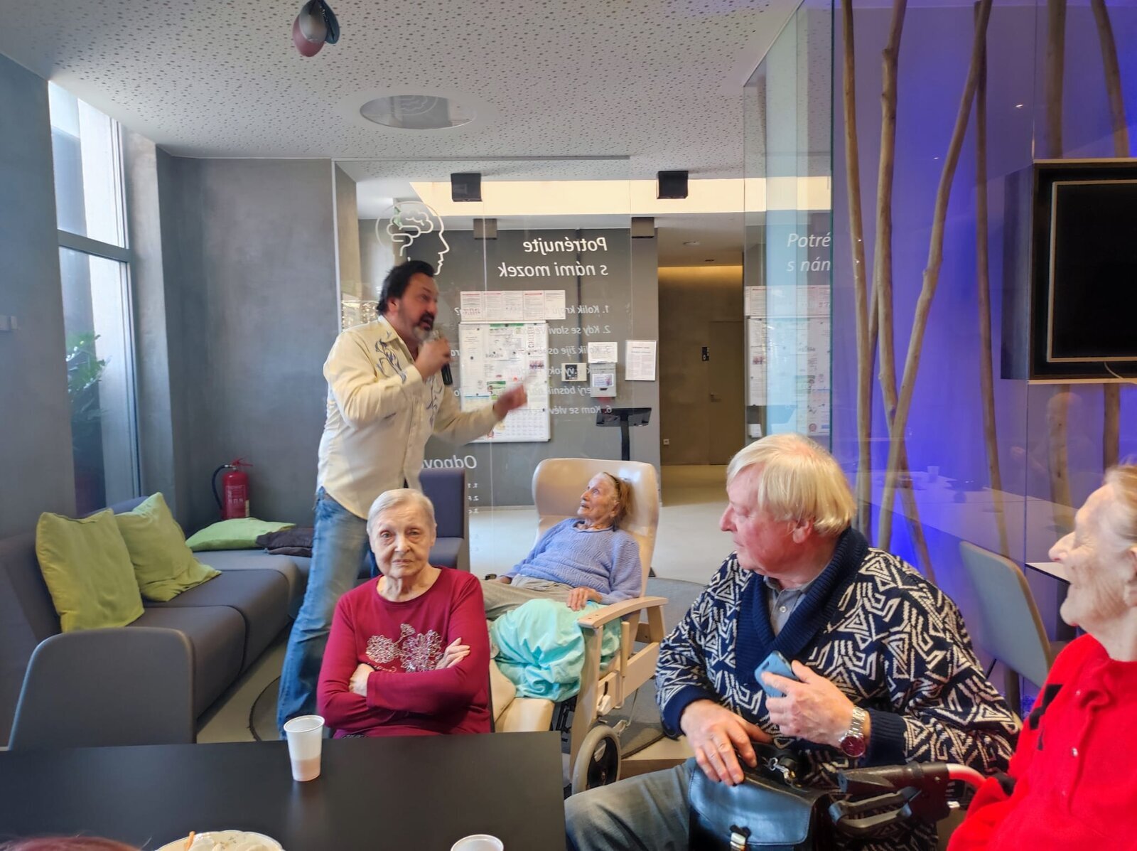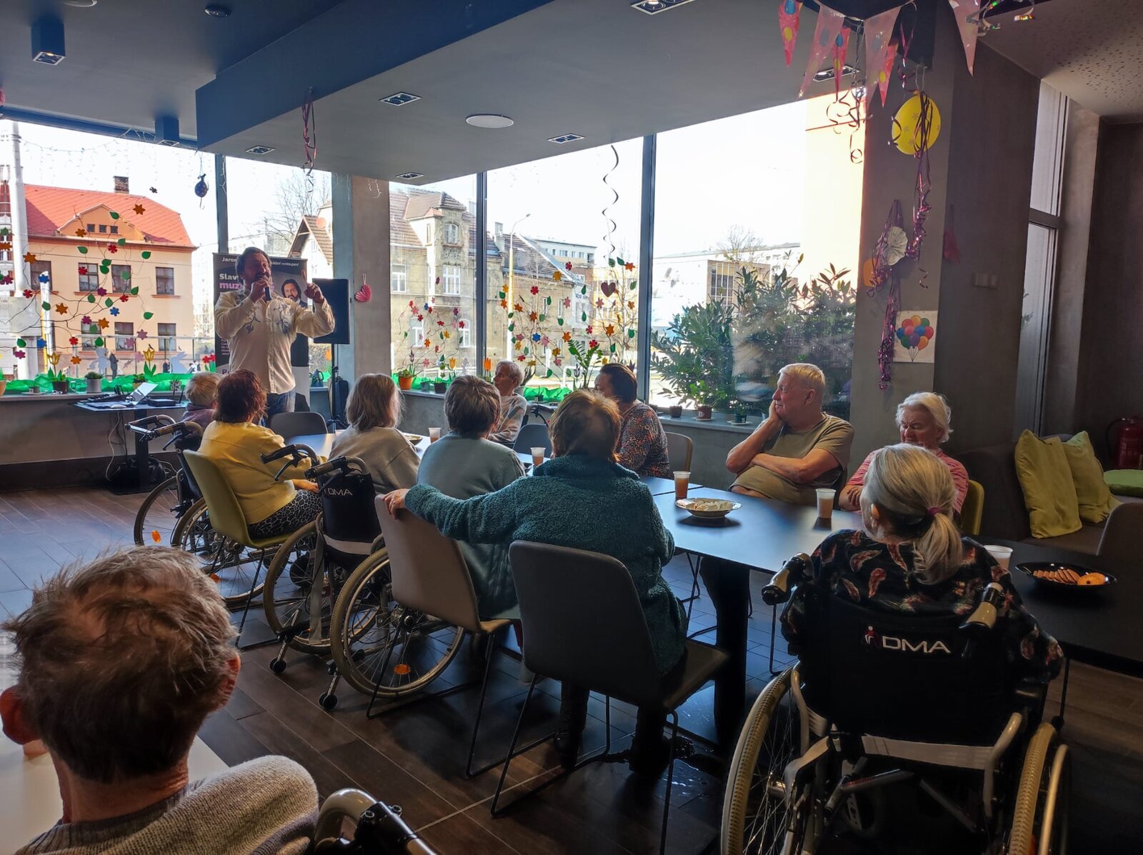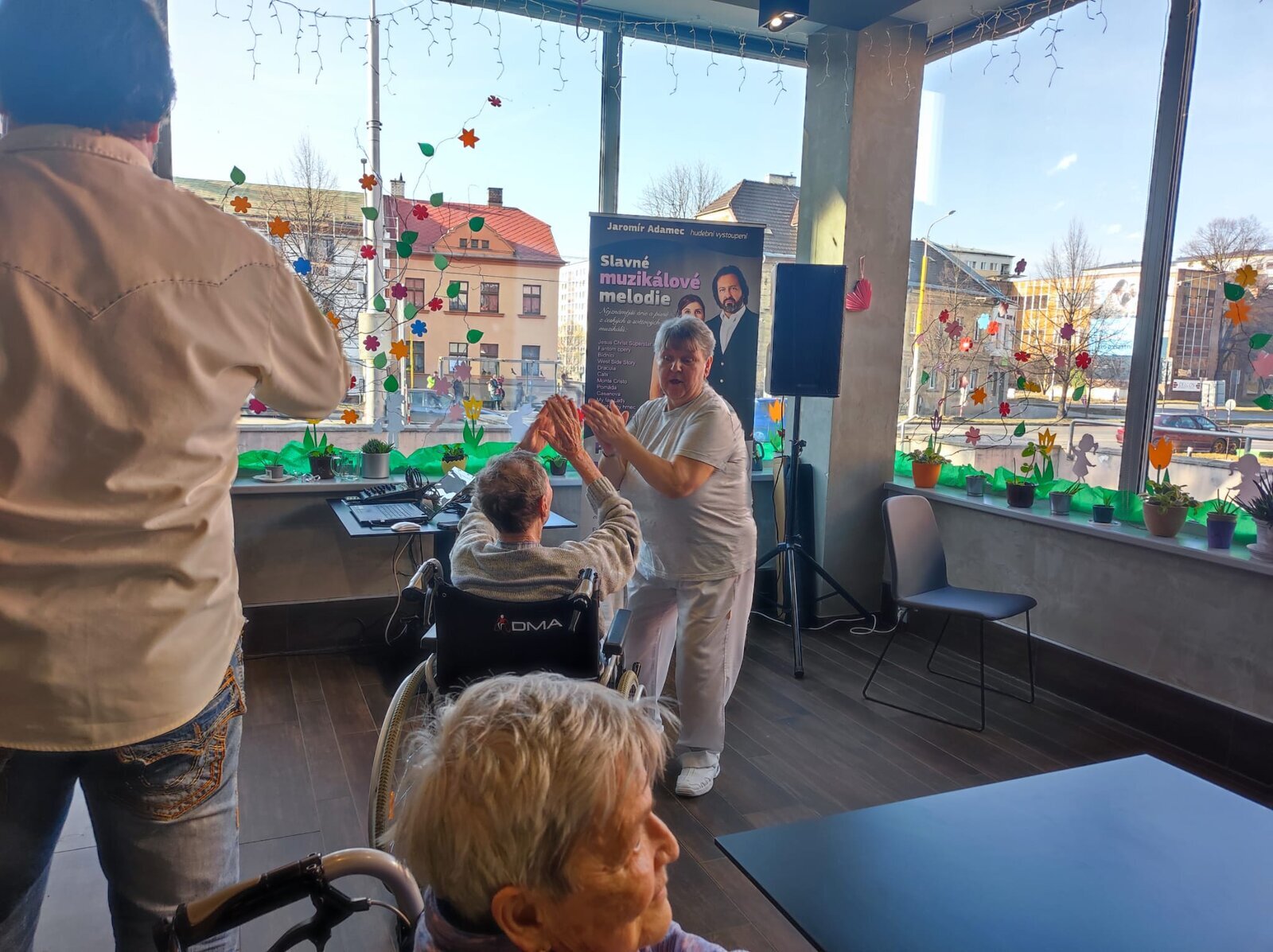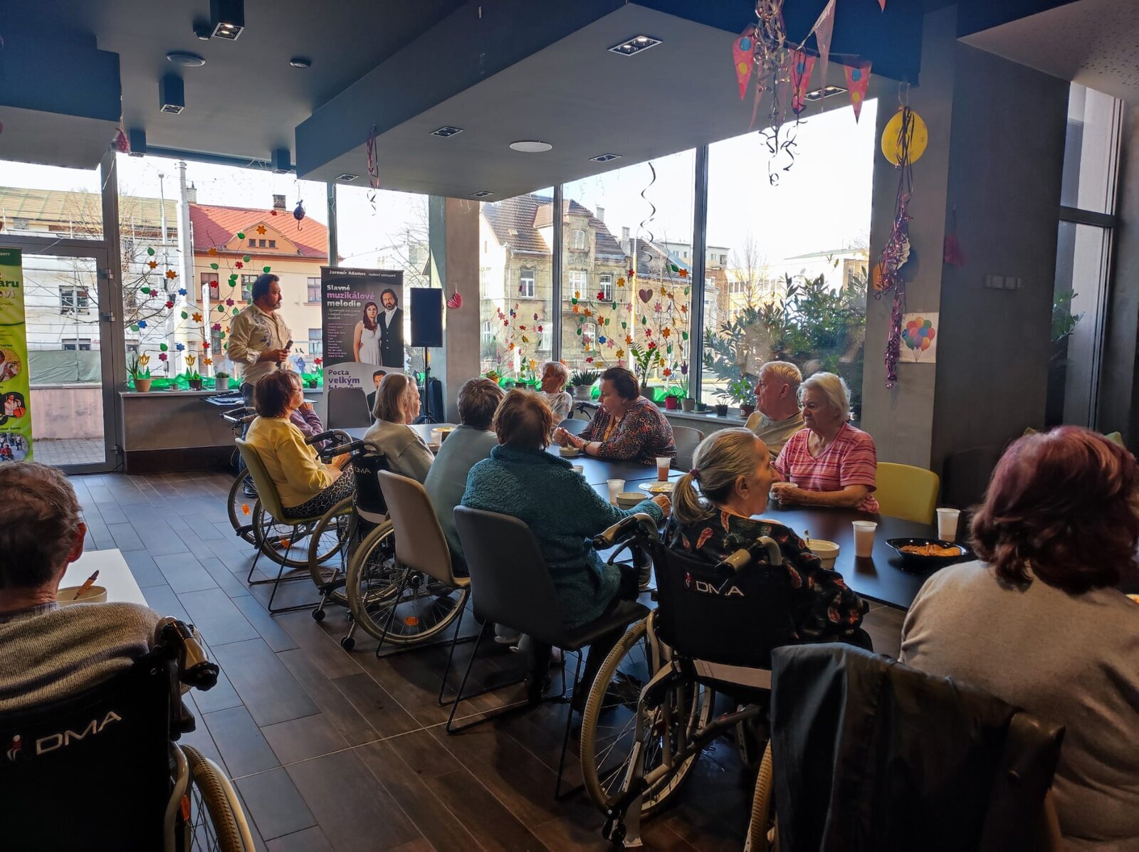 Navštívil nás úžasný pan Adamec, který nám zazpíval nejslavnější písně Waldemara Matušky. Odpoledne bylo nádherné, plné zpěvu, zábavy a nadšených tváří