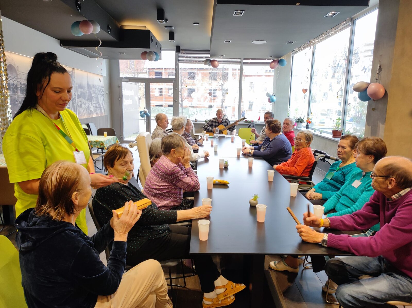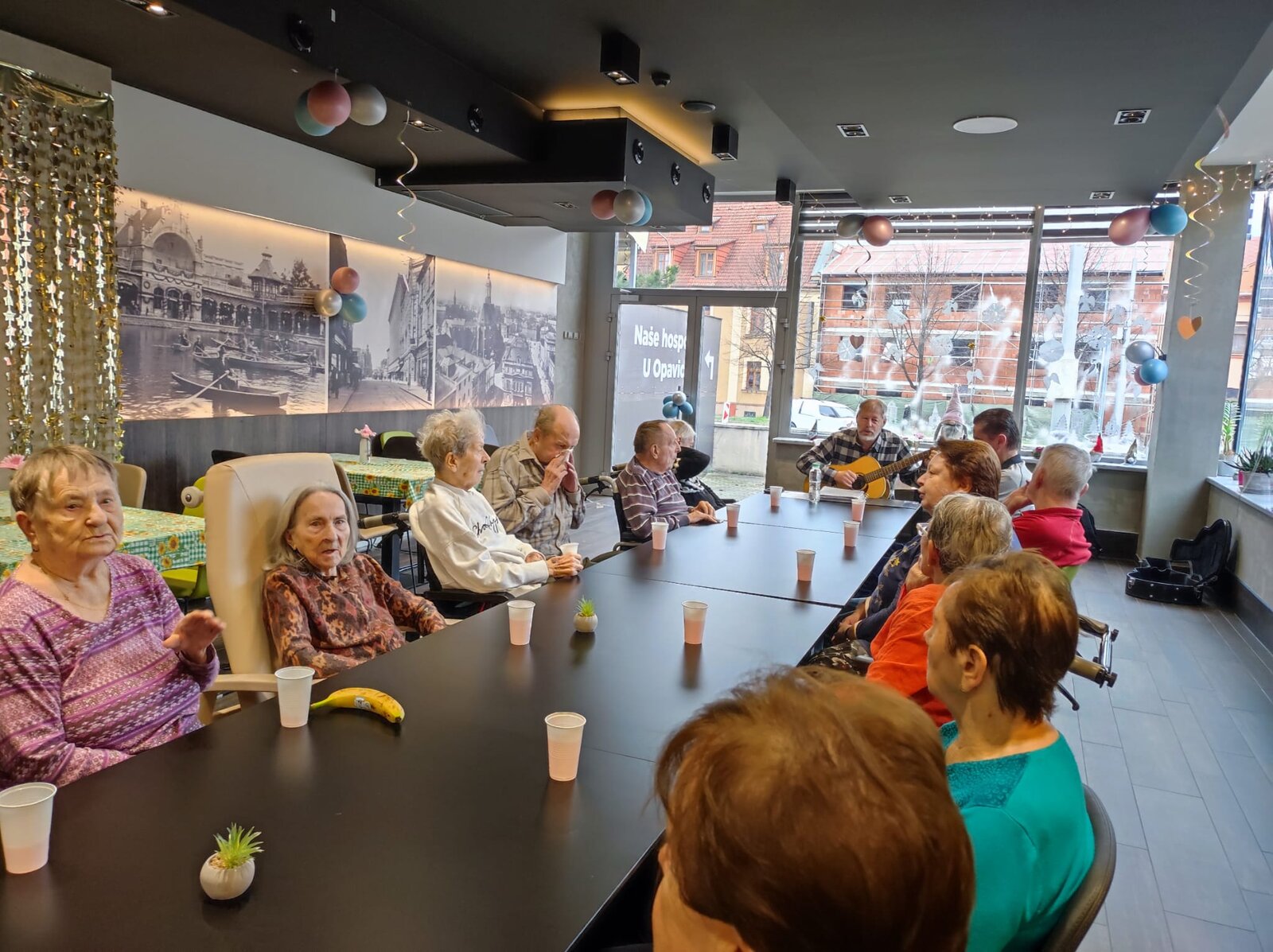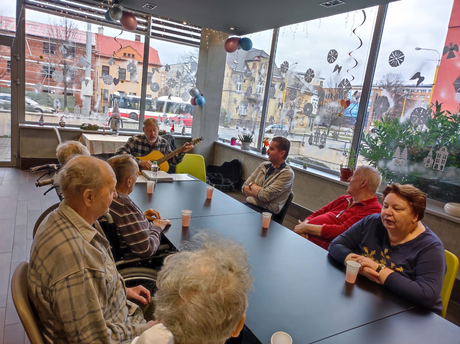 V prosinci nás navštívil dobrovolník pan Černý, který klientům zahrál na kytaru známé písničky. Klienti si zazpívali a dokonce si zkusili i doprovod na různé hudební nástroje. Z tohoto vystoupení si klienti odnesli mnoho pozitivních zážitků a již teď se těší na jeho další návštěvu.