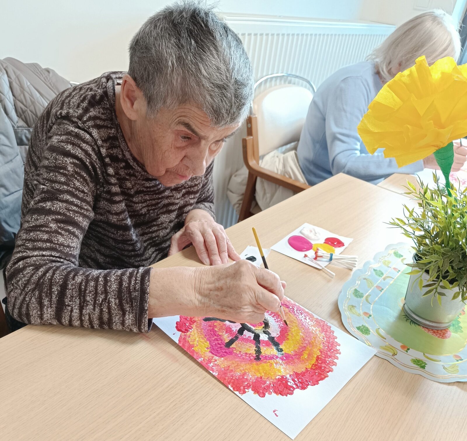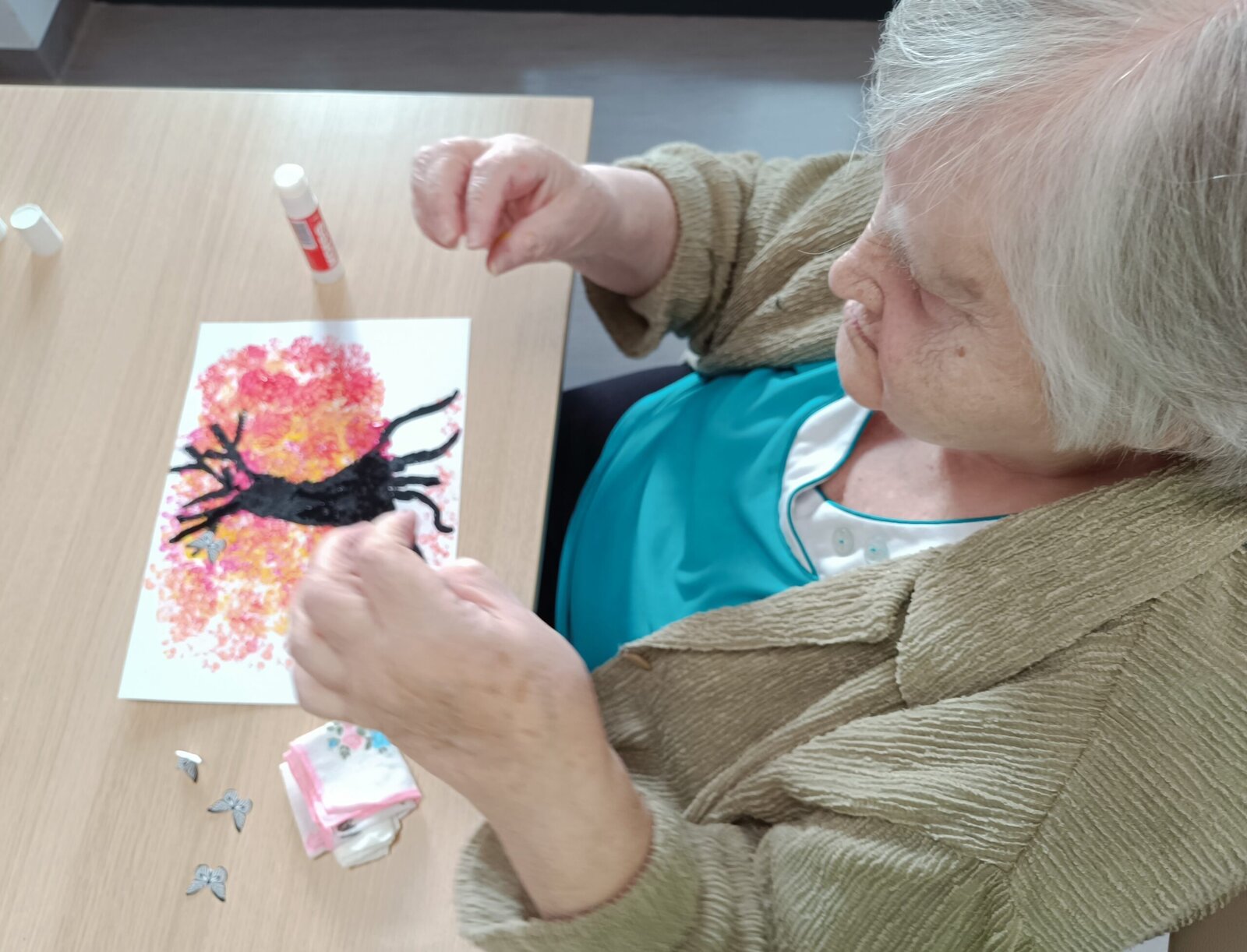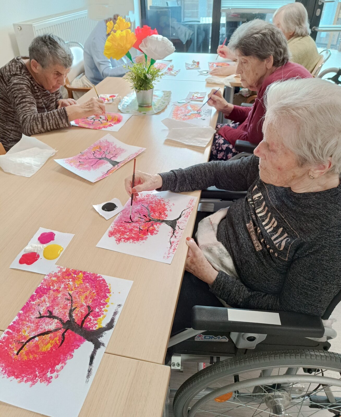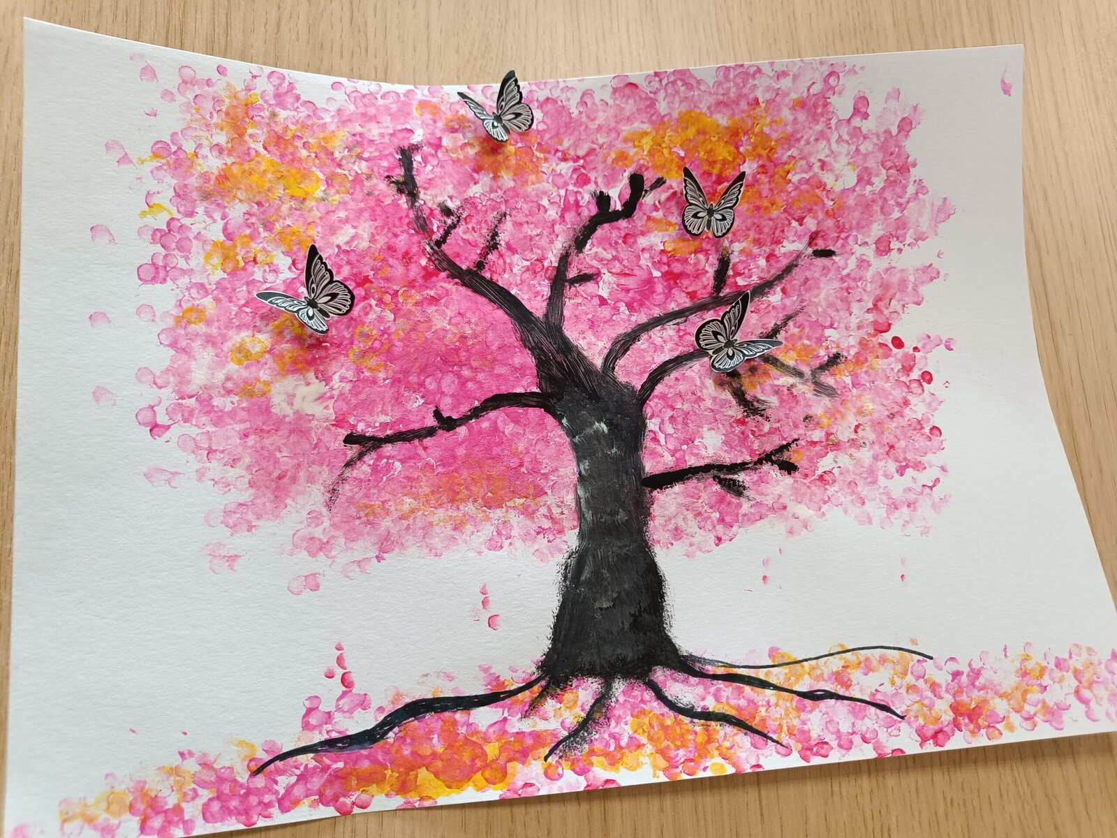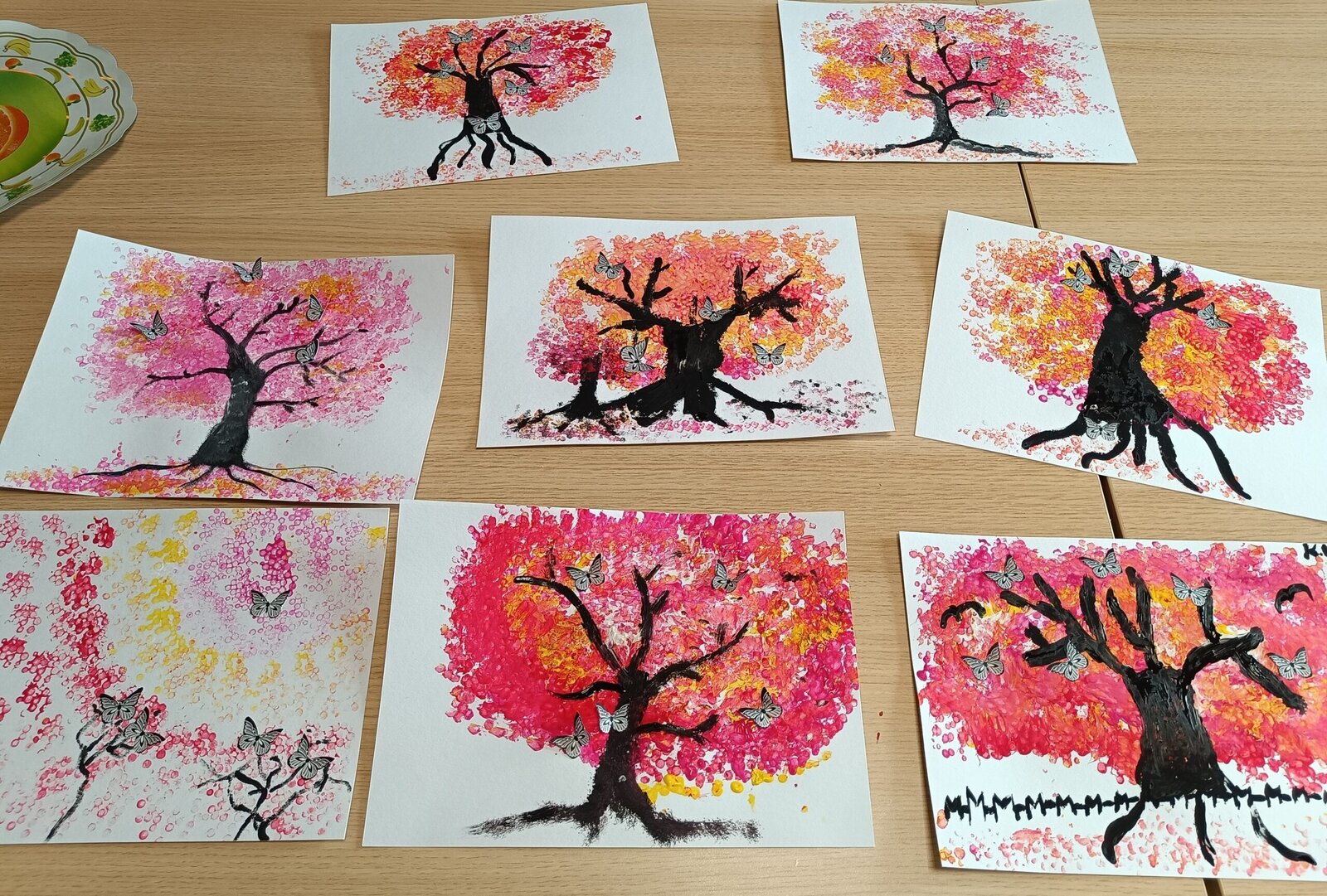 V Senevida Modřany jsme tento týden v naší výtvarné dílně malovali akrylovými barvami. Technikou ťupkování za pomocí vatových tyčinek jsme vytvořili krásné koruny stromů inspirované Sakurou – okrasná třešeň. Za pomocí štětce jsme pak domalovali každý podle své fantazie zbytek stromu a na závěr jsme nalepili vystřižené motýlky. Propojením několika barev vznikly krásné originální obrazy.