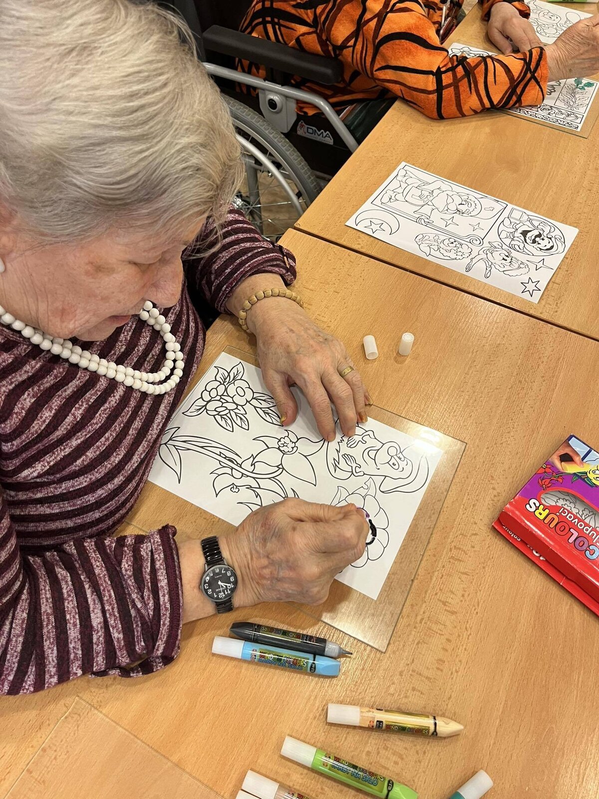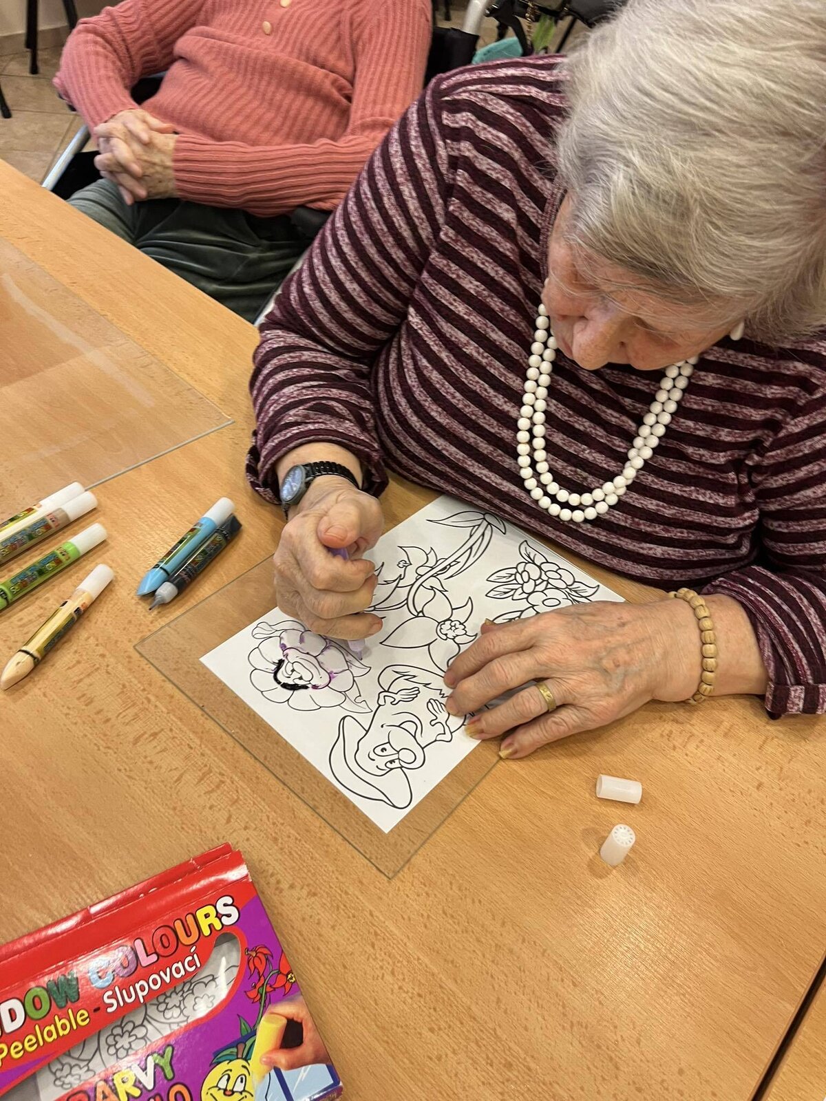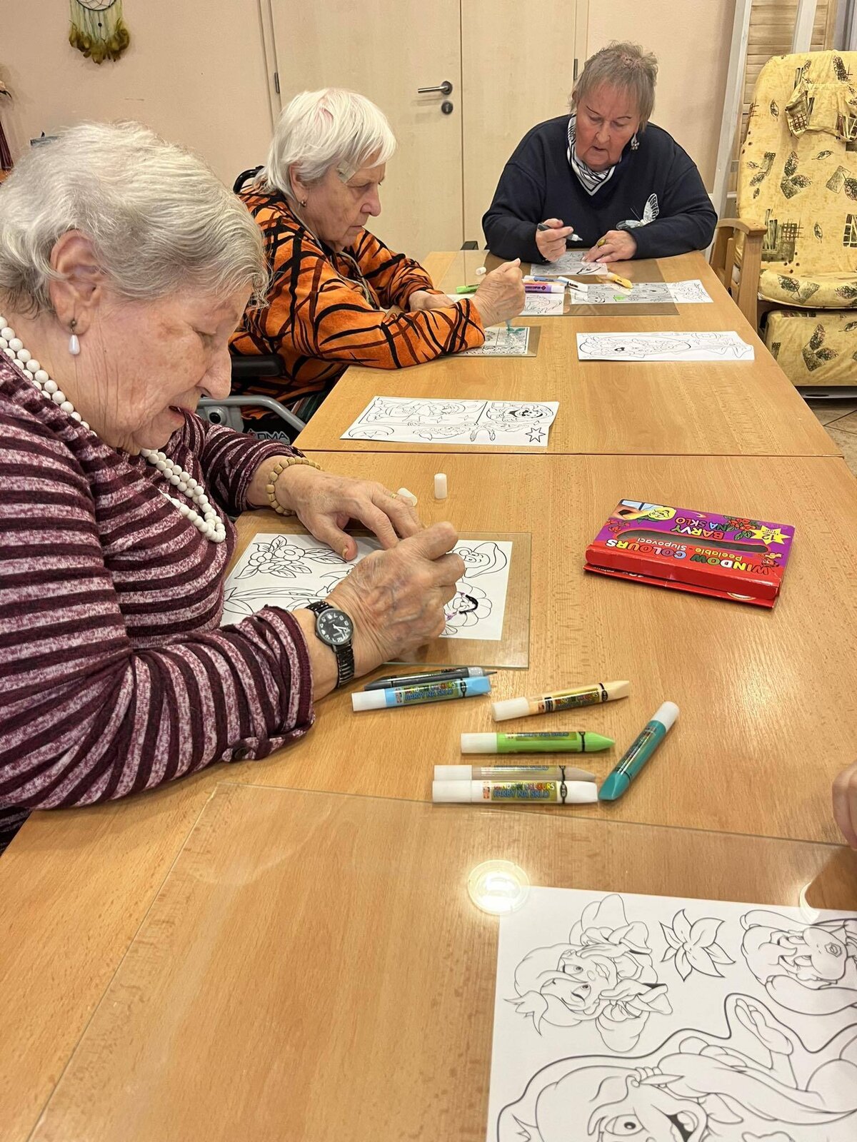 Dnešní den jsme v Senevida Jihlava strávili malbou na sklo.