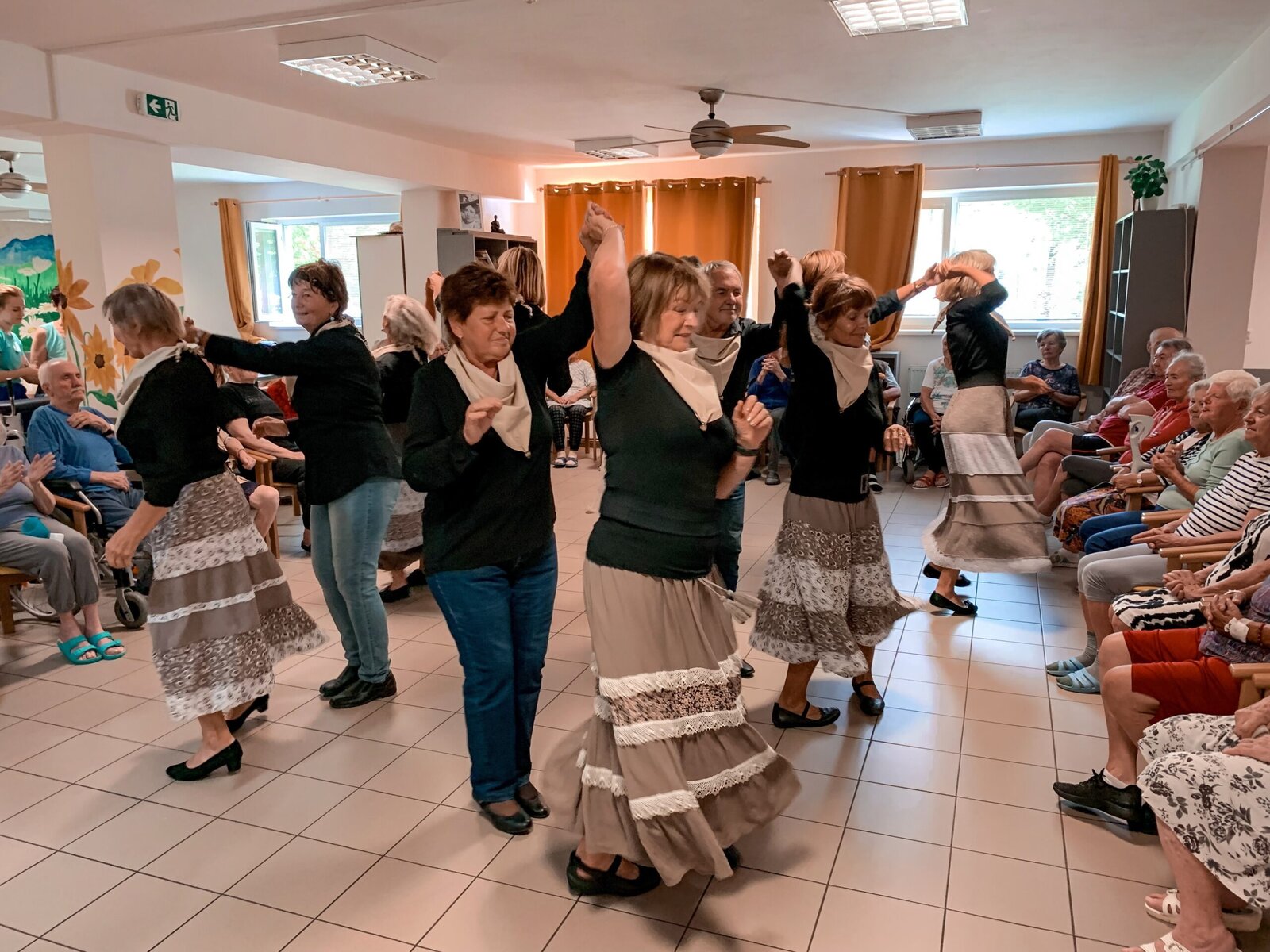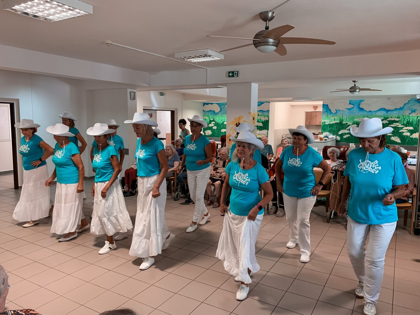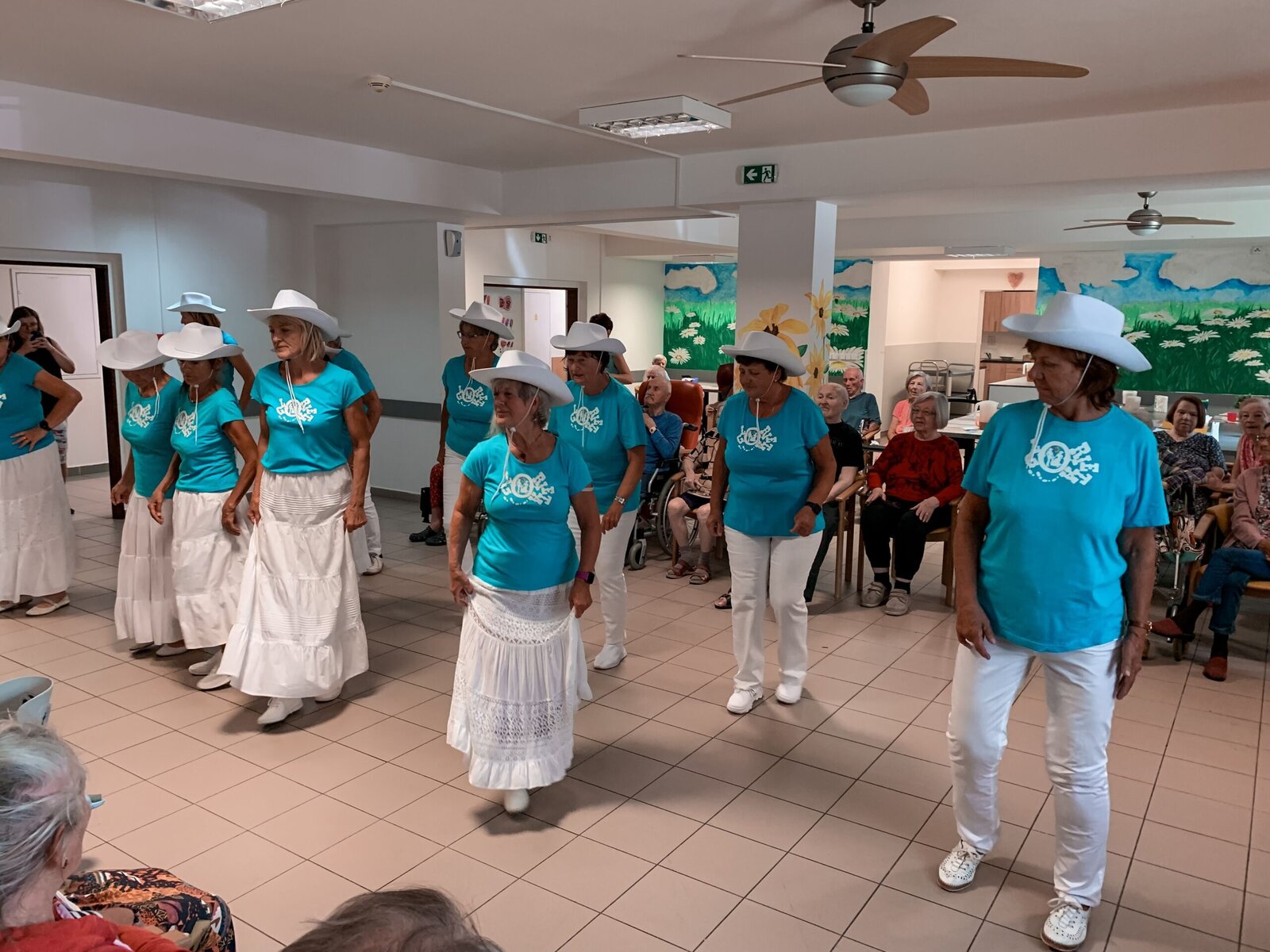 Včera jsme si zatančili v rytmu dechovky, dnes tu máme pro změnu country. A rovnou nám přišli zatančit zkušení senioři z klubu Aktiv, kteří u nás nejsou žádnými nováčky. Do našeho Domova již zavítali několikrát a my je vždy rádi vidíme. O to víc, že se nemusíme jen kochat, ale můžeme se k nim přidat v rámci taneční lekce na konci vystoupení.