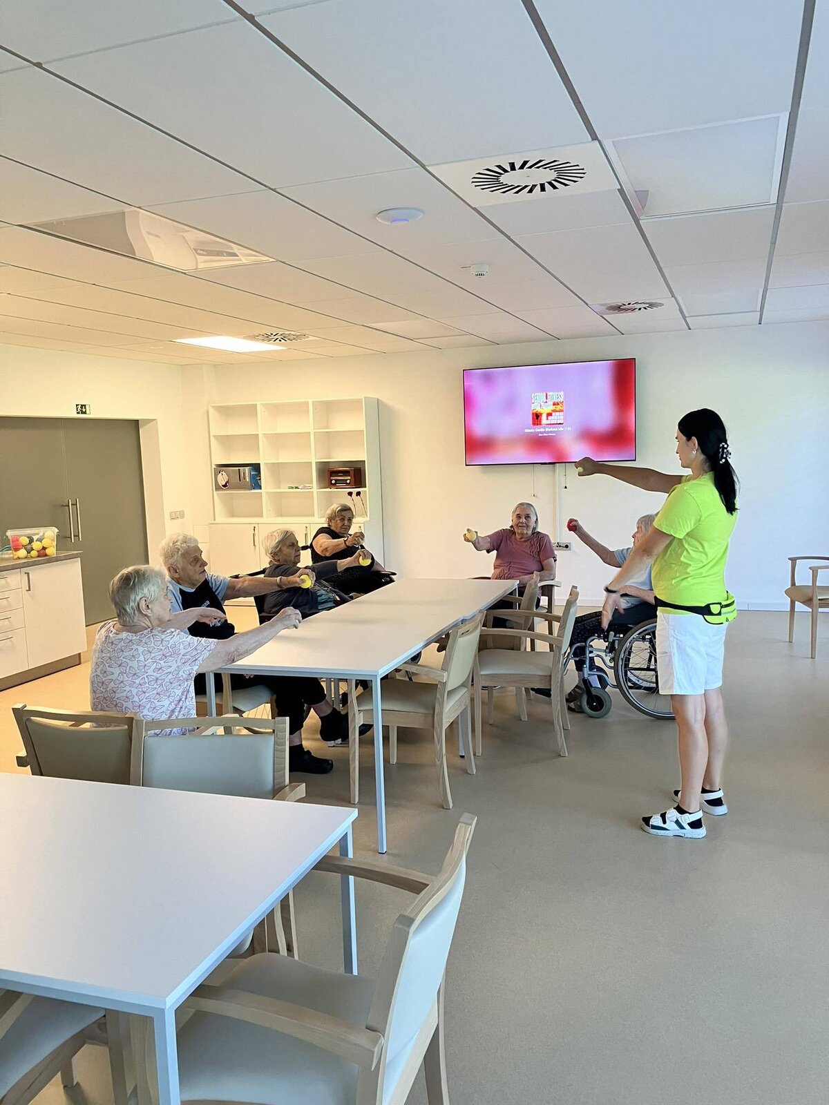 Dnes jsme se v Senevida Jihlava rozhodli procvičit naše tělo za pomoci míčků a hudby.