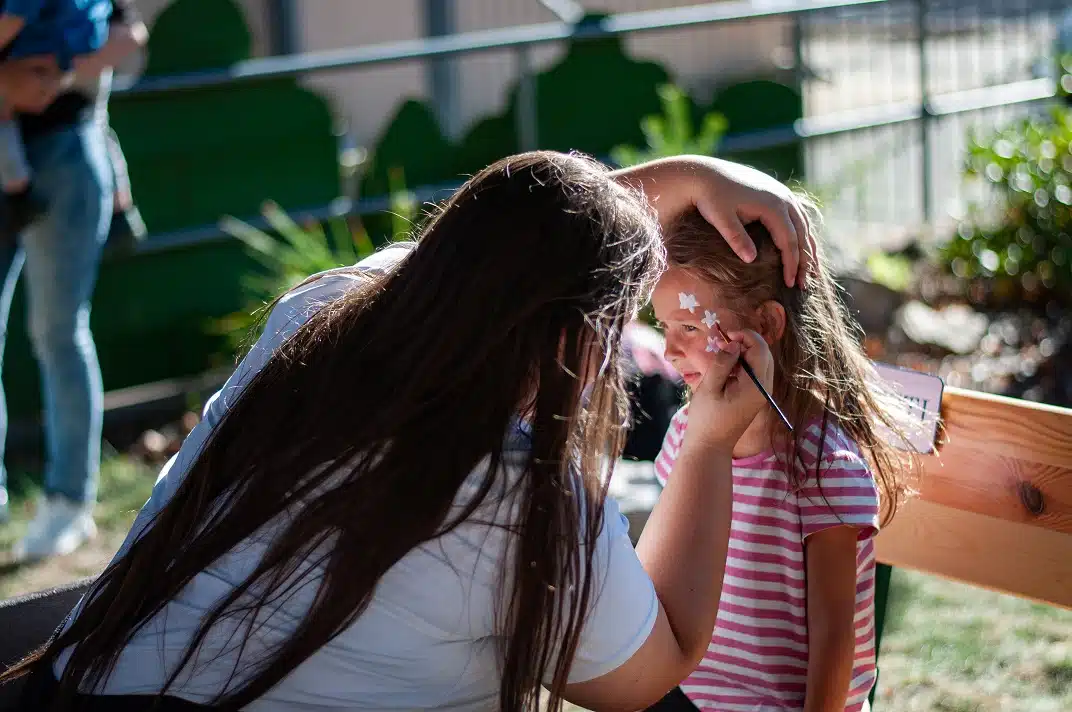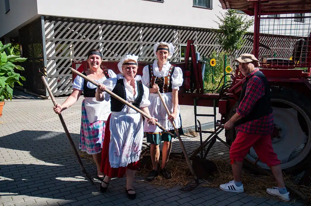 Celé odpoledne se neslo v duchu jihočeské vesnice, nechyběly vesnická dekorace, u kterých se všichni návštěvníci mohli se svými blízkými vyfotografovat. V dětském koutku se malovalo na obličej, hrál se kroket nebo si děti vyrobily klasickou točící se káču. Velkým a moc milým překvapením byl i zvířecí koutek se slepičkami, kohoutkem, králíkem a kozlíkem. Kozlík Lubošek i slepička Dáda obešli všechny klienty, aby se každý mohl potěšit jejich přítomností.