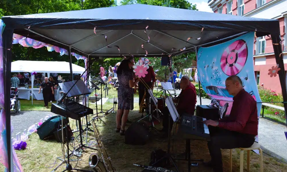V pondělí 24. června se zahrada našeho SeniorCentra Chrudim proměnila v místo plné barev, hudby a radosti. Konala se zde každoroční Zahradní slavnost, tentokrát na téma Rebelové a 70. léta, která přinesla nejen vlnu nostalgie, ale i spoustu zábavy a nezapomenutelných okamžiků.