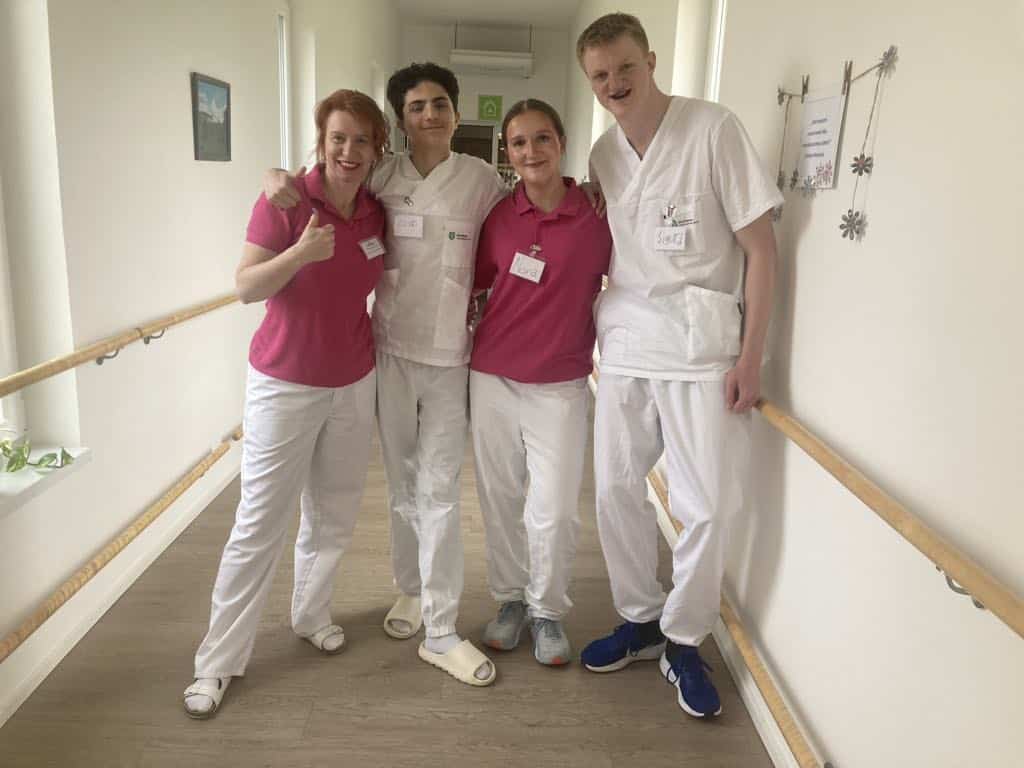 Díky velmi dobré spolupráci se Střední odbornou školou Znojmo (SOU a SOŠ SČMSD Znojmo, s.r.o. Přímětická, Znojmo) jsme i letos měli možnost v našem domově přivítat tři studenty z Norska, kteří zde byli na výměnné praxi. Slečna Nora a dva pánové Zeid a Sigurd se zapojili do skupinových i individuálních aktivit, zajistili dopomoc při stravování, doprovod při vycházkách do zahrady apod.