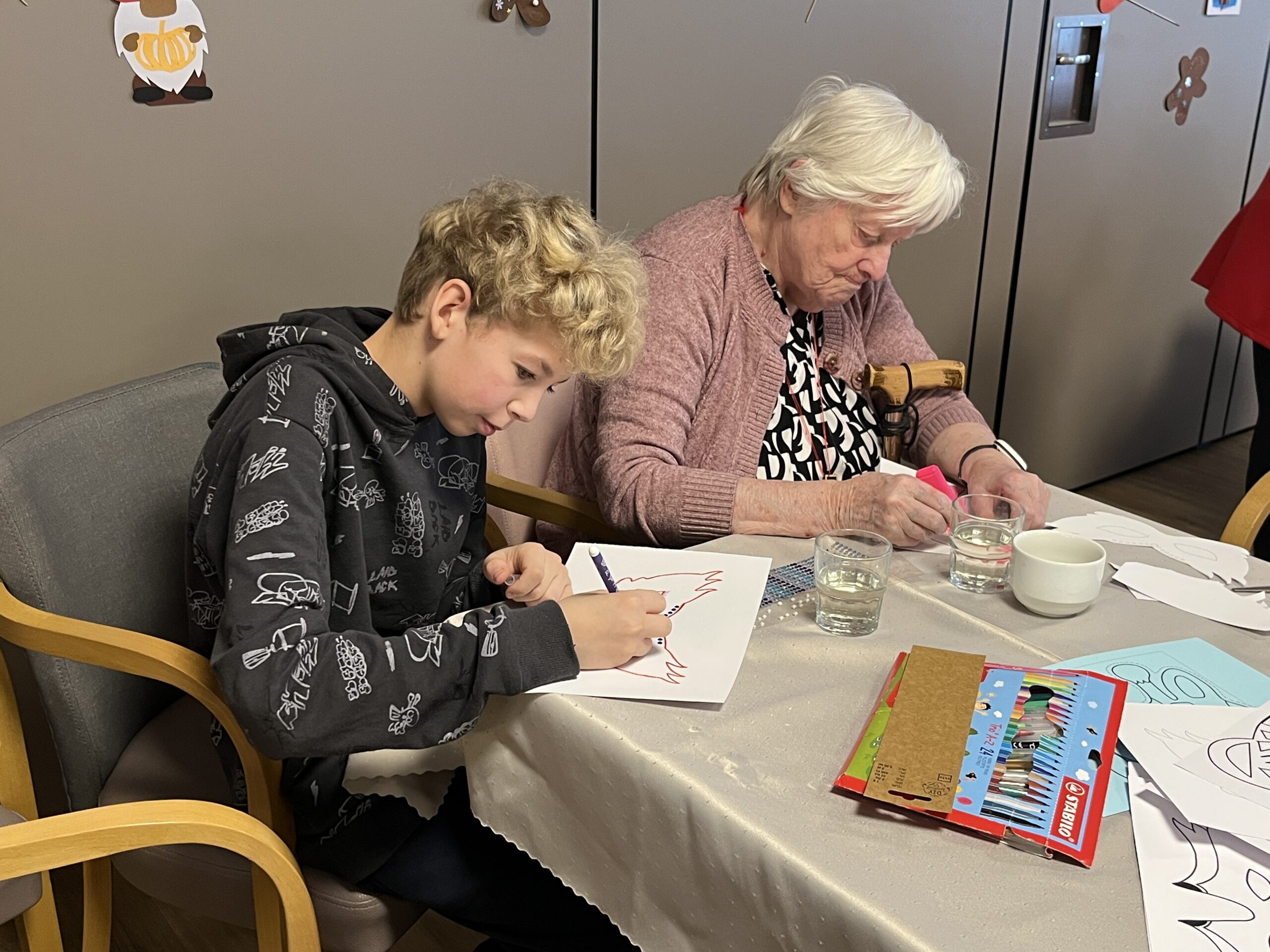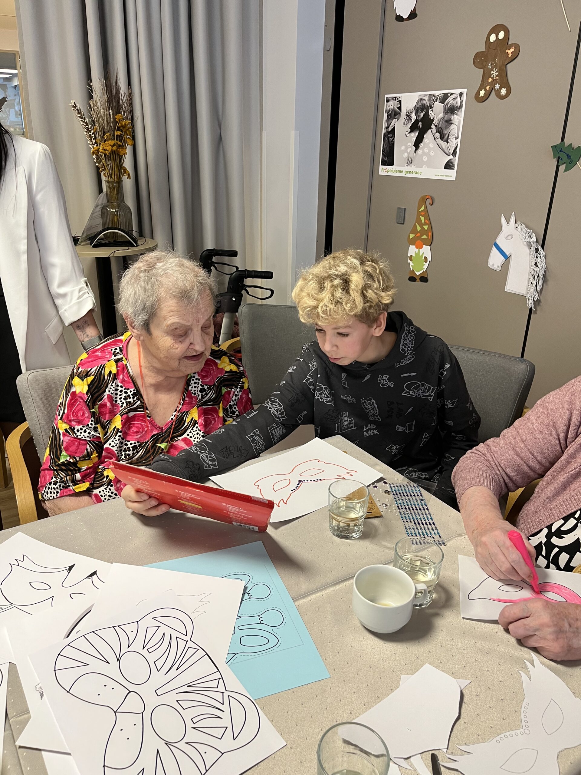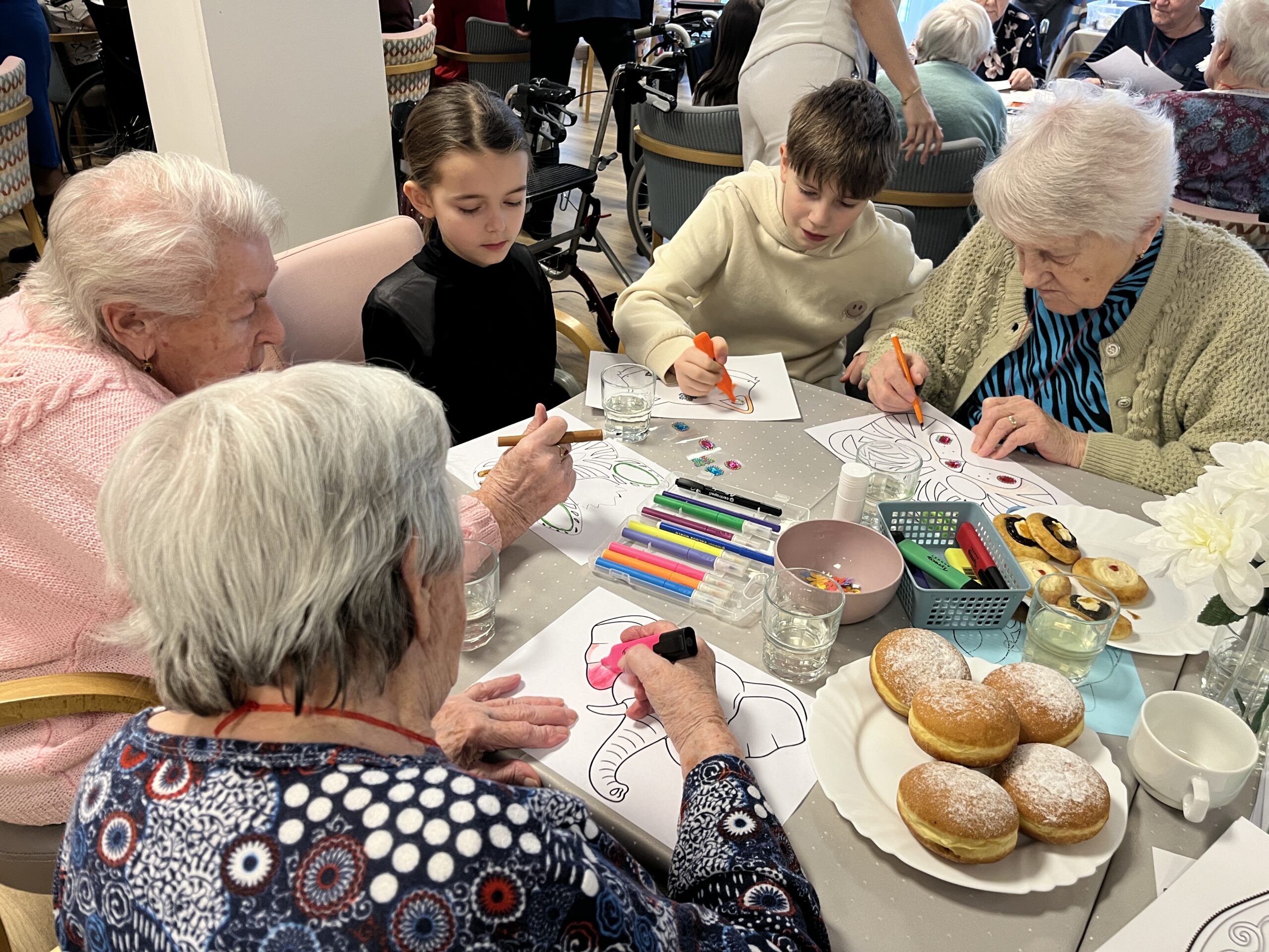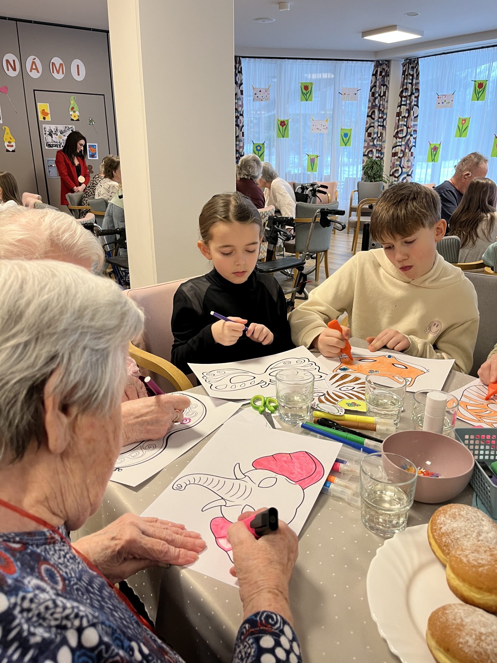 Naše zařízení již úspěšně dlouhodobě spolupracuje s Questo school Humpolec, a proto jsme se společně rozhodli zapojit se do programu „Povídej“. Společně se snažíme o propojování obou generací a sdílení těchto dvou světů. Děti a senioři se v programu „Povídej“ věnují různorodému tvoření, povídání, zpívání, čtení a dalším společným aktivitám. Minimálně jednou v měsíci děti navštěvují naše klienty a vzájemně tak sdílí svou radost. Pro naše klienty mezigenerační setkávání představuje sdílení osobních příběhů, obohacení všedních dnů a také zpestření ve formě navštěvování dětí přímo v jejich školském prostředí. Na společné setkání se naši klienti vždy velmi těší a aktivity s dětmi mají pokaždé úspěch a hojnou účast. Děti nezapomínají ani na naše klienty, kteří se společných aktivit již zúčastnit nemohou, a tak je navštěvují individuálně na pokojích, kde jim předčítají či si společně povídají.