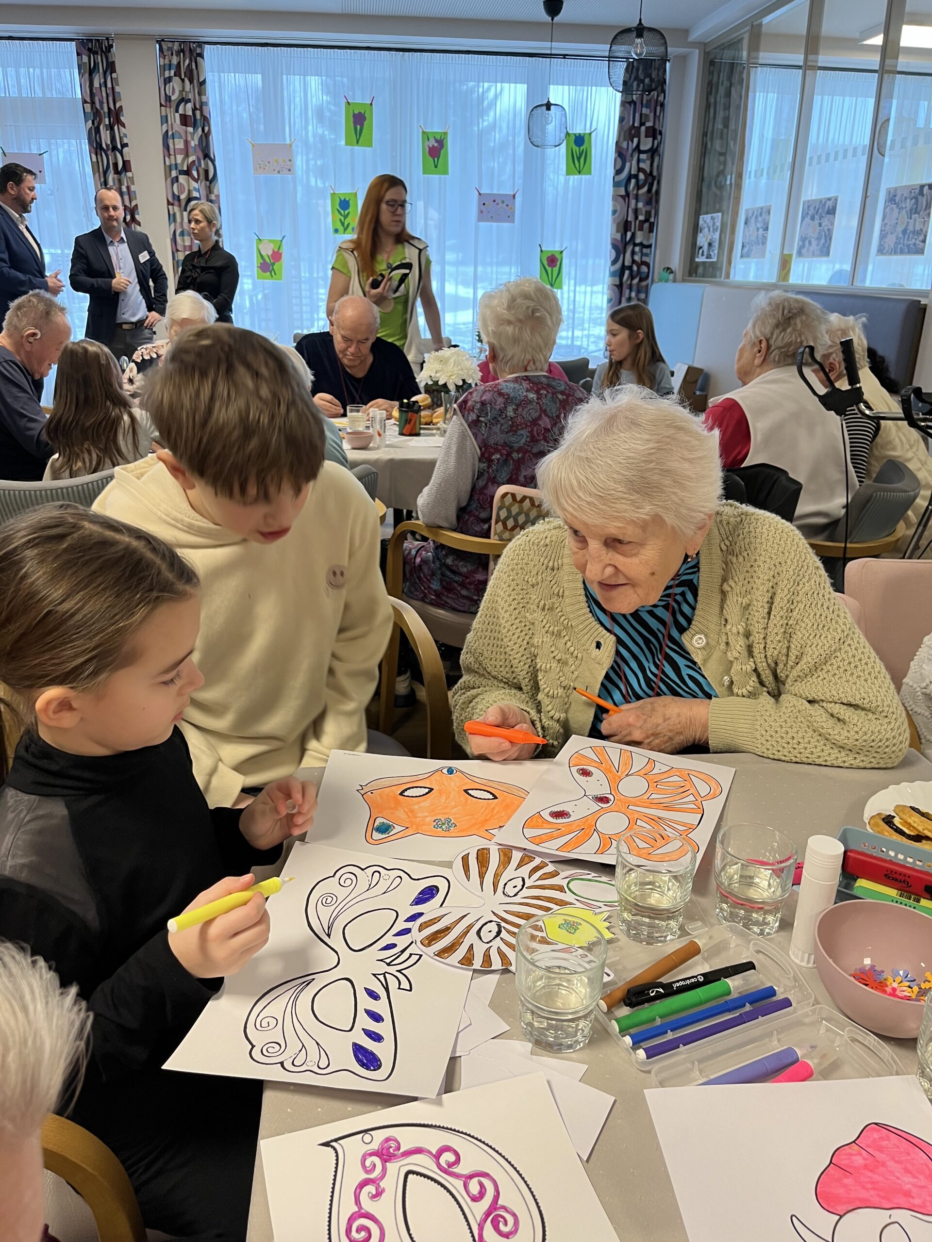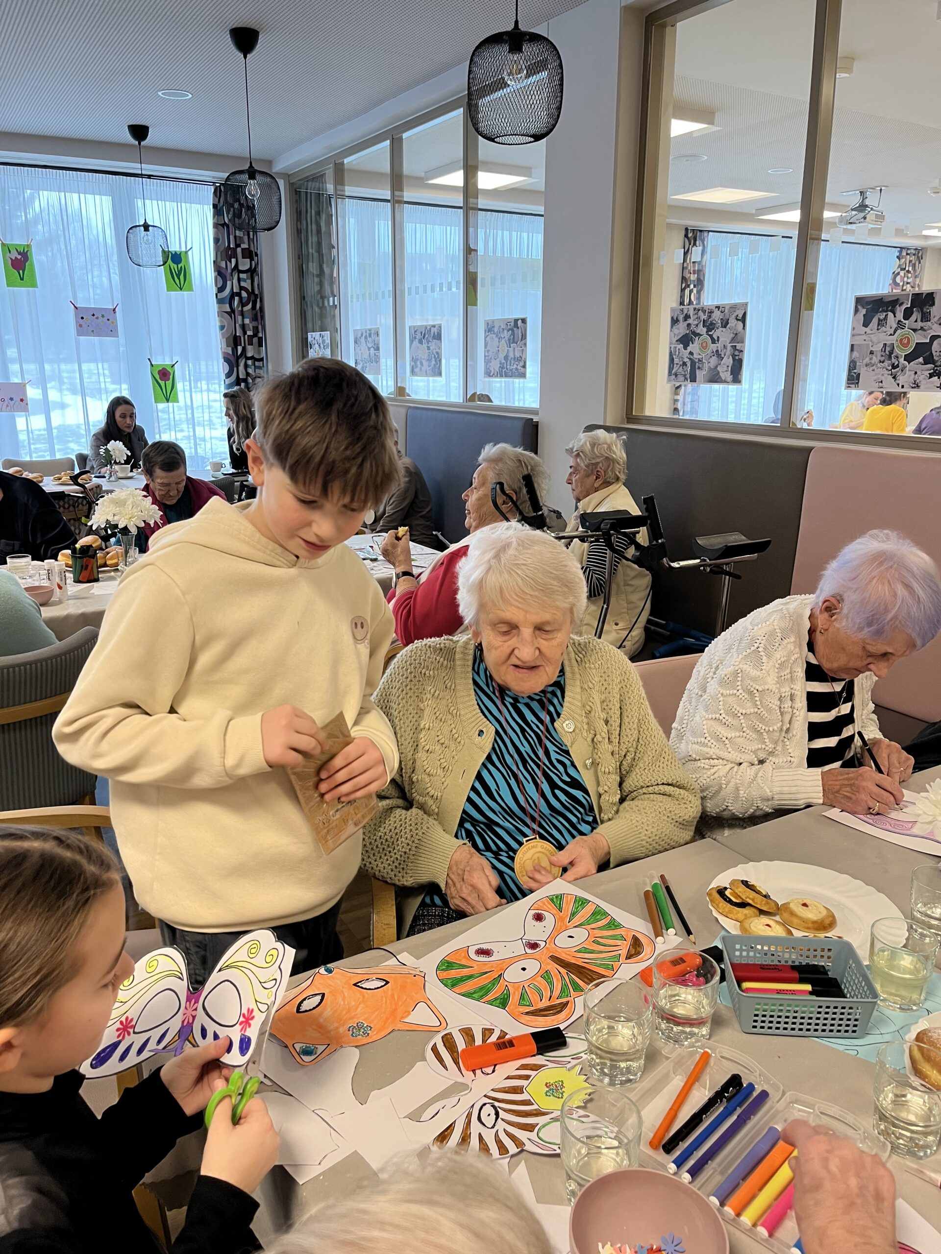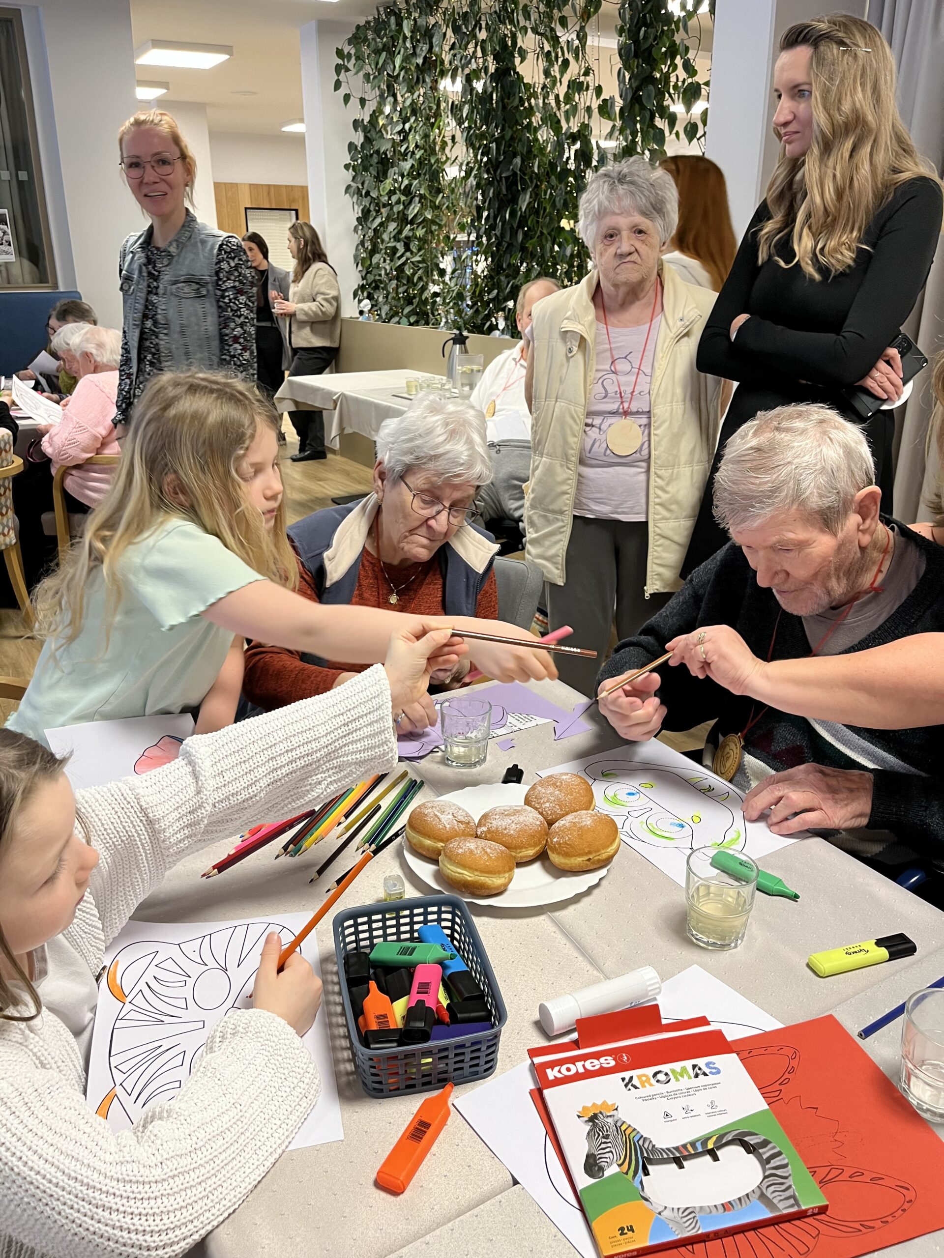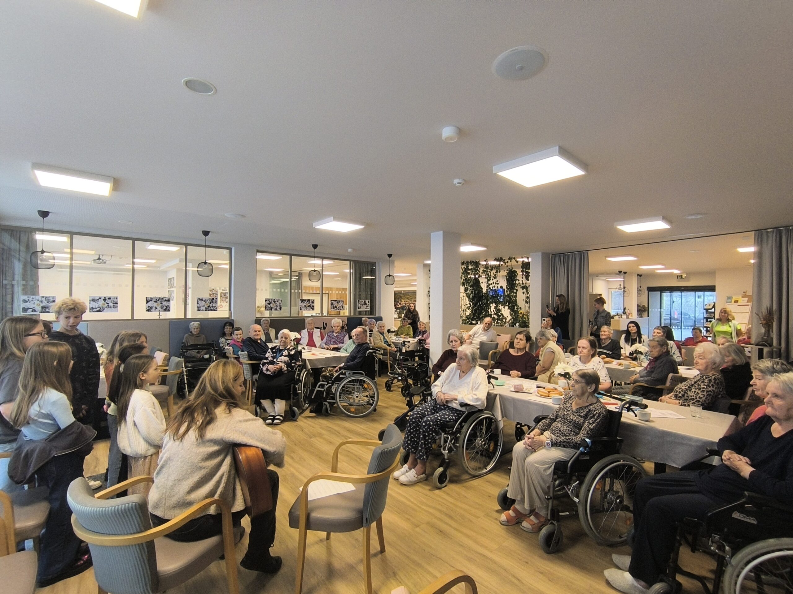 Naše zařízení již úspěšně dlouhodobě spolupracuje s Questo school Humpolec, a proto jsme se společně rozhodli zapojit se do programu „Povídej“. Společně se snažíme o propojování obou generací a sdílení těchto dvou světů. Děti a senioři se v programu „Povídej“ věnují různorodému tvoření, povídání, zpívání, čtení a dalším společným aktivitám. Minimálně jednou v měsíci děti navštěvují naše klienty a vzájemně tak sdílí svou radost. Pro naše klienty mezigenerační setkávání představuje sdílení osobních příběhů, obohacení všedních dnů a také zpestření ve formě navštěvování dětí přímo v jejich školském prostředí. Na společné setkání se naši klienti vždy velmi těší a aktivity s dětmi mají pokaždé úspěch a hojnou účast. Děti nezapomínají ani na naše klienty, kteří se společných aktivit již zúčastnit nemohou, a tak je navštěvují individuálně na pokojích, kde jim předčítají či si společně povídají.