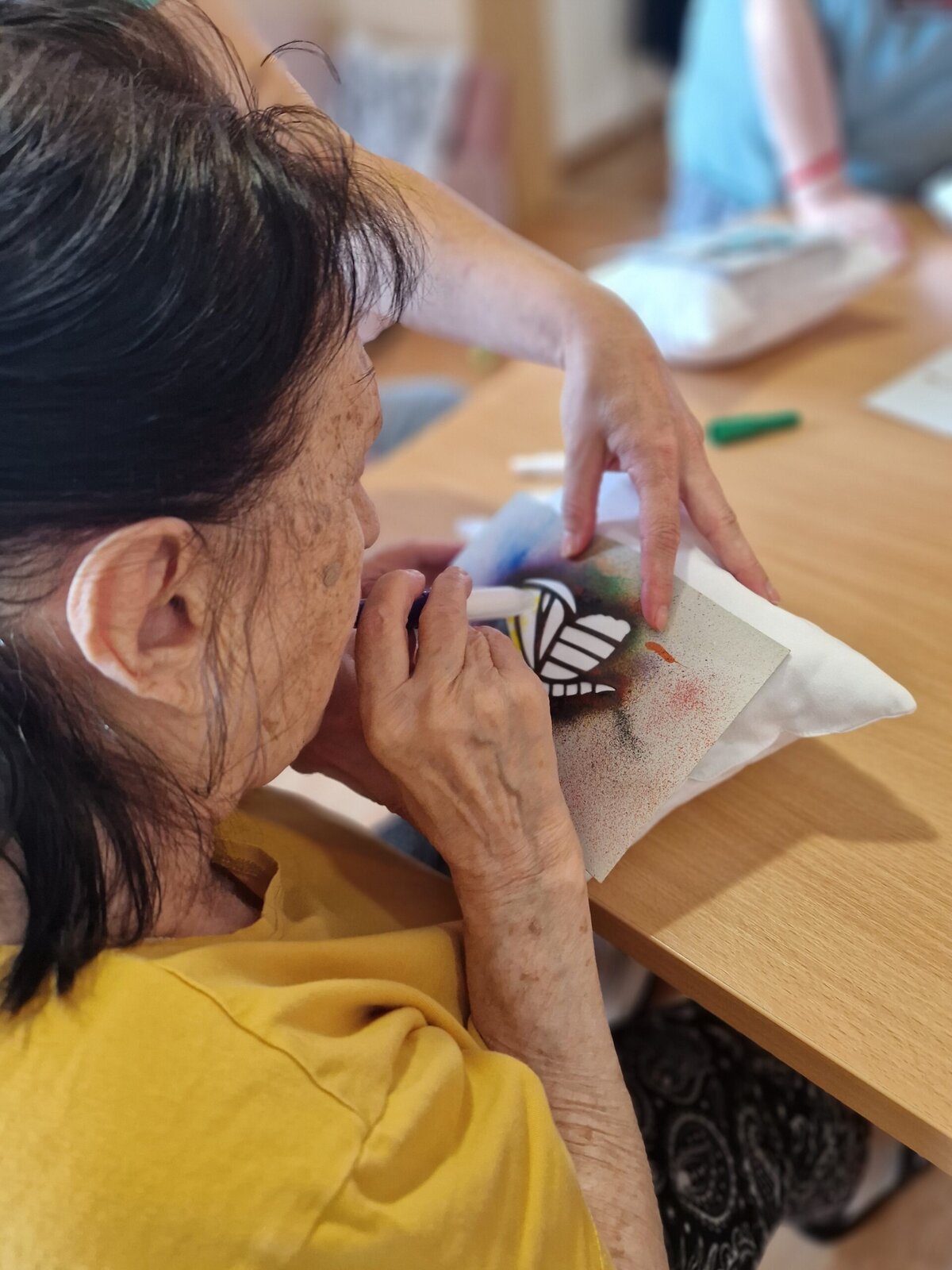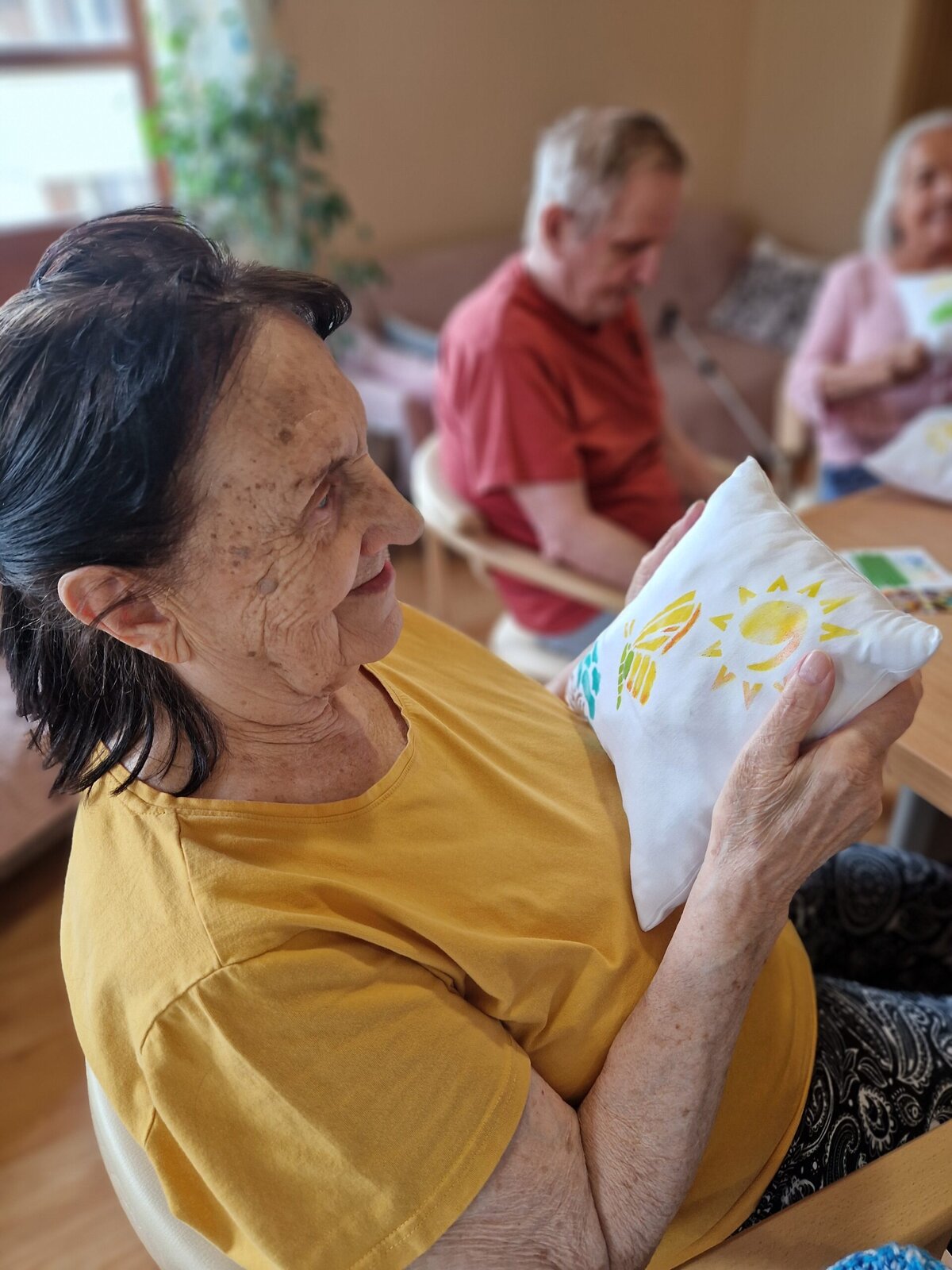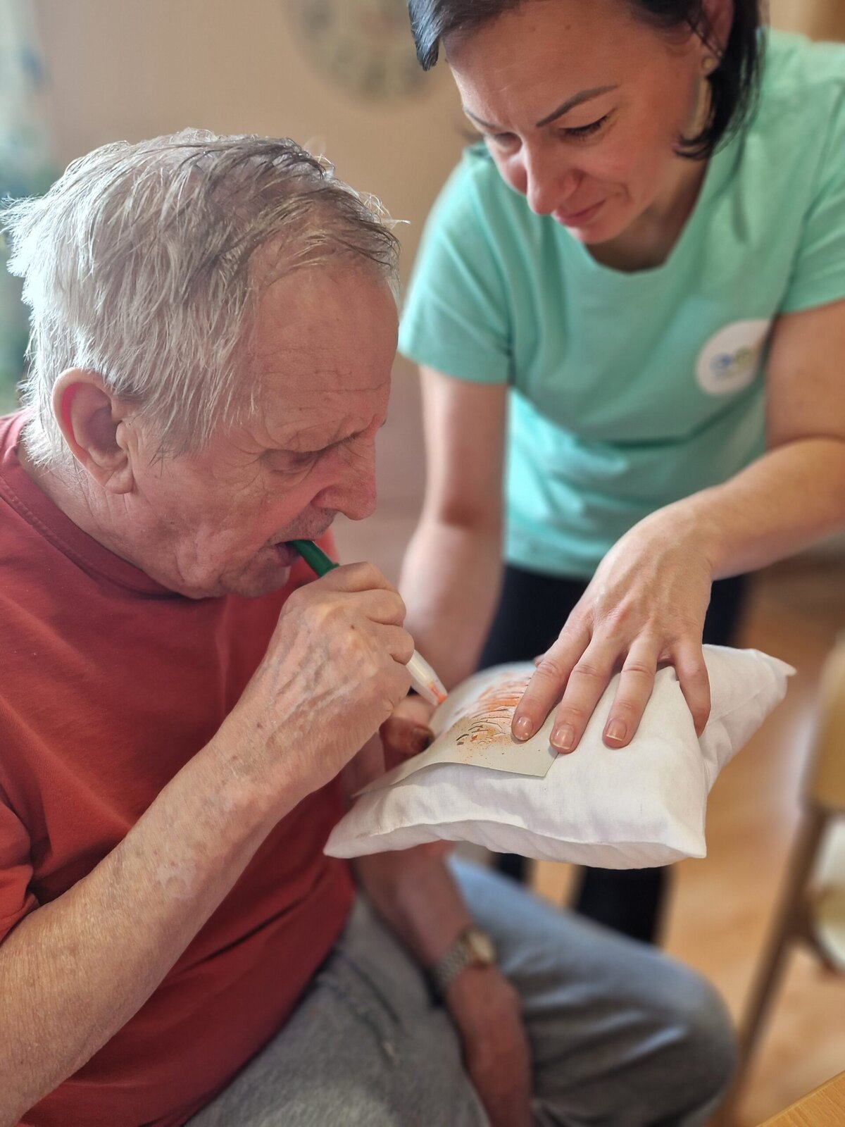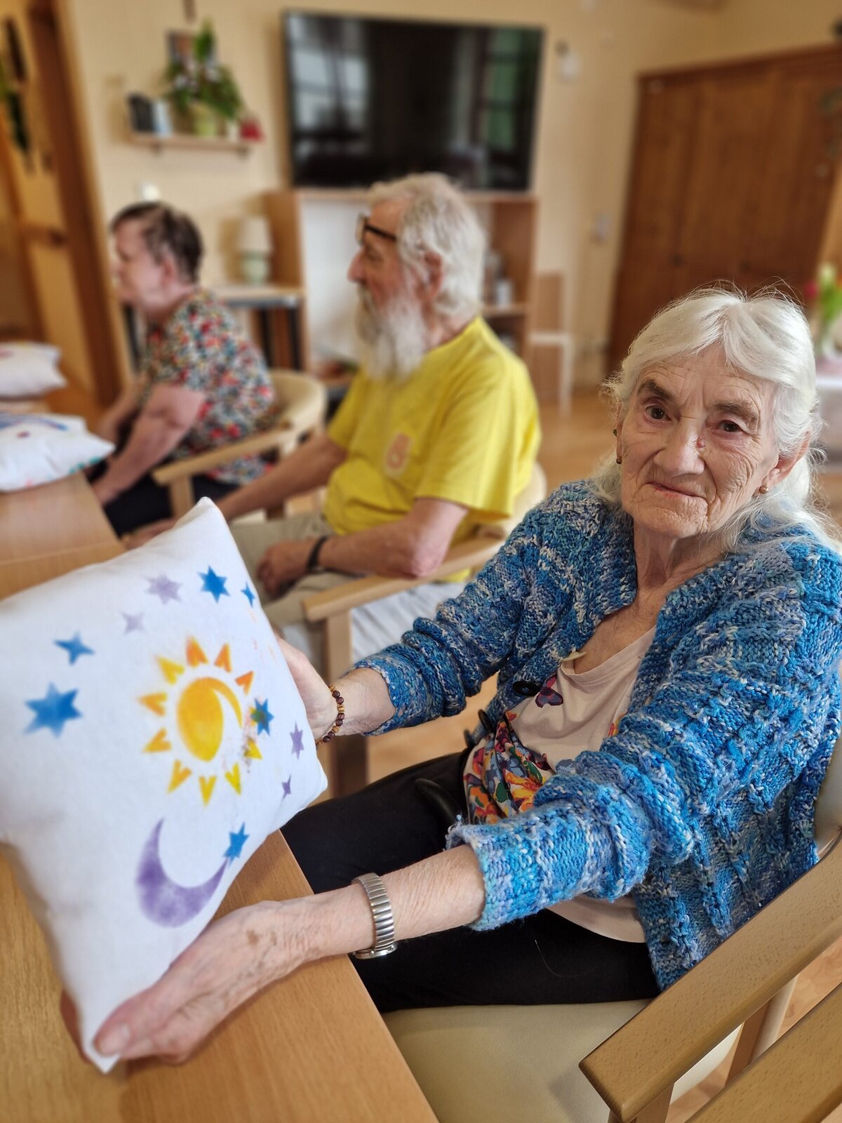 Dnes dopoledne se klienti Senevida Frýdek-Místek pustili s Odpaďáčkem do netradičního tvoření – a výsledek stál za to! 😊 S pomocí šablon a barevných foukacích fixek si originálně ozdobili své polštářky.