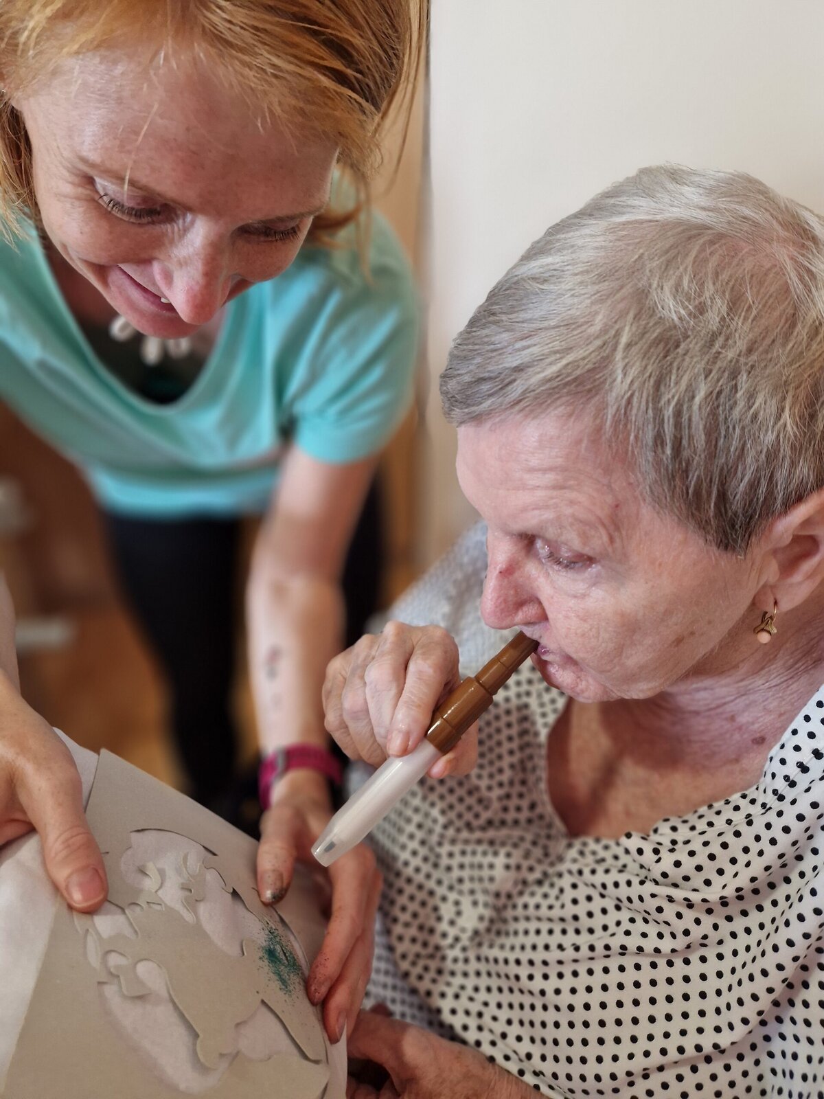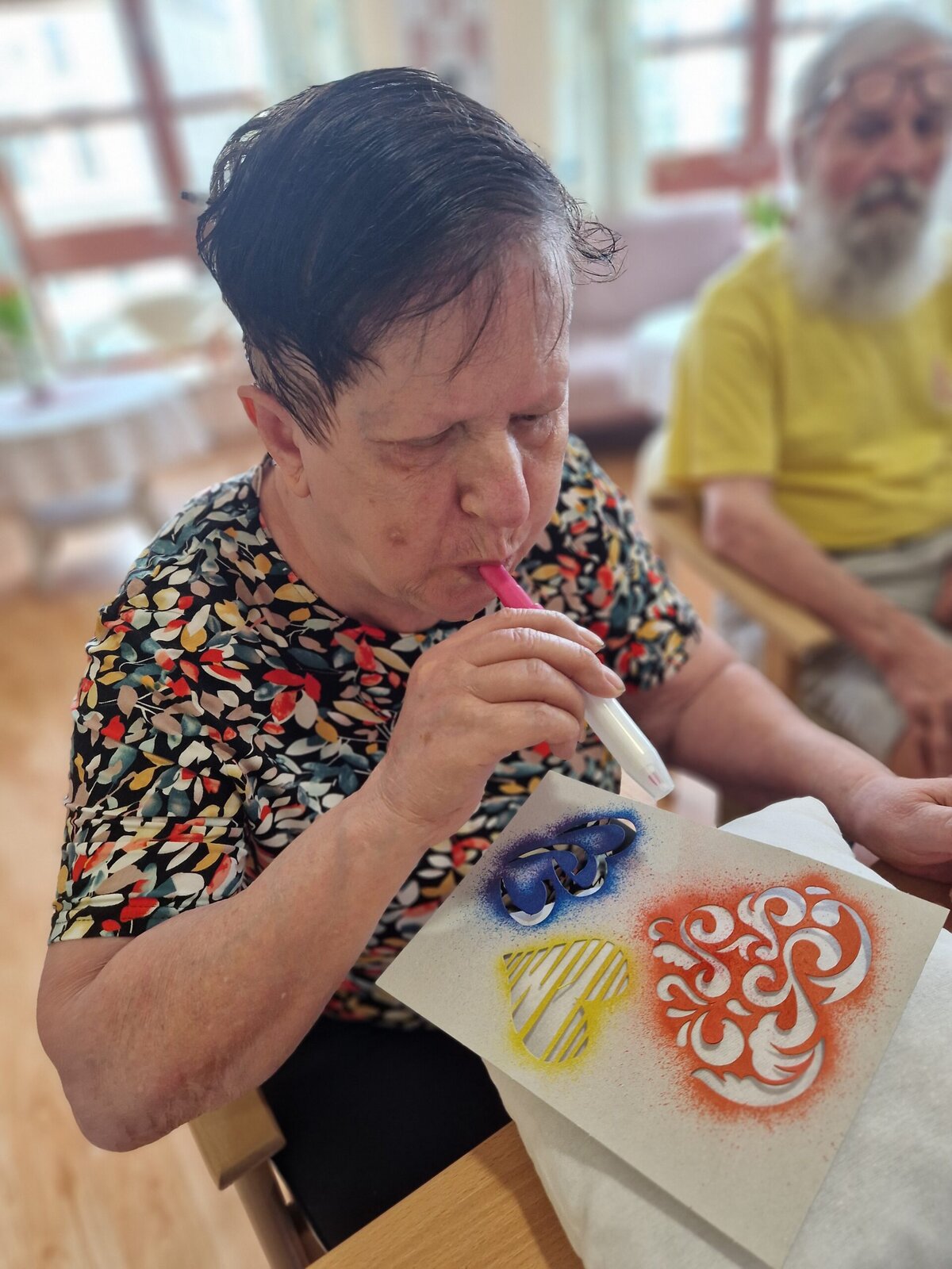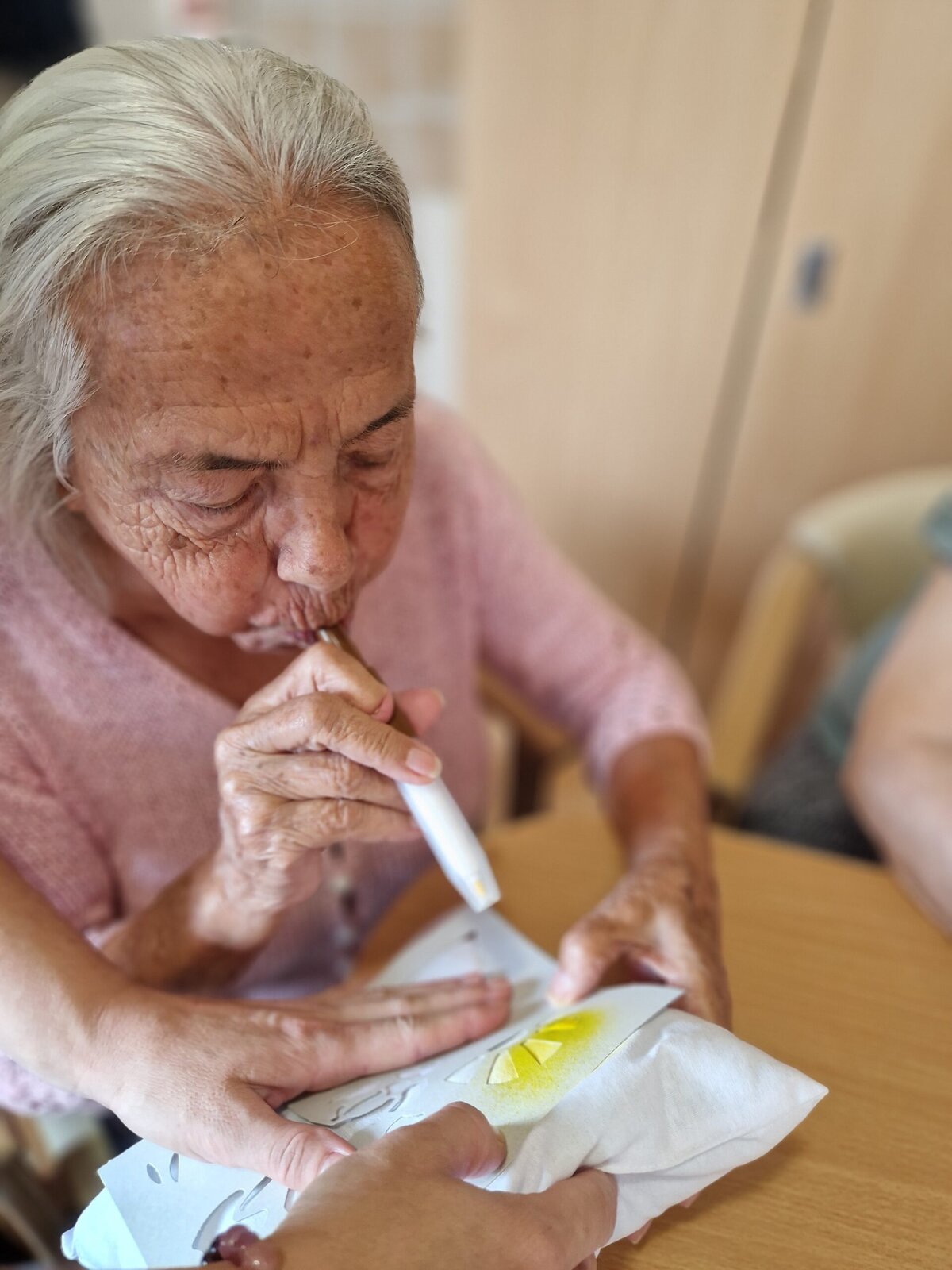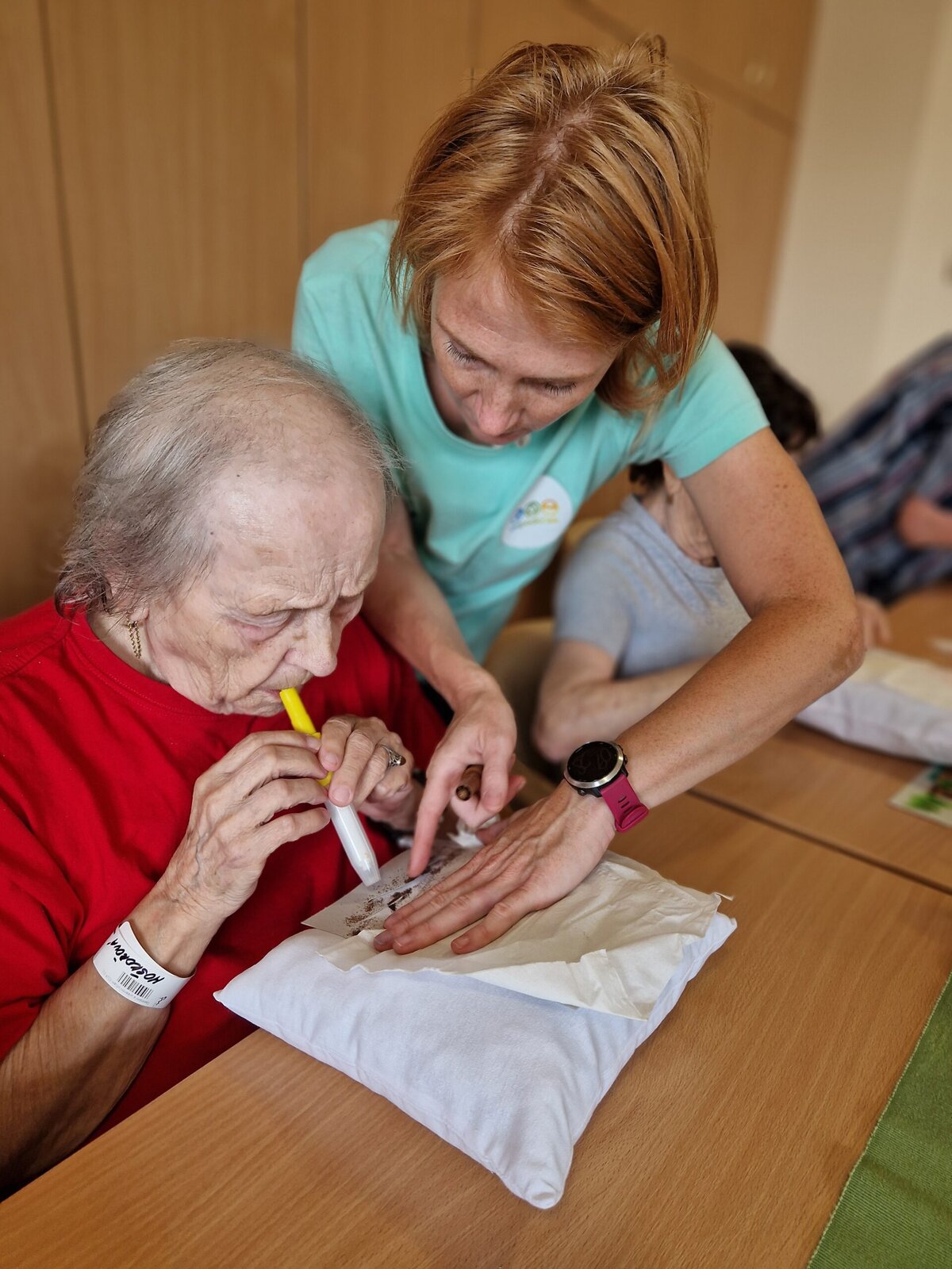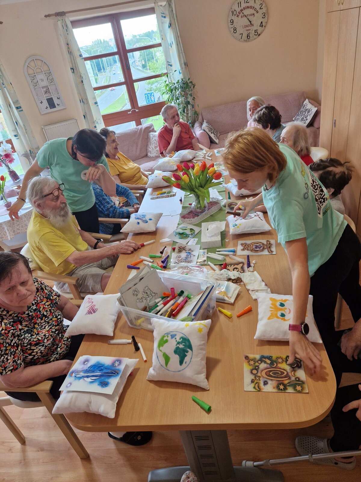 Dnes dopoledne se klienti Senevida Frýdek-Místek pustili s Odpaďáčkem do netradičního tvoření – a výsledek stál za to! 😊 S pomocí šablon a barevných foukacích fixek si originálně ozdobili své polštářky.