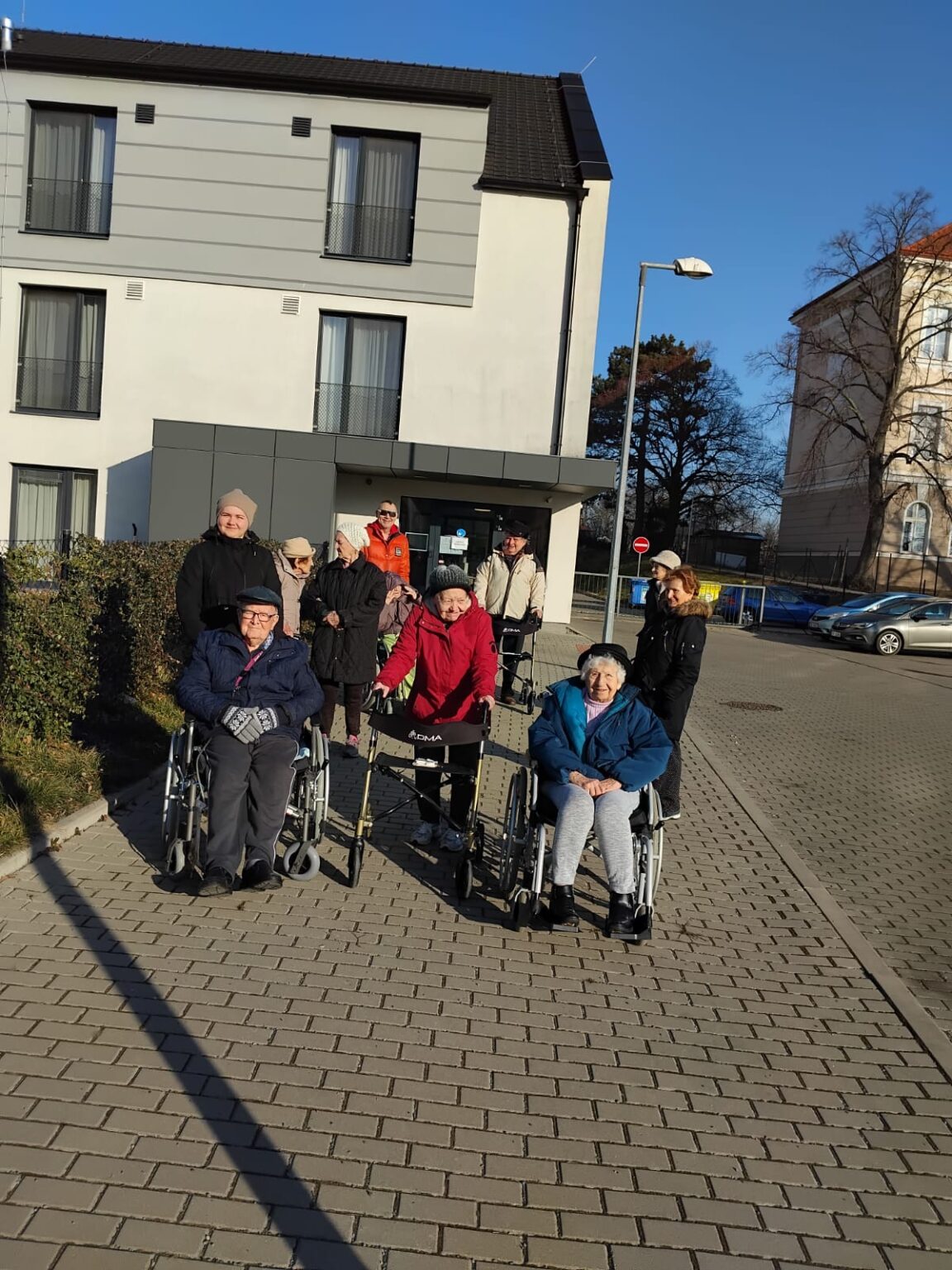 I přes mrazivé počasí nás lákaly jasné sluneční paprsky, a tak jsme se rozhodli vydat do okolí našeho domova. Společně jsme se prošli po návsi Slivence, kde nás okouzlil pohled na zamrzlý rybníček, ve kterém se odrážely zlaté paprsky slunce. Procházka se setkala s velkým ohlasem a všichni klienti si ji velmi užili.