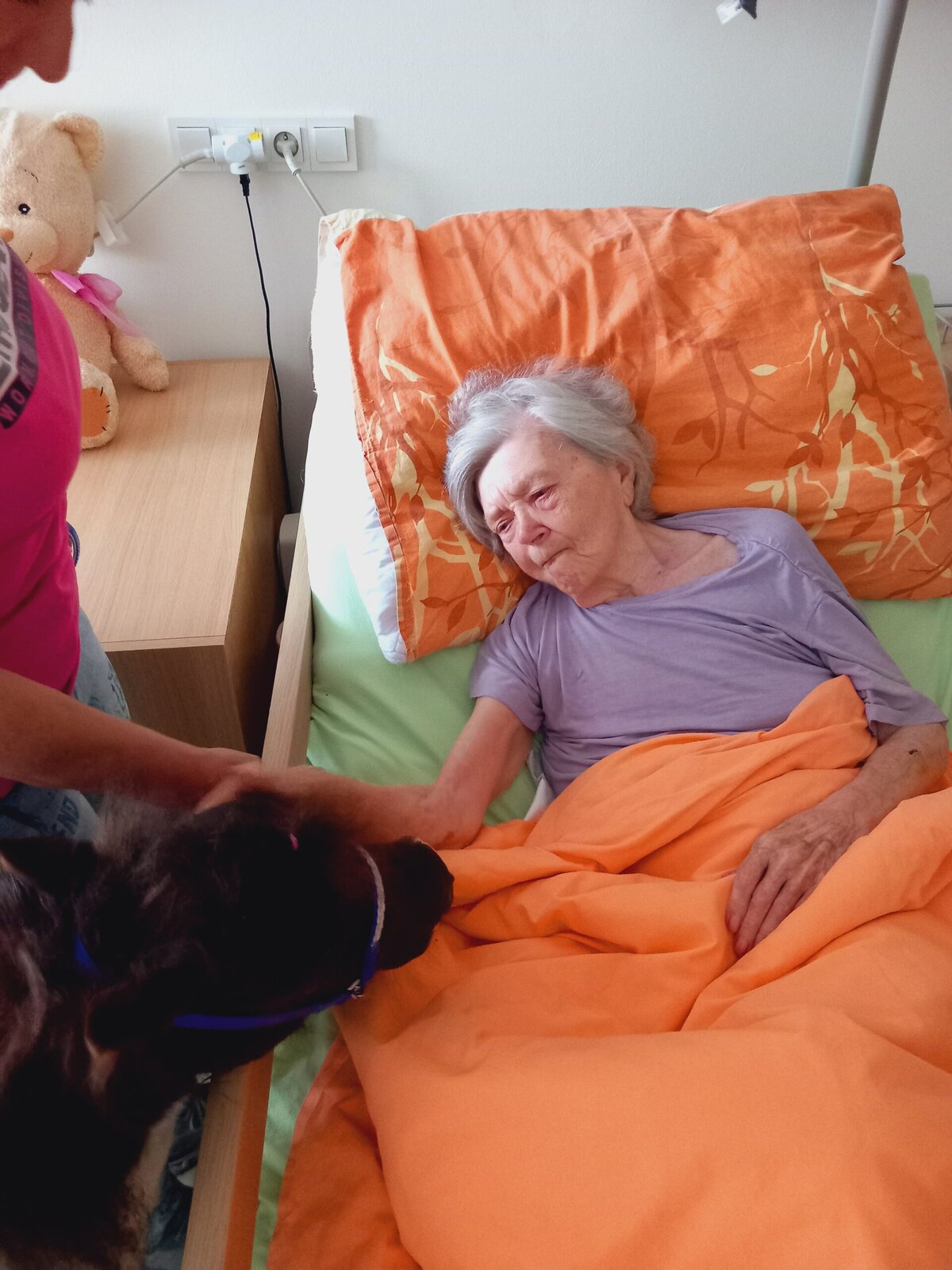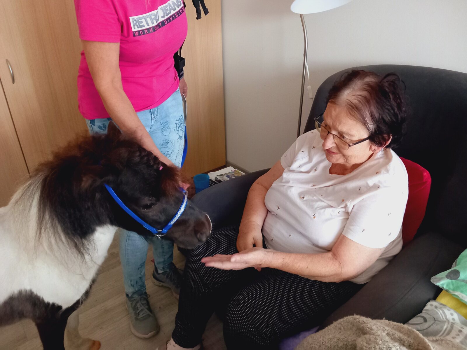 Jeho přítomnost vykouzlila úsměv na tvářích našich klientů i personálu. Společně jsme si užili krásné chvíle plné radosti, doteků a smíchu. Zvířecí terapie má u nás své pevné místo a jsme rádi, že se k nám Žolík pravidelně vrací.
