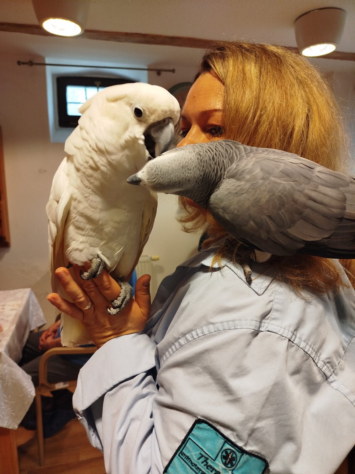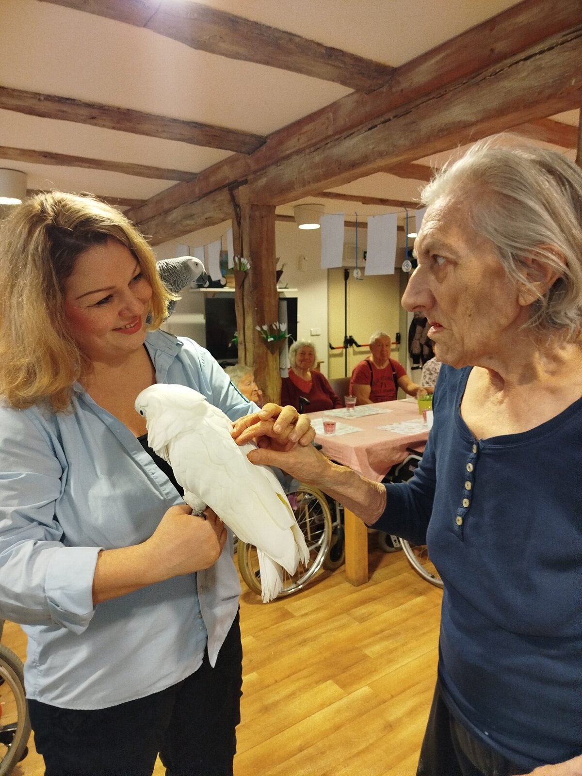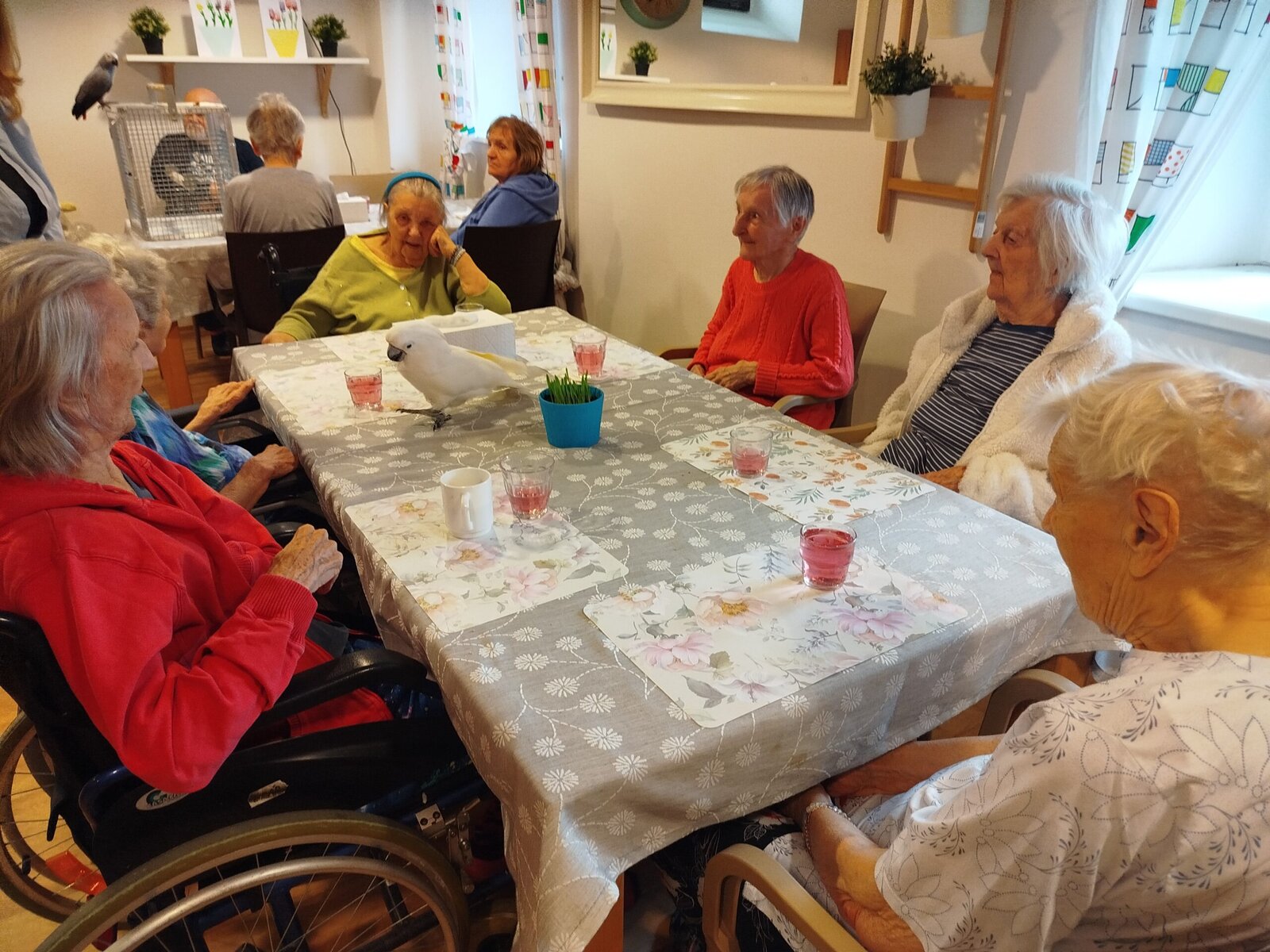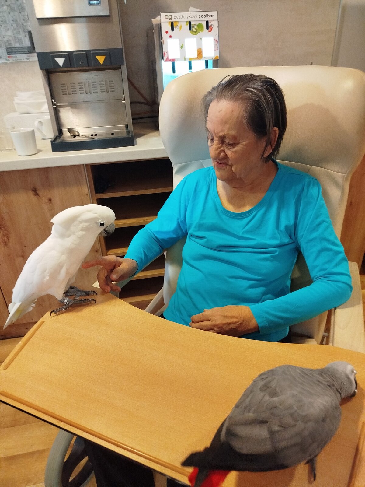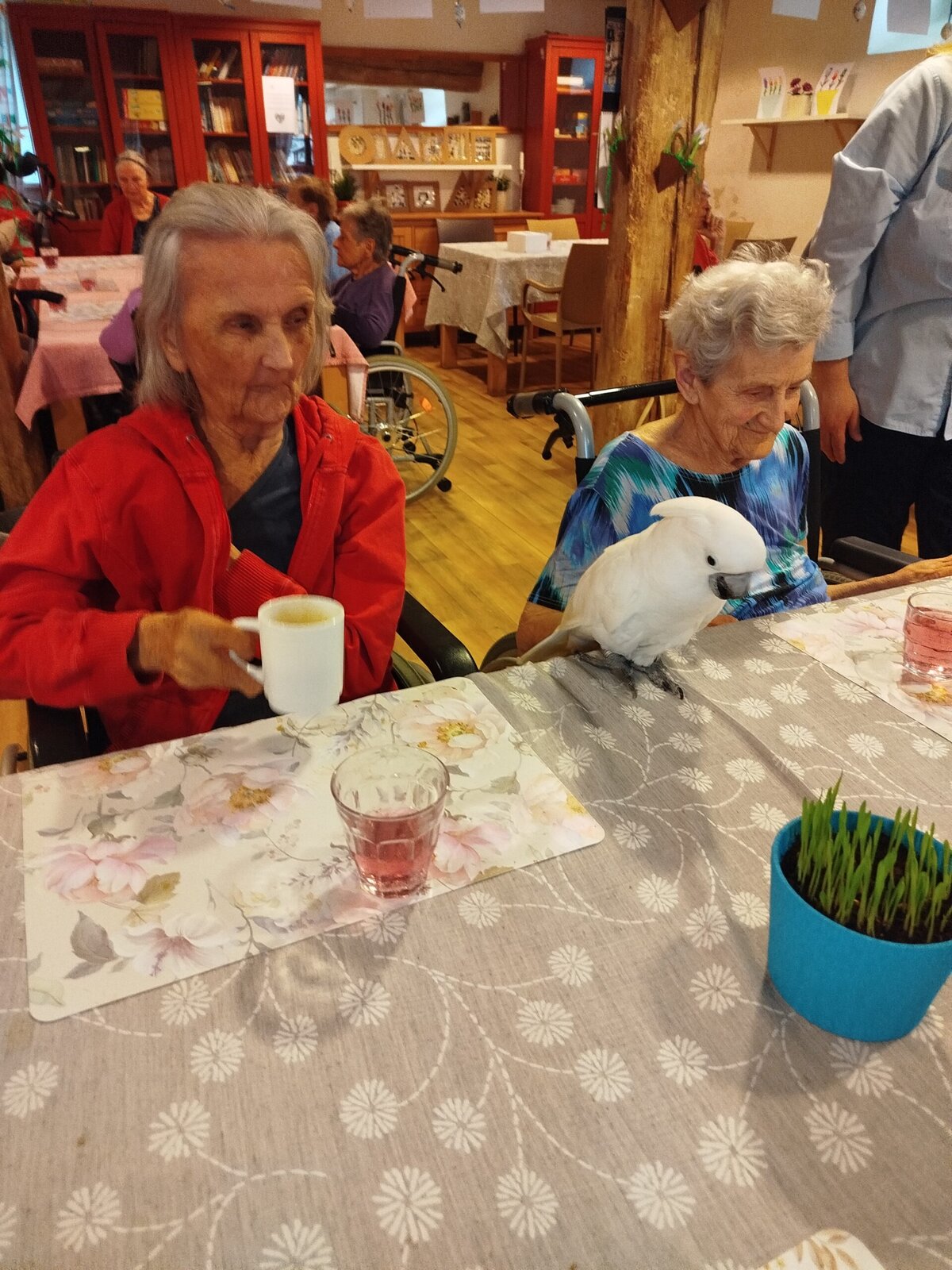Dnes nás v Senevida Pyšely navštívili dva papoušci. Po tom, co se rozkoukali, lítali po celé místnosti. Občas na někoho přilétli, aby si nás prohlédli zblízka. Mohli jsme si je pohladit a dát jim něco dobrého na zub. Bylo to moc příjemné setkání. Už teď se těšíme na další návštěvu