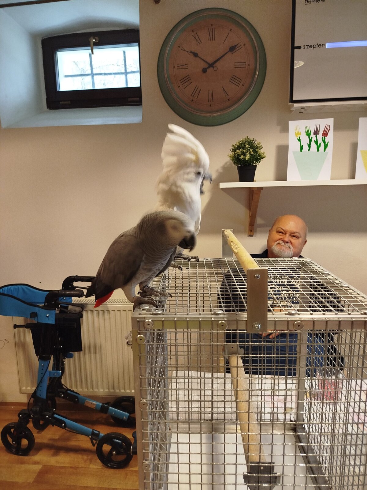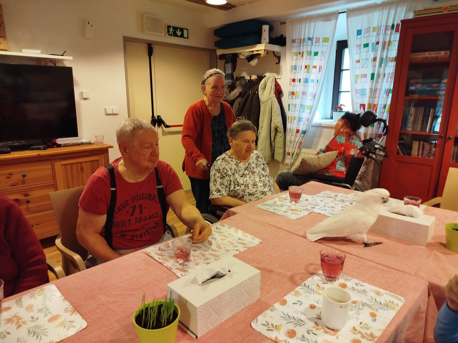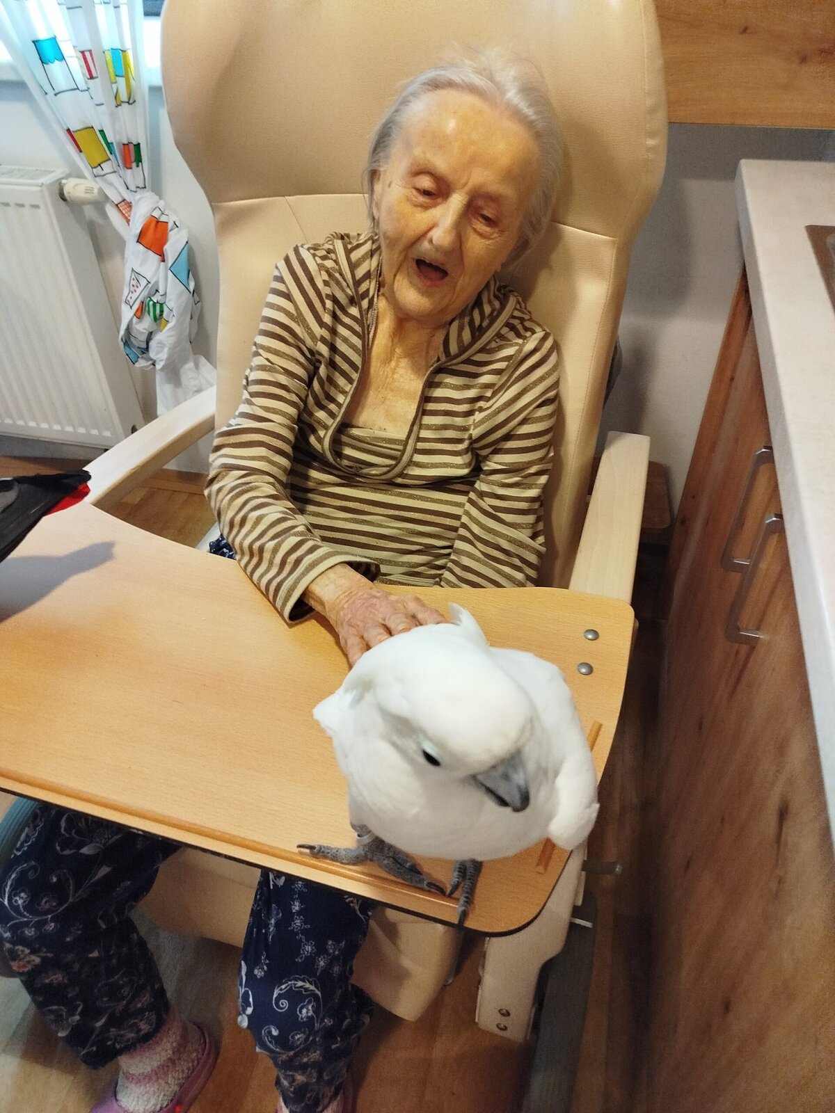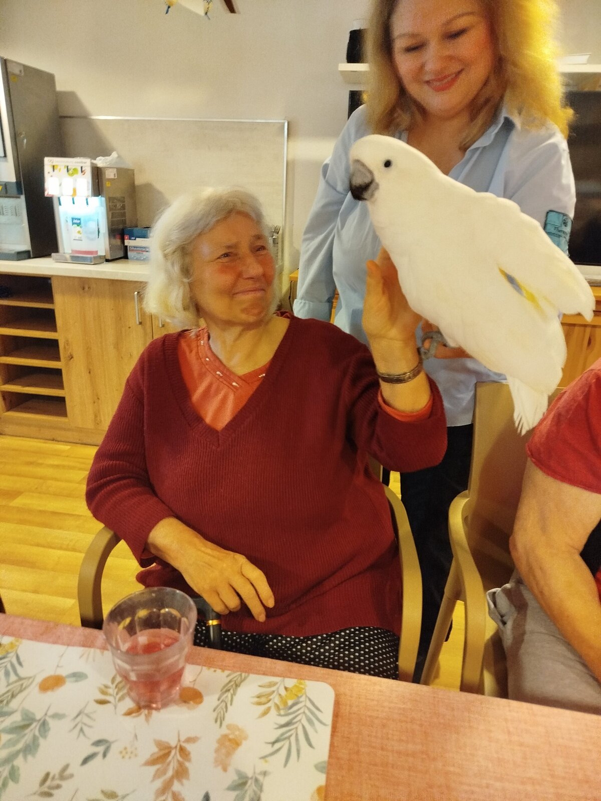Dnes nás v Senevida Pyšely navštívili dva papoušci. Po tom, co se rozkoukali, lítali po celé místnosti. Občas na někoho přilétli, aby si nás prohlédli zblízka. Mohli jsme si je pohladit a dát jim něco dobrého na zub. Bylo to moc příjemné setkání. Už teď se těšíme na další návštěvu