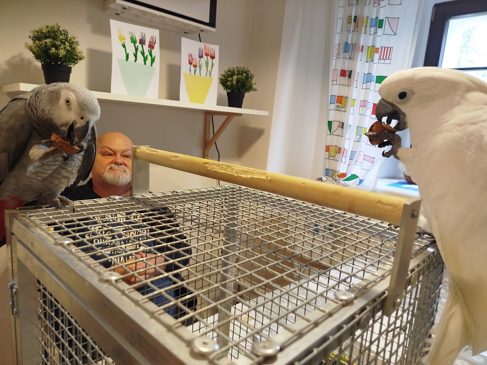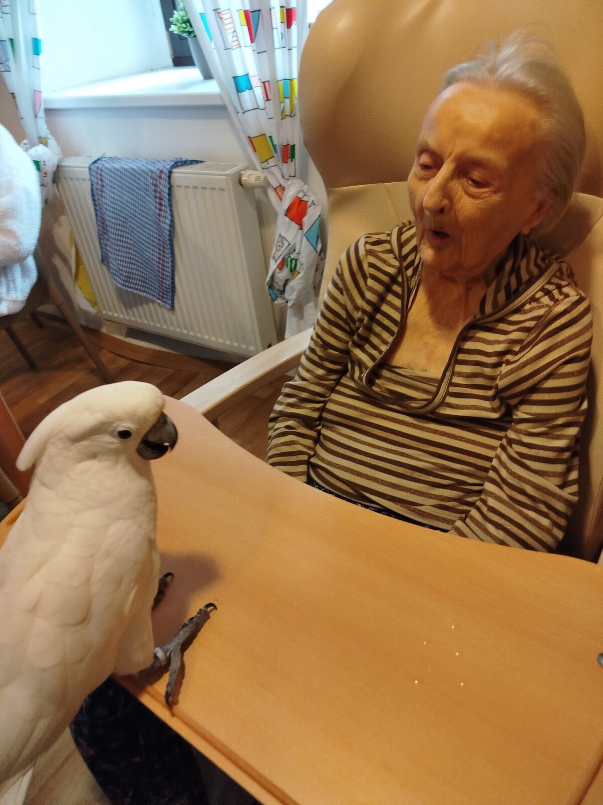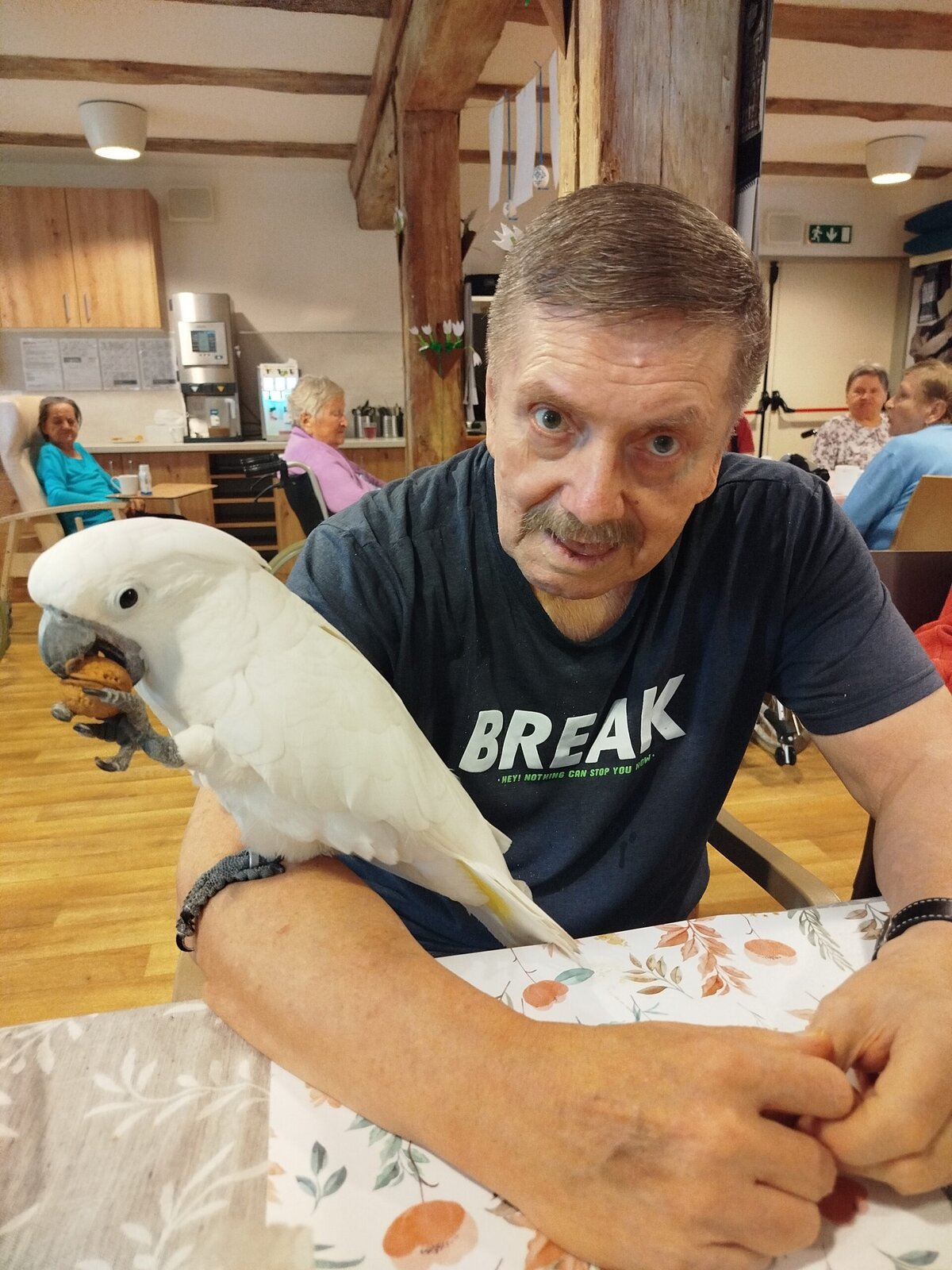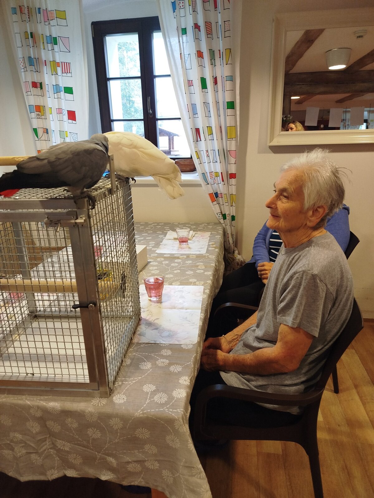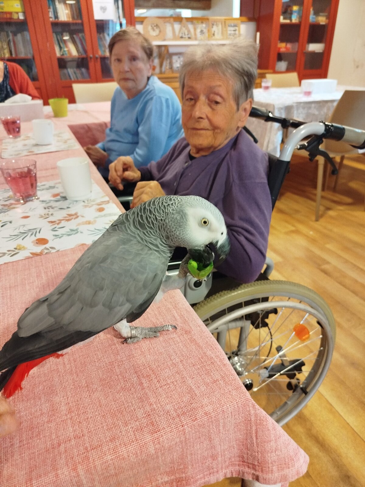Dnes nás v Senevida Pyšely navštívili dva papoušci. Po tom, co se rozkoukali, lítali po celé místnosti. Občas na někoho přilétli, aby si nás prohlédli zblízka. Mohli jsme si je pohladit a dát jim něco dobrého na zub. Bylo to moc příjemné setkání. Už teď se těšíme na další návštěvu
