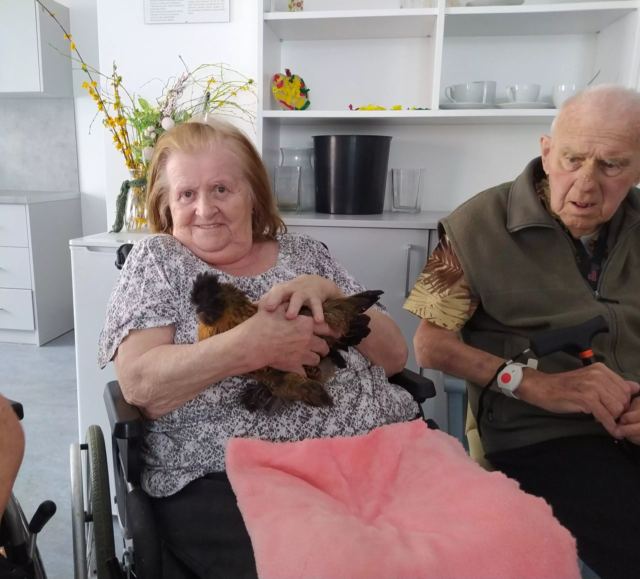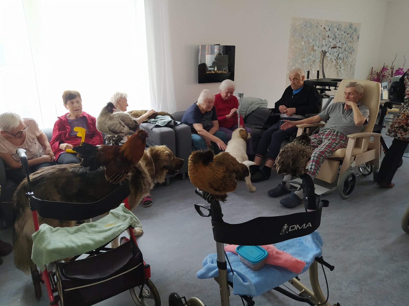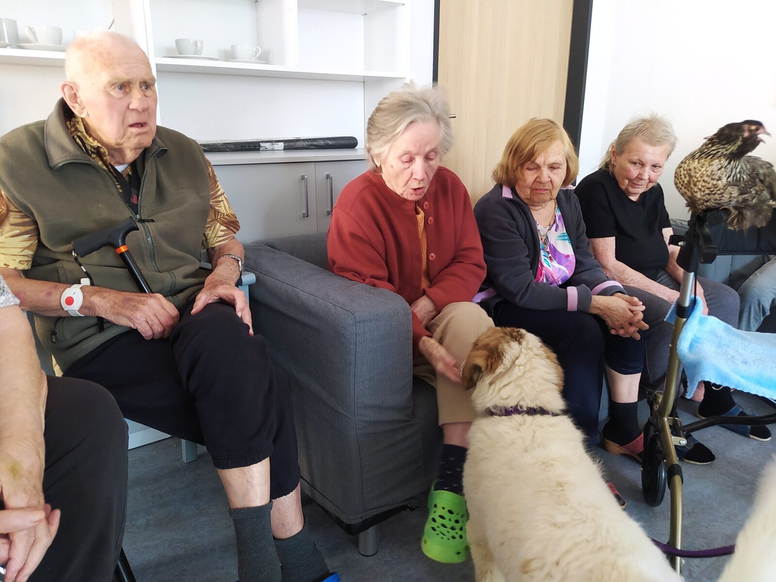 Na klienty domova Senevida Jasmín se přijel podívat pořádný zvěřinec. 🤔 No a když říkáme pořádný, tak to myslíme opravdu vážně. 👍 Na včerejší zooterapii nás navštívil králík, slepičky s kohoutkem, krásná číča a také psí fešandy Kleopatra a Safira. 🐈🐕 Kupodivu veliký obdiv sklidily právě slepičky. 🐔 Což naprosto chápeme, protože jak často se člověku povede si pomazlit slepici nebo kohouta? 🐓😀