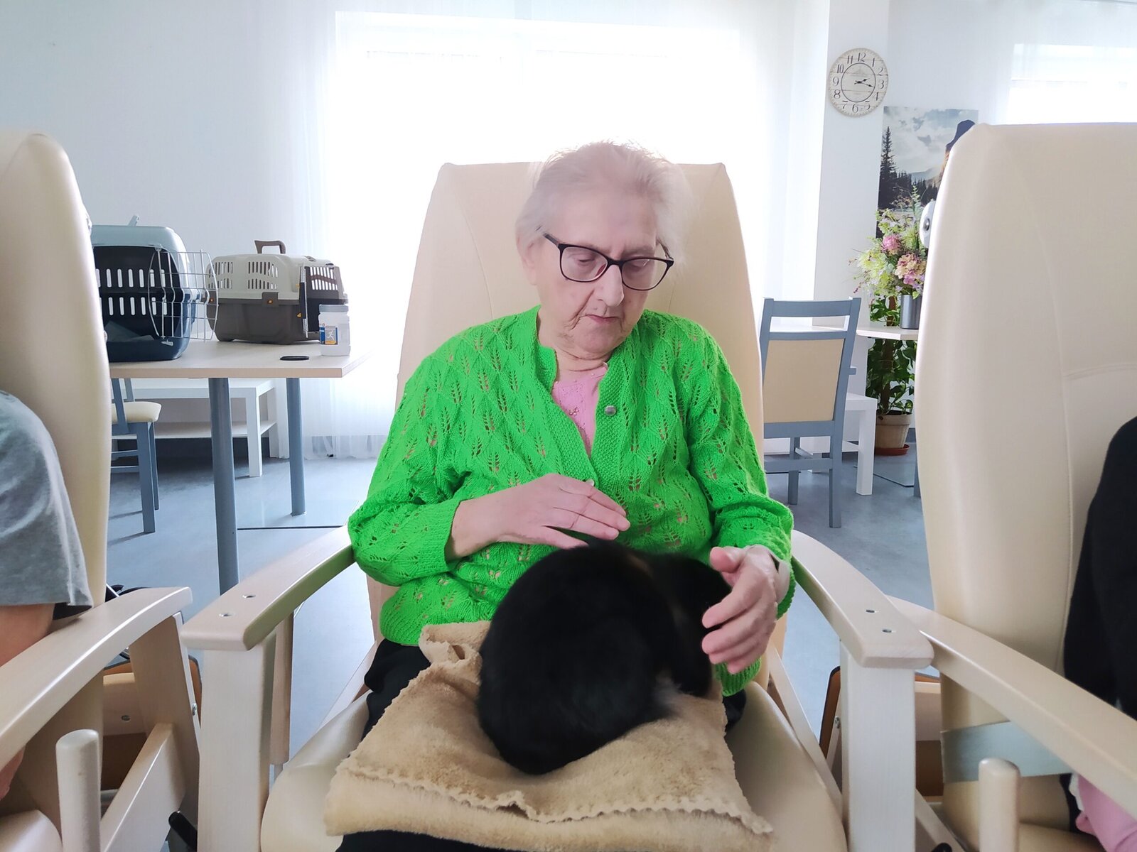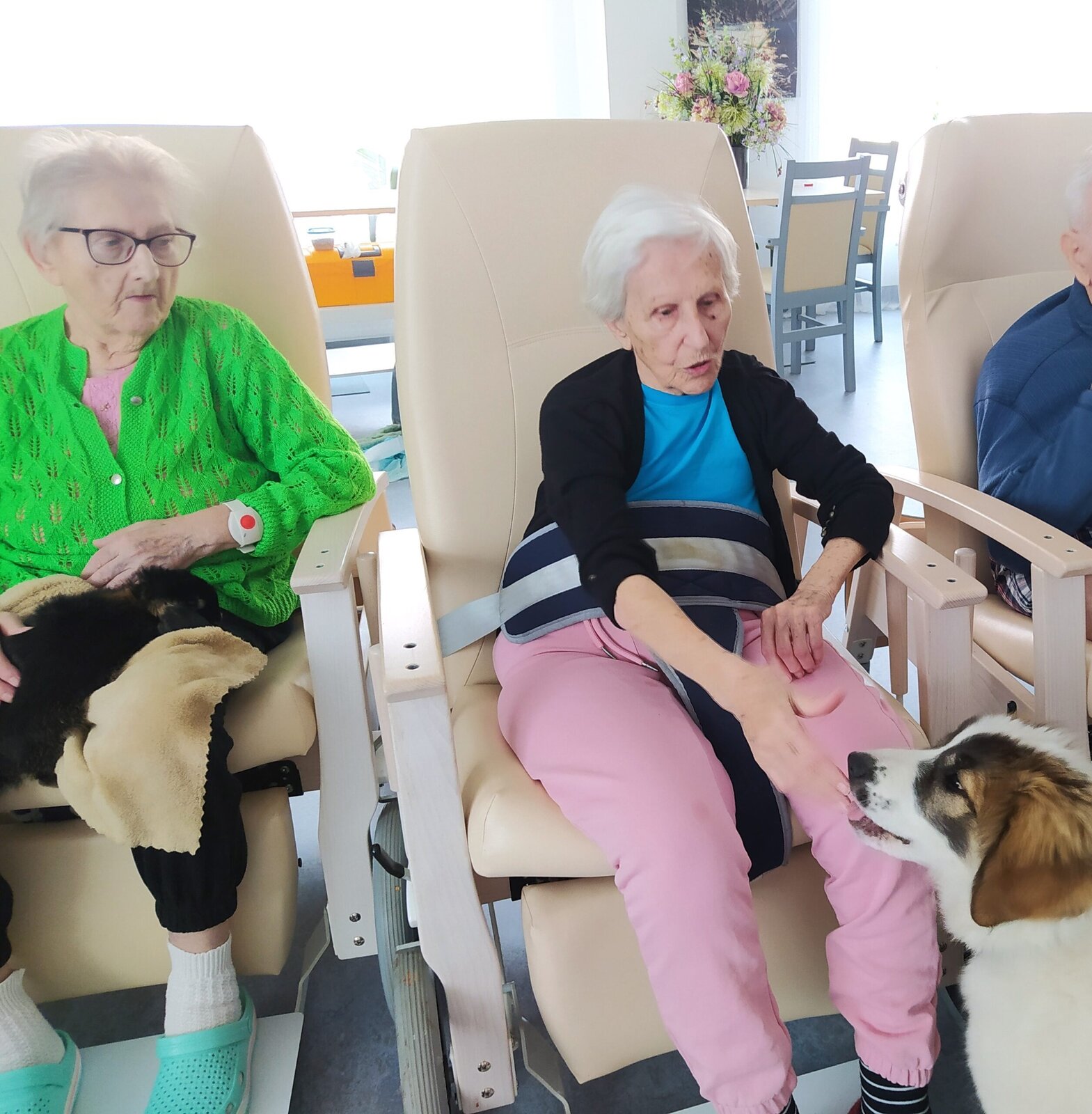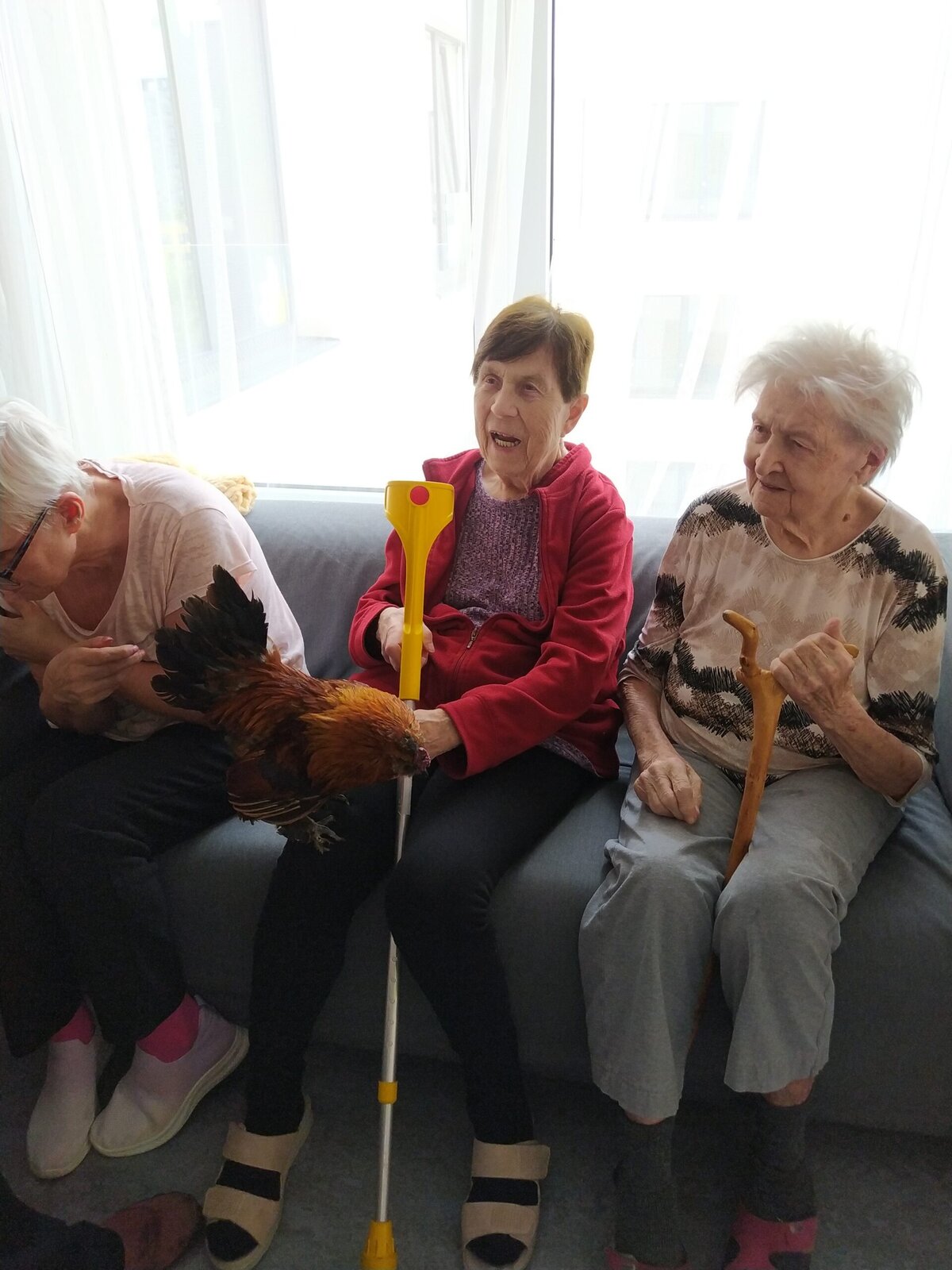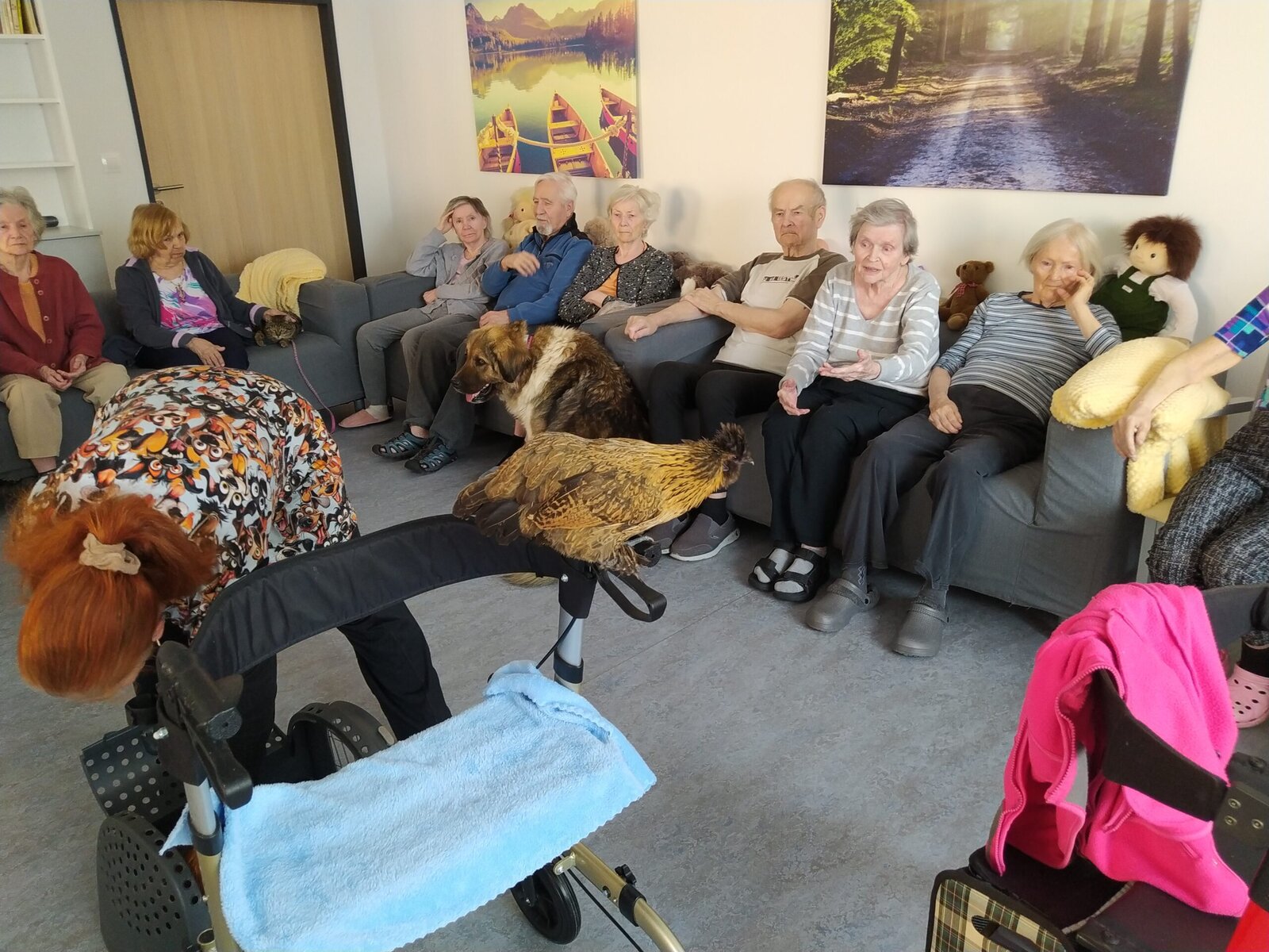 Na klienty domova Senevida Jasmín se přijel podívat pořádný zvěřinec. 🤔 No a když říkáme pořádný, tak to myslíme opravdu vážně. 👍 Na včerejší zooterapii nás navštívil králík, slepičky s kohoutkem, krásná číča a také psí fešandy Kleopatra a Safira. 🐈🐕 Kupodivu veliký obdiv sklidily právě slepičky. 🐔 Což naprosto chápeme, protože jak často se člověku povede si pomazlit slepici nebo kohouta? 🐓😀