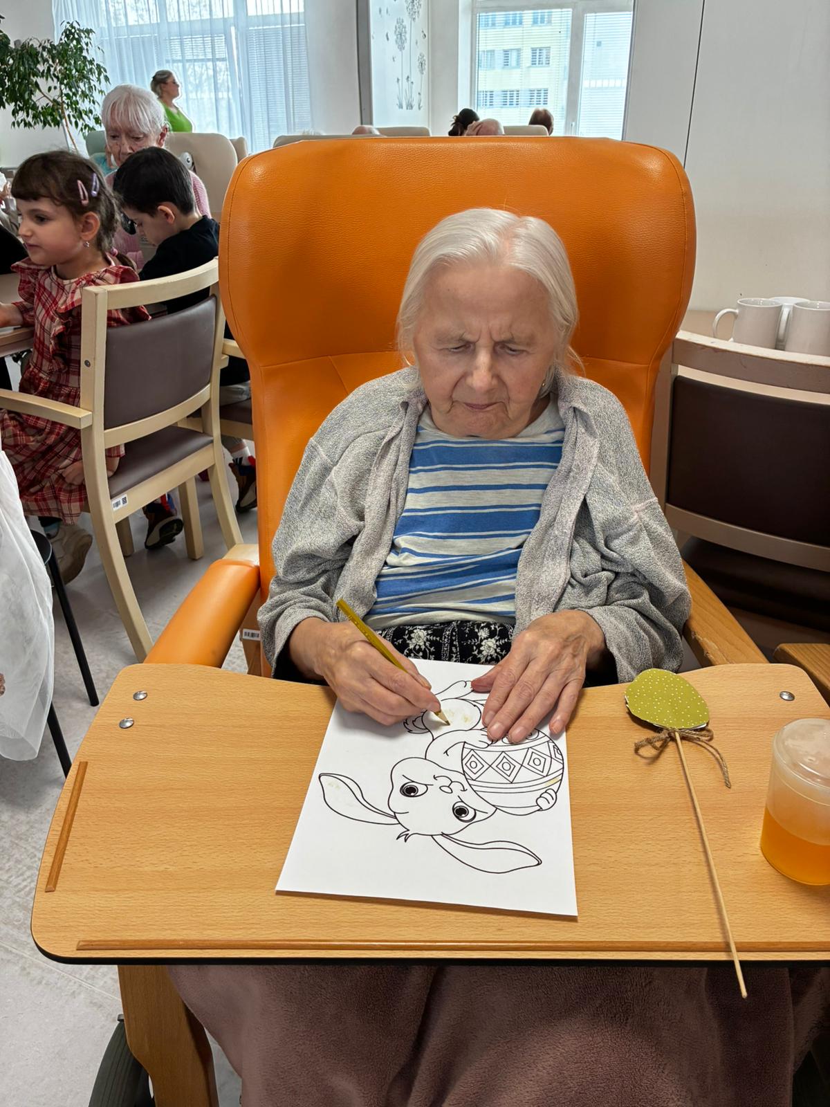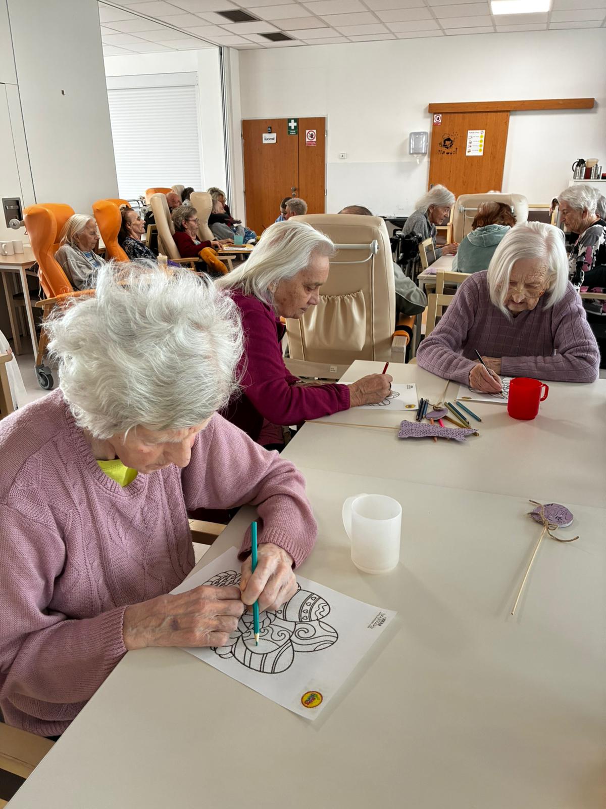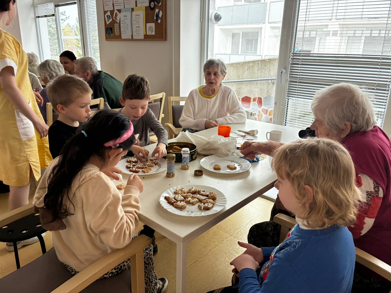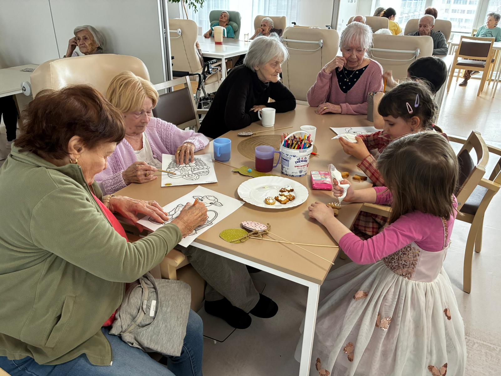 Nejdříve klientům zazpívaly, a pak společně zdobili velikonoční perníčky a malovali obrázky.
