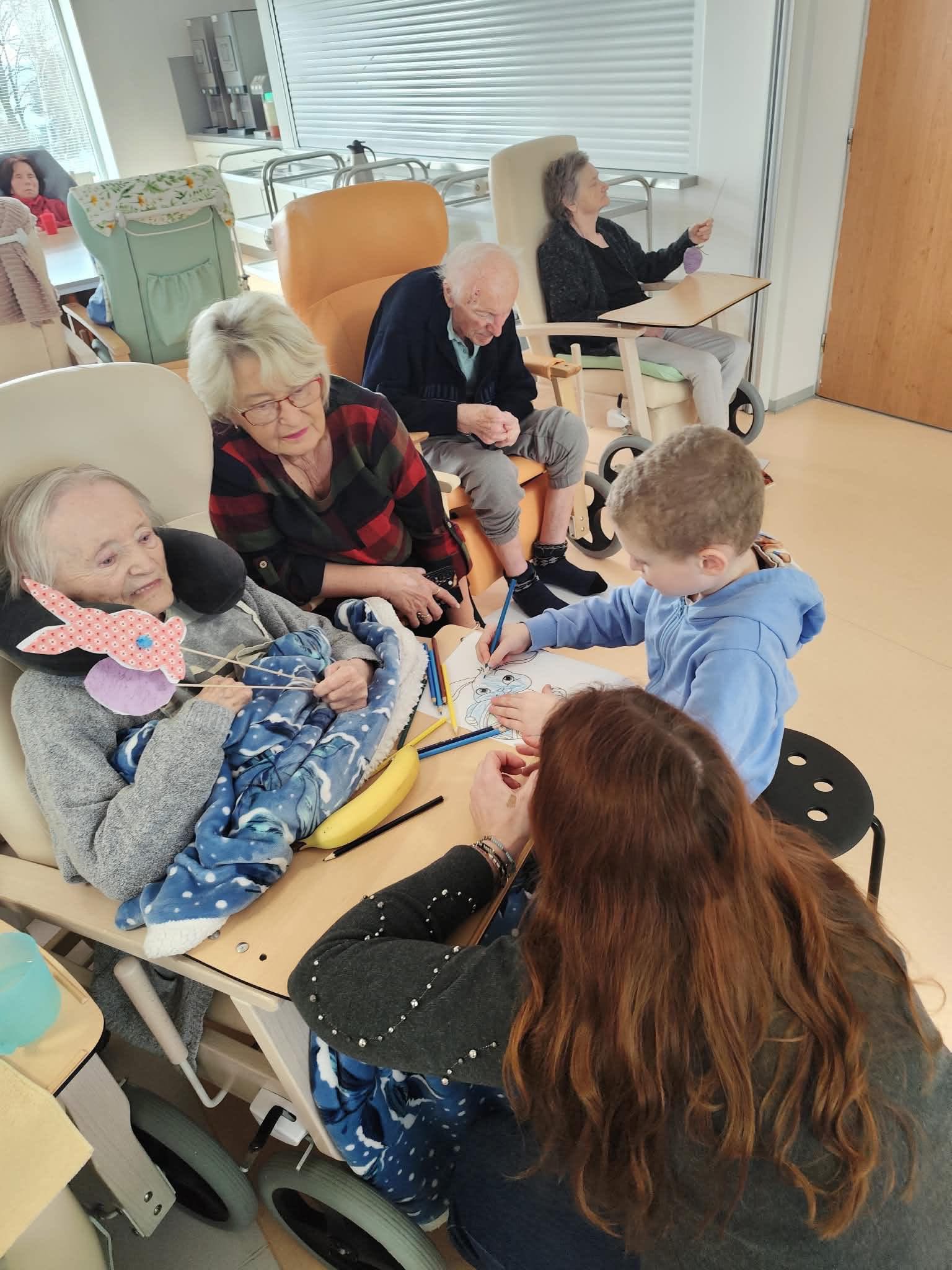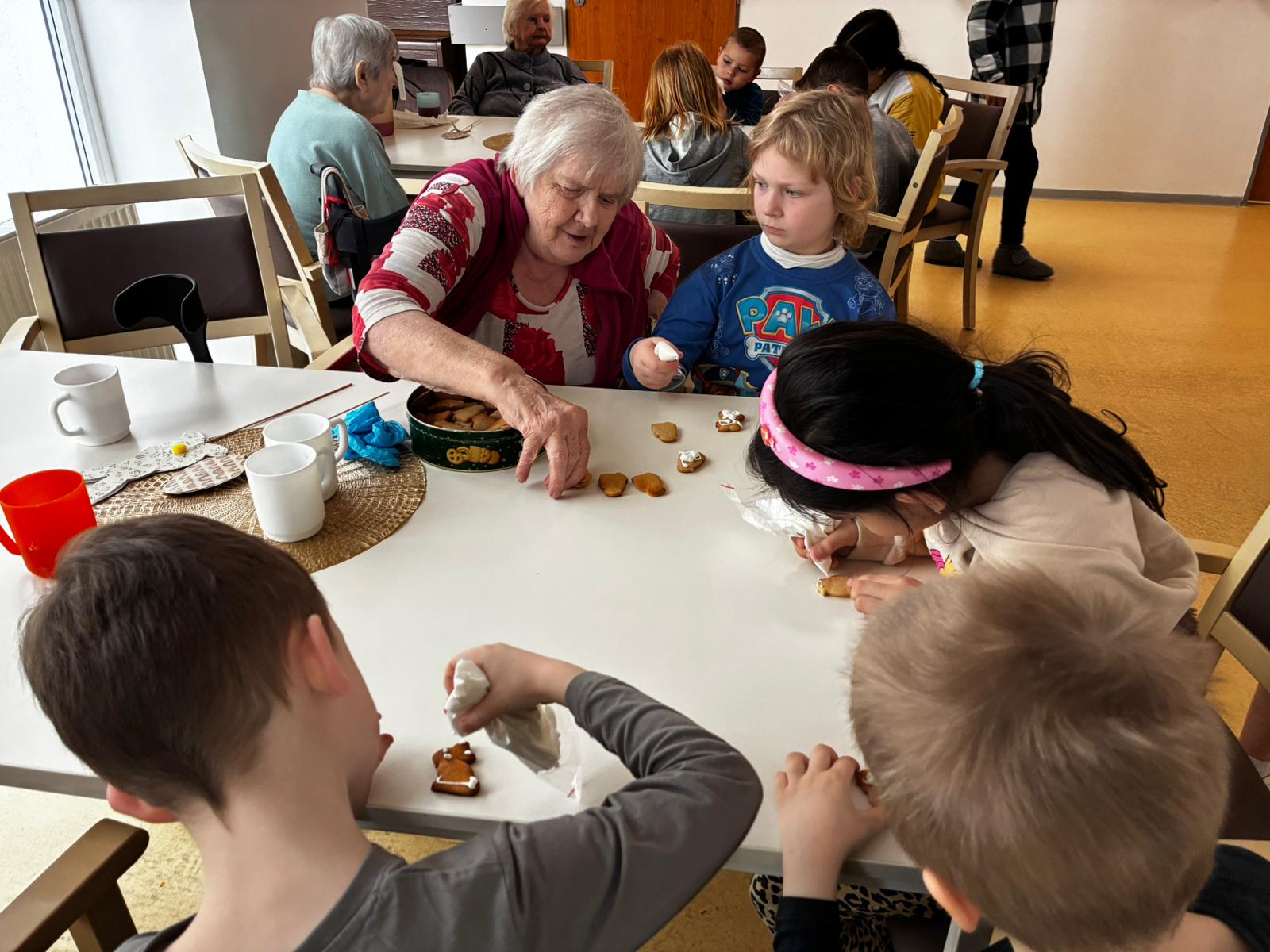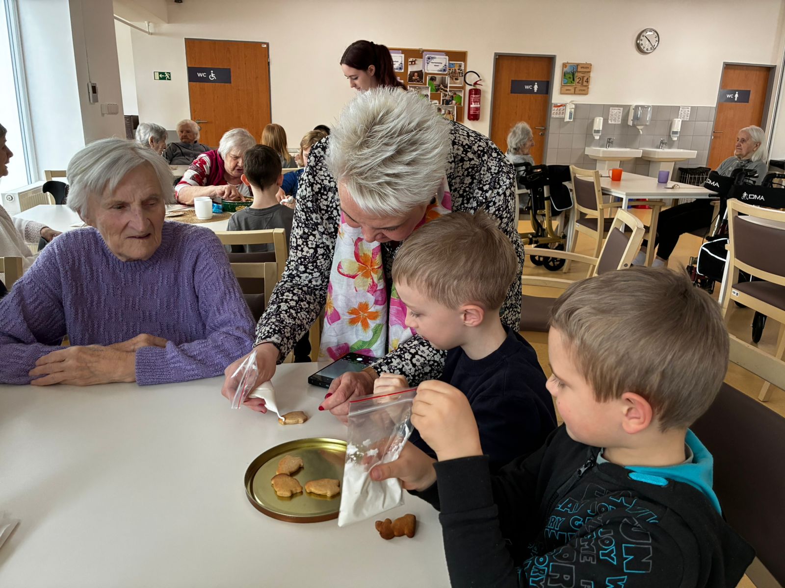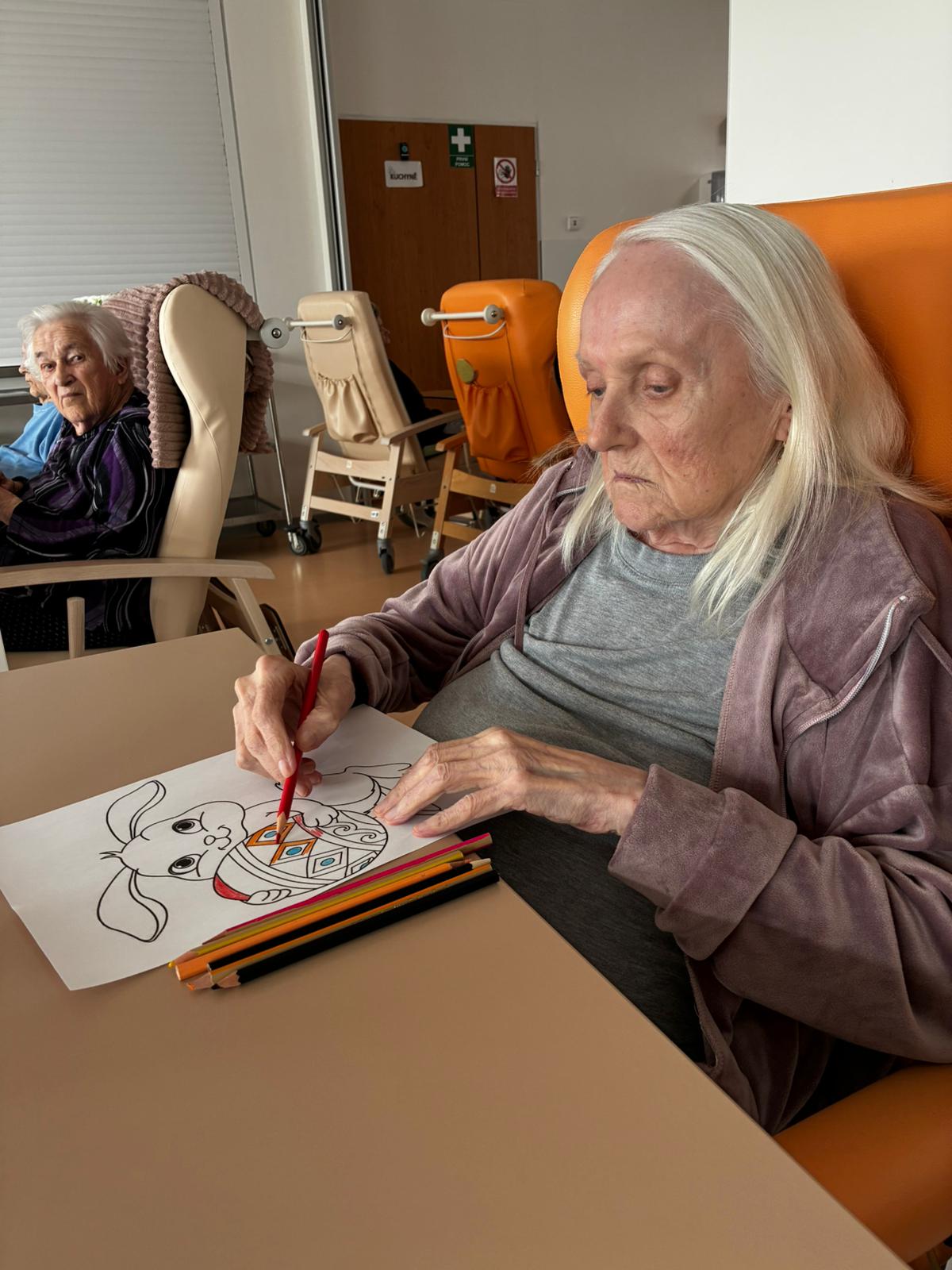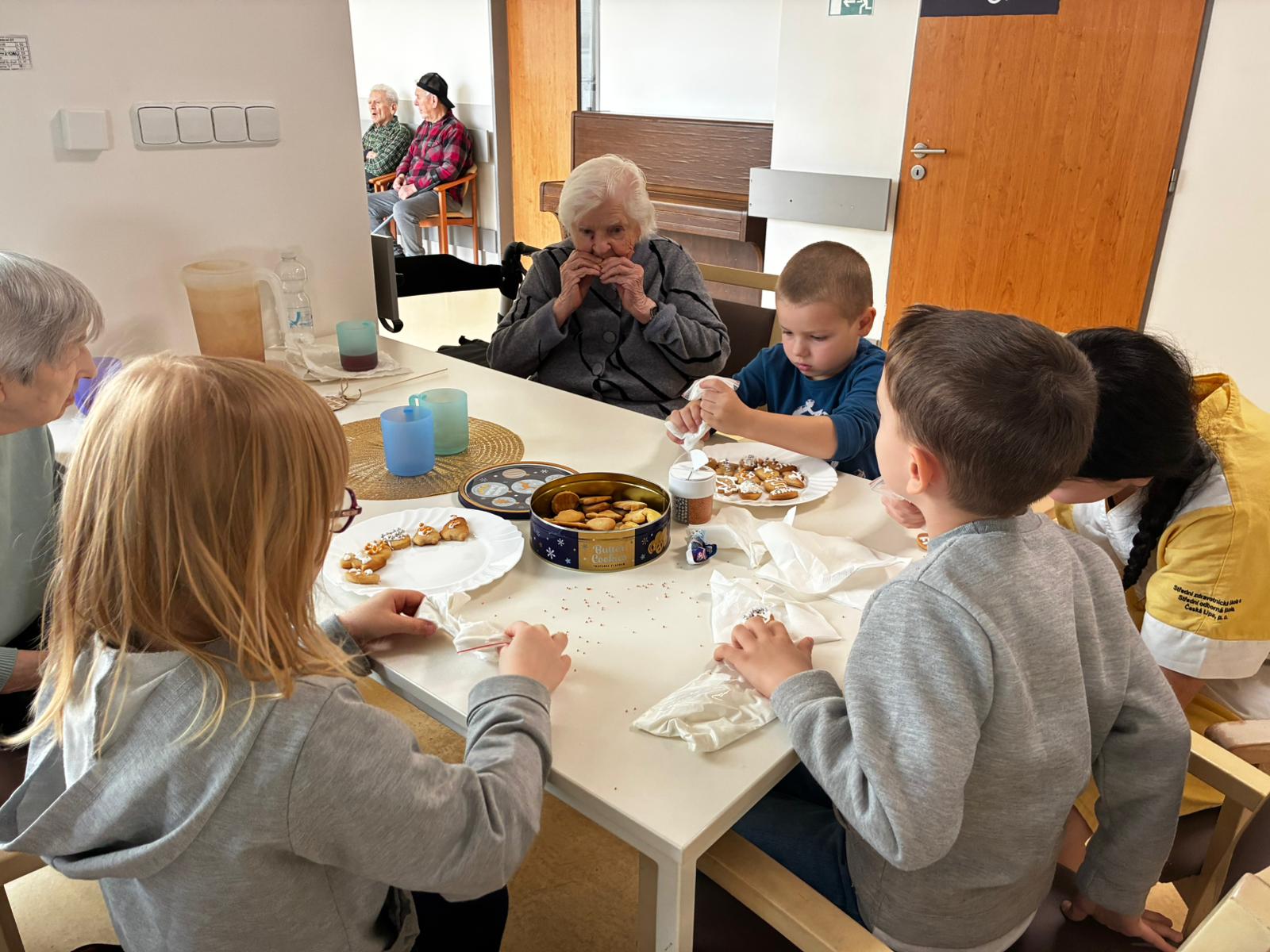 Nejdříve klientům zazpívaly, a pak společně zdobili velikonoční perníčky a malovali obrázky.