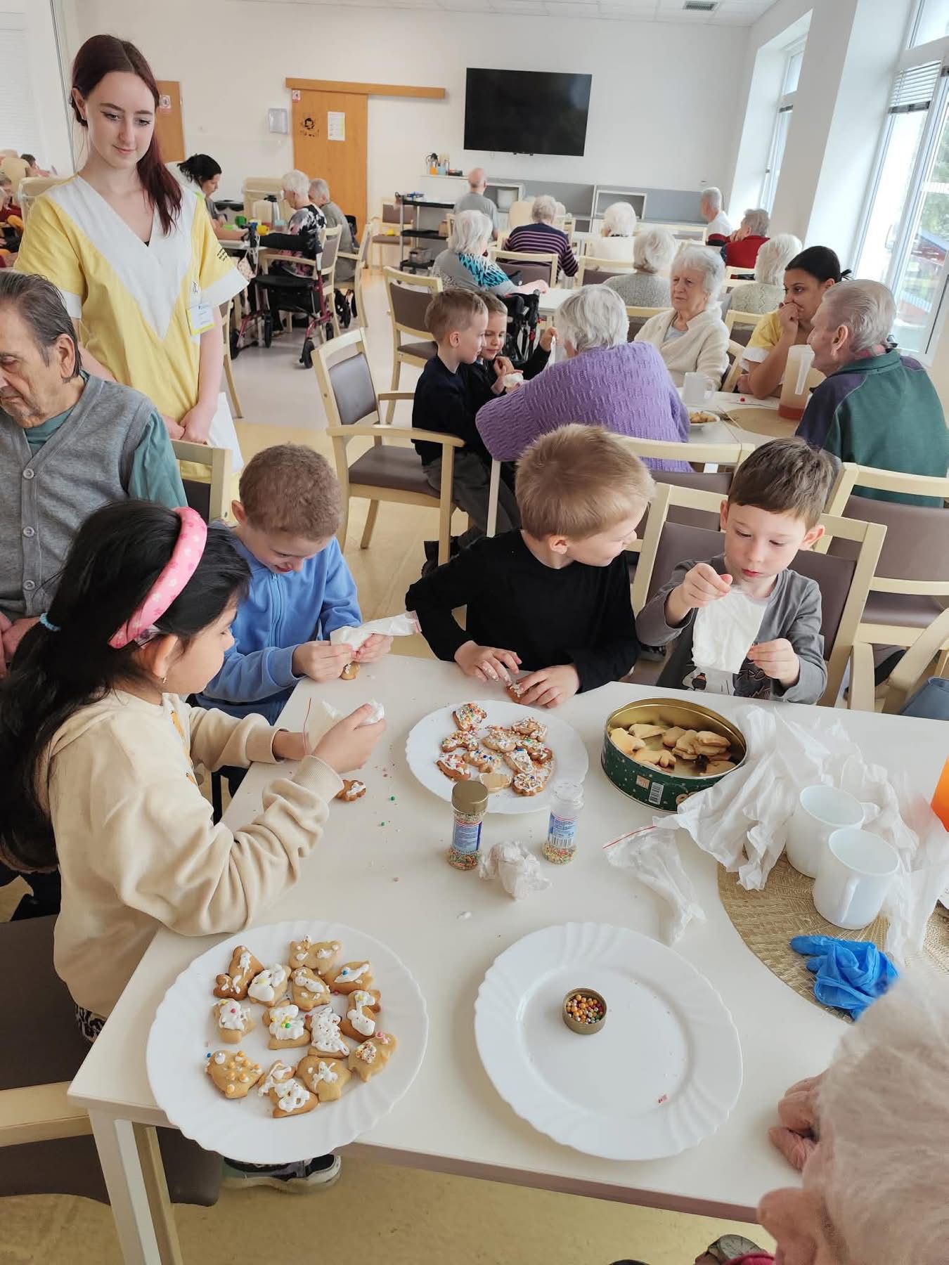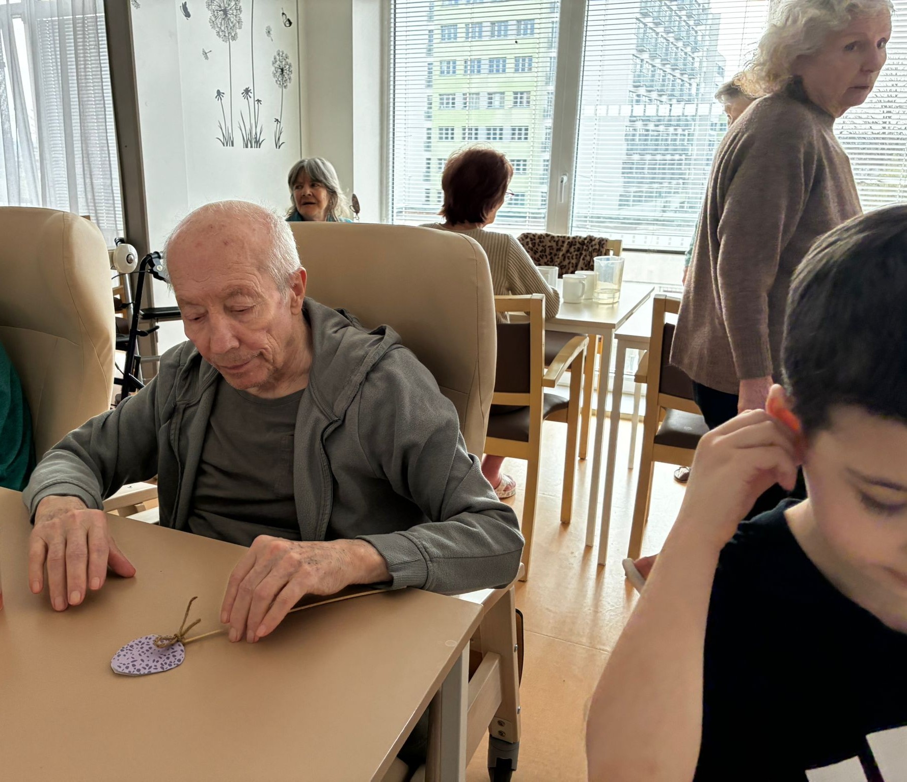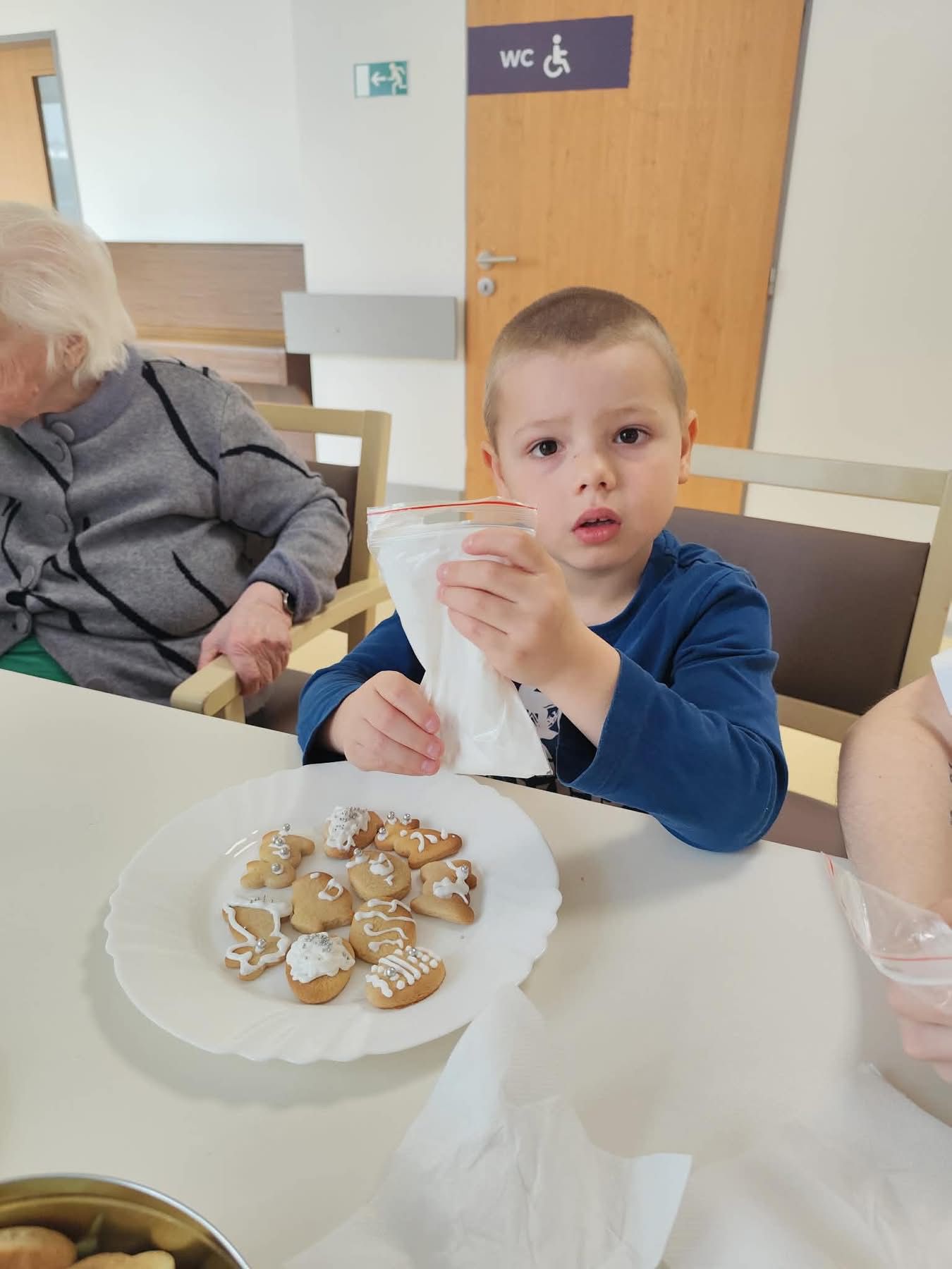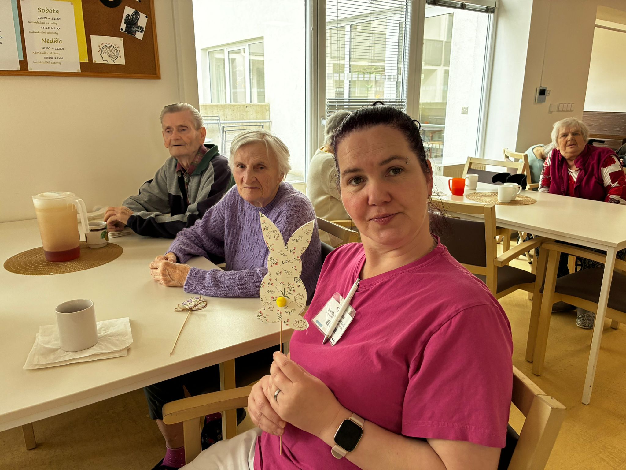 Nejdříve klientům zazpívaly, a pak společně zdobili velikonoční perníčky a malovali obrázky.