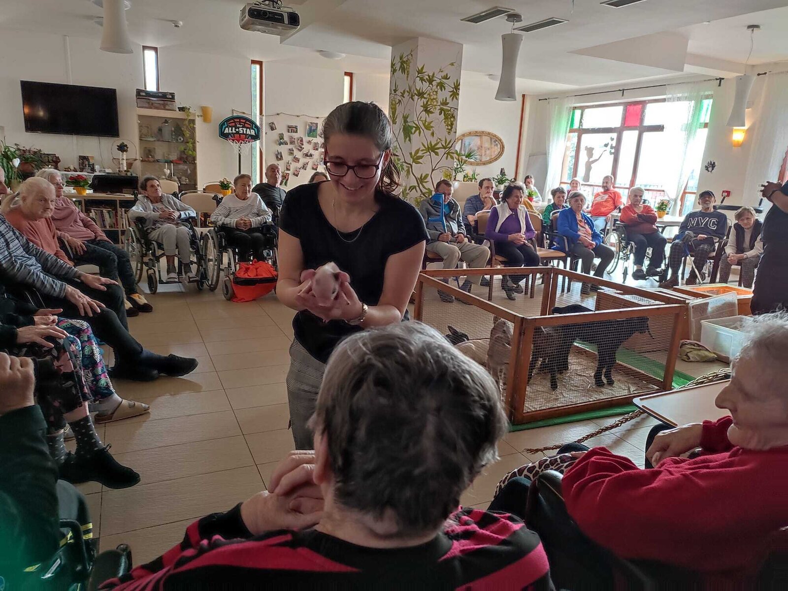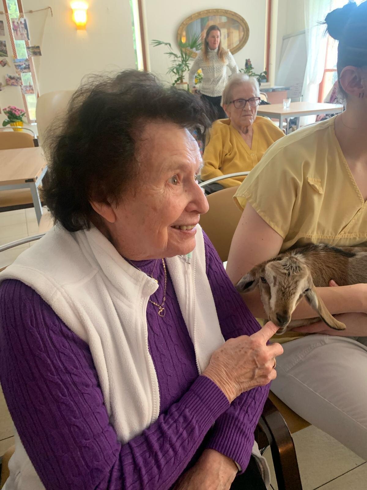 V Senevida Sychrov nás opět navštívily dámy ze Zvěřince na statku v Chotěboři, které s sebou přivezly spoustu zvířat. K pohlazení jsme měli jehňata, kůzlata, kuřata, kachňata, králíky, sele a dva psy. Mockrát děkujeme za opravdu krásné odpoledne plné radosti.